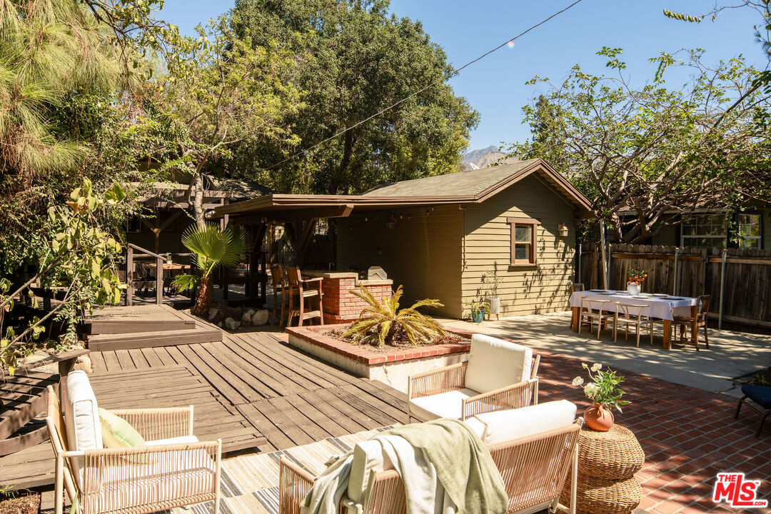 Classic elegance and serene charm define this beautifully restored Craftsman home, lovingly cared for over the years and nestled in one of Pasadena's most sought-after neighborhoods. Surrounded by historic trees and framed by stunning mountain views, it offers a tranquil sanctuary where life moves at a gentler pace. A wide front porch welcomes you, framed by native blooms and pollinator-friendly landscaping. Inside, original woodwork, a beautifully restored brick fireplace, open living and dining areas, and a vintage clawfoot tub create warmth and character, while sunlight pours through every window. Out back, a rustic retreat awaits with a an expansive deck, garden, and BBQ area, perfect for gathering with loved ones or simply unwinding. A long driveway with ample parking leads to a lofty one-car garage. Just steps from the tree-lined streets of Bungalow Heaven and local coffee and brunch spots. Featured in Pasadena Magazine this Craftsman blends classic architecture, thoughtful updates, and a vibrant location into a home that feels both timeless and full of life.