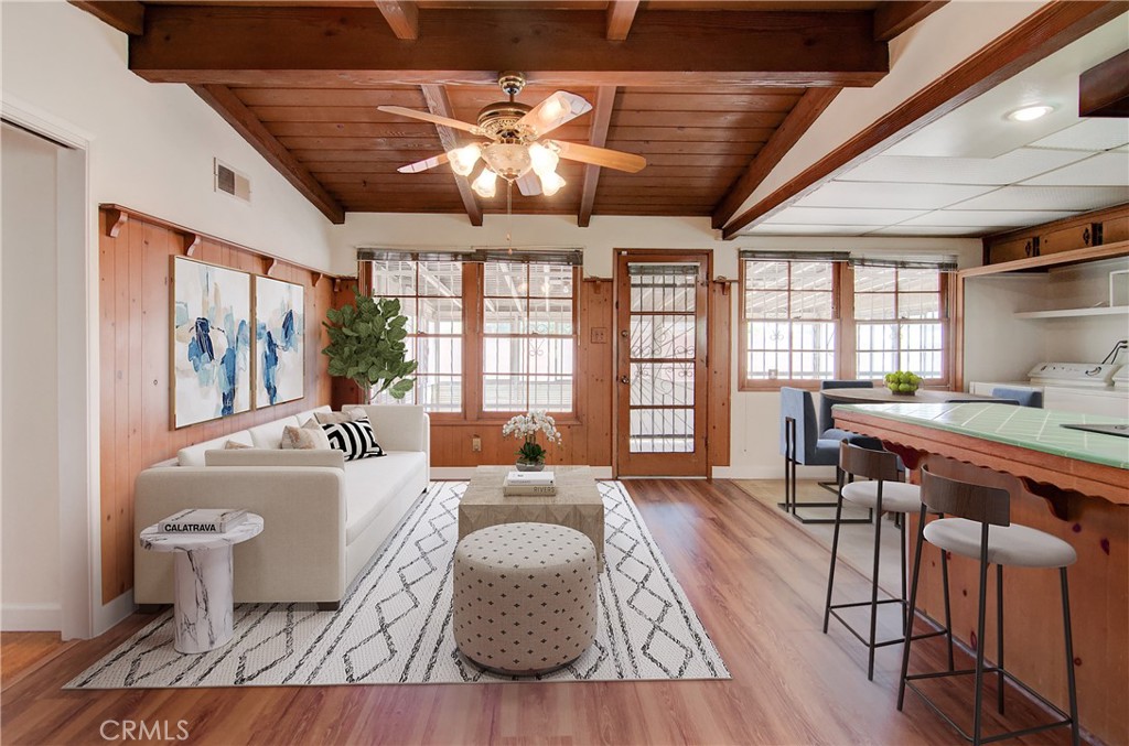 Fantastic purchase opportunity on this clean 3 br 2 ba single story home in South Gardena with great curb appeal. Attractively hedged in front yard, composition roof, fresh interior two-tone painting, original hardwood floors exposed throughout the home, living room with brick fireplace, separate family room with ceiling fan and new LVP flooring, bright kitchen with tiled countertops, ample cabinets and linoleum flooring, dining area, inside side by side laundry closet in kitchen (washer and dryer included), large primary bedroom and ensuite bathroom with shower, nice size bedrooms, mirrored closet doors, forced air heating, 2 car attached garage with automatic overhead door opener, huge covered patio area (not included in sqft) with tons of potential and low maintenance backyard. Location convenient to schools, shopping and freeways. Don't miss out!