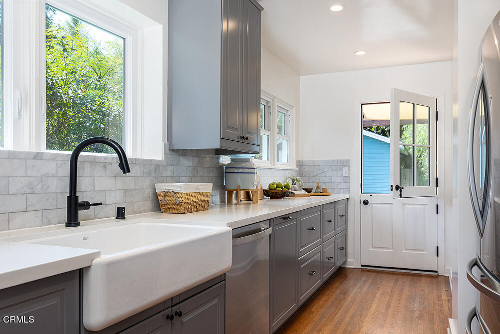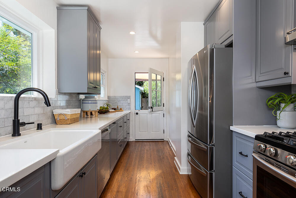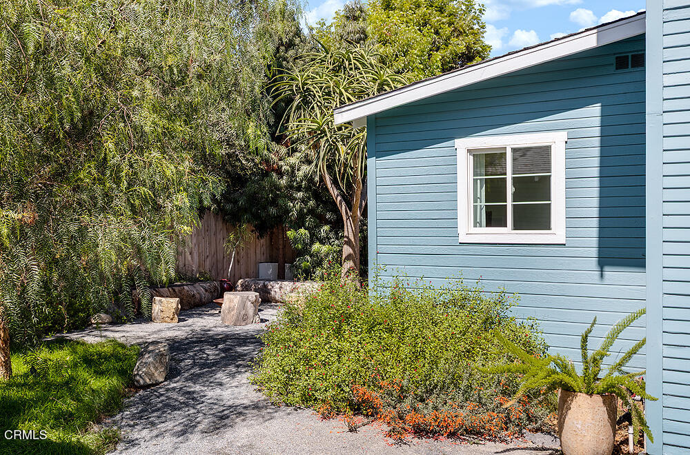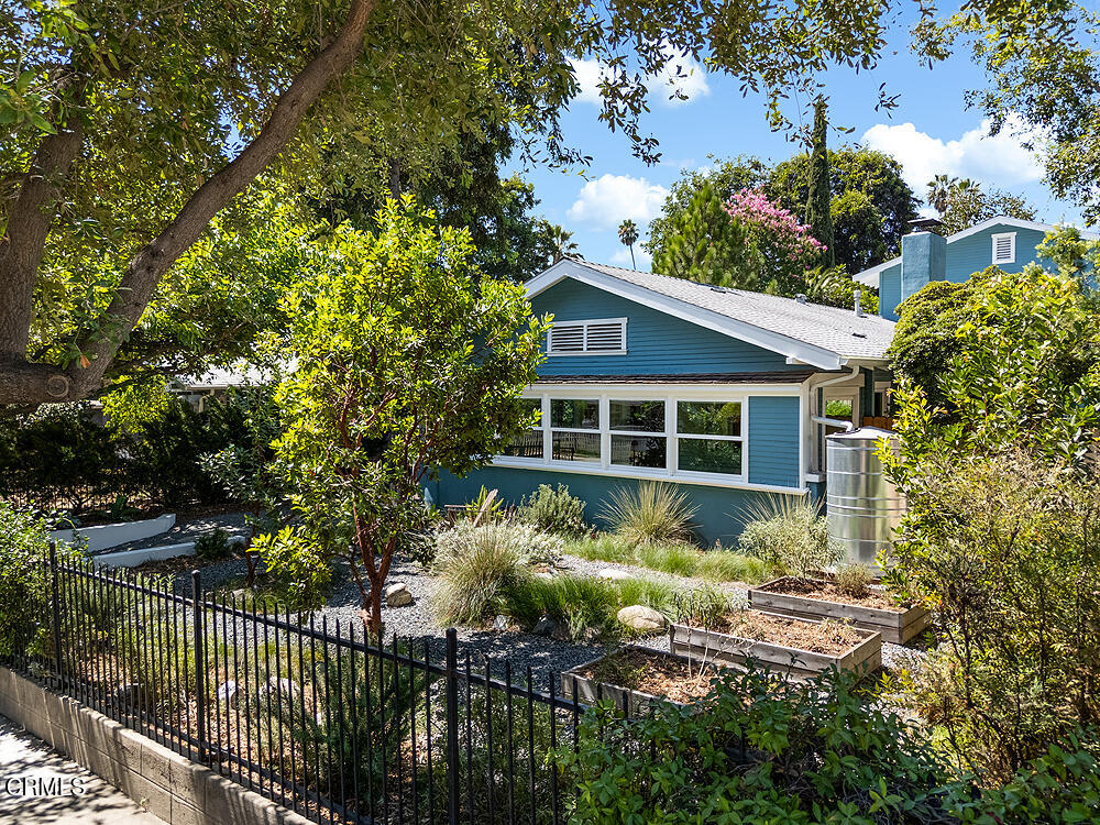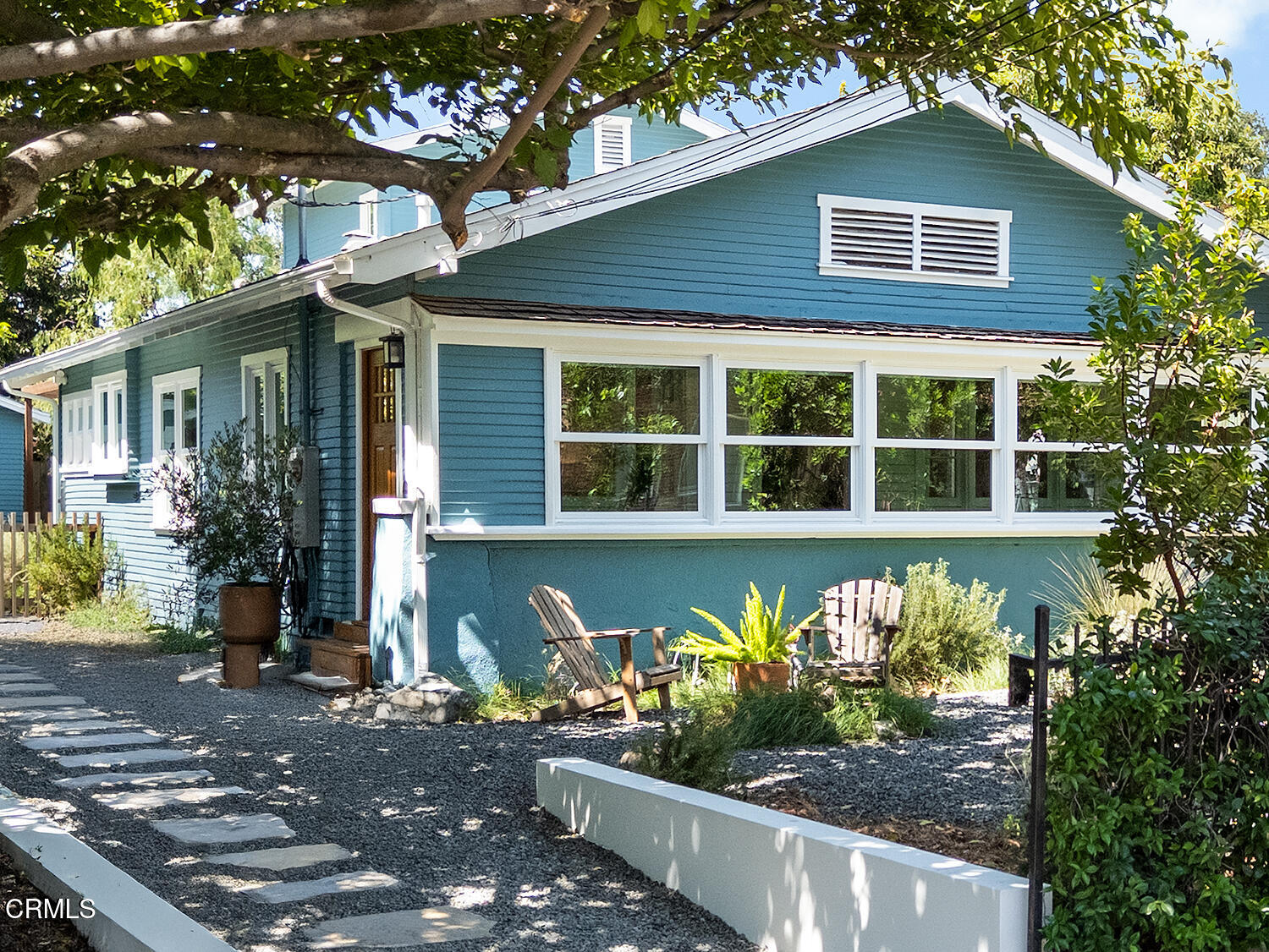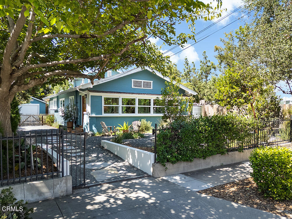 In tree-lined Northwest Pasadena, this stylishly updated home is a real estate unicorn: a light-filled Craftsman that feels both warm AND bright. Secluded behind oaks, agaves and a stately Mulberry tree, the artfully designed gardens here are both beautiful and sustainable with greywater irrigation. Follow flagstone steps on a permeable granite front path to find classic clapboard siding, elephantine column bases and solid 8-light front door with contemporary wood steps that marry modern organic stylings of the garden with the classic architectural elements of this special home. Inside, the front entry with its ribbon of double-hung sash windows and built-in window seat bench is inviting and practical for modern living. A generous living room, with coved ceilings, decorative stacked brick fireplace and dual-pane casement windows, also accomodates formal dining. The floorplan flows well here, with the sunny breakfast room and remodeled kitchen to the south, and private spaces to the north. Kitchen features marble subway tile backsplash, stone counters, stainless steel appliances and ample storage. A farmhouse sink with a leafy green view and Dutch door opening to the backyard dining deck make for happy everyday vibes. Bedrooms and baths are updated and relaxed, each bedroom enjoying its own bonus feature: access to the sunny north deck and garden; en-suite bath; or pretty views - the mountain vista from upstairs is great. The spacious primary suite with dual-sink marble vanity and rainhead shower is elegant and comfortable, but the spacious attached laundry may be the icing on the cake! Outside, gardens are private and shady with fragrant shrubs and native grasses, a sculptural tree aloe and split tree-trunk benches offering a spot for gathering. A heated plunge pool spa with sunning deck is ideal for quiet relaxation or morning yoga. Lastly, the one car garage with built-in workbench is a ready workshop, studio - the potential is endless. Located minutes from the buzzing Lincoln Avenue corridor (ice cream at Perry's Joint or the patio at Good Neighbor Bar!), Altadena's Christmas Tree Lane (the lighting this year is December 6!) and 10 minutes to the heart of old town Pasadena, this is a gorgeous property in a great location.