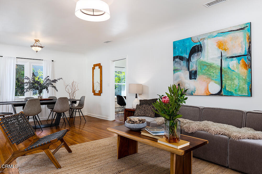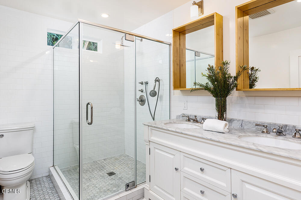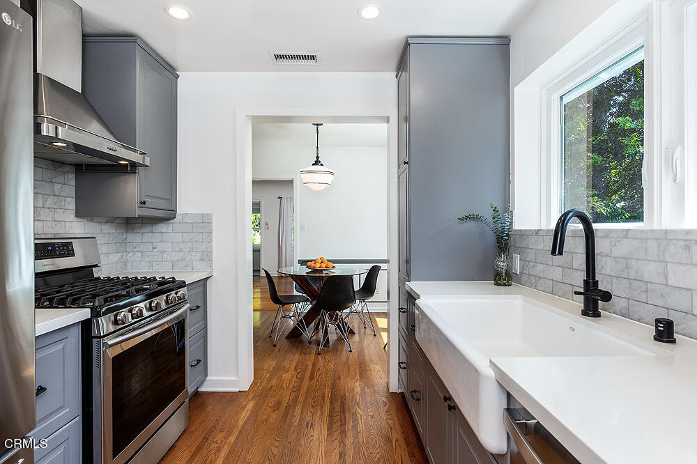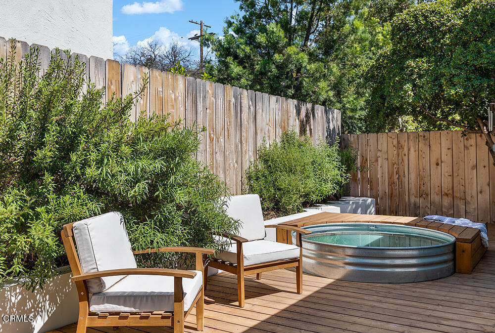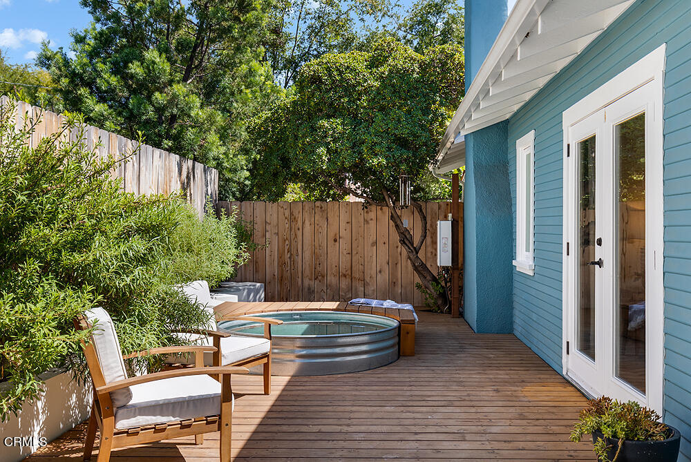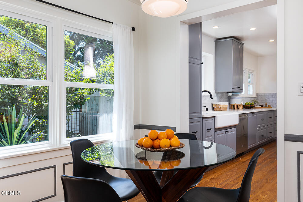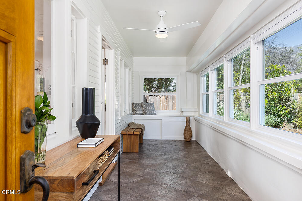 In tree-lined Northwest Pasadena, this stylishly updated home is a real estate unicorn: a light-filled Craftsman that feels both warm AND bright. Secluded behind oaks, agaves and a stately Mulberry tree, the artfully designed gardens here are both beautiful and sustainable with greywater irrigation. Follow flagstone steps on a permeable granite front path to find classic clapboard siding, elephantine column bases and solid 8-light front door with contemporary wood steps that marry modern organic stylings of the garden with the classic architectural elements of this special home. Inside, the front entry with its ribbon of double-hung sash windows and built-in window seat bench is inviting and practical for modern living. A generous living room, with coved ceilings, decorative stacked brick fireplace and dual-pane casement windows, also accomodates formal dining. The floorplan flows well here, with the sunny breakfast room and remodeled kitchen to the south, and private spaces to the north. Kitchen features marble subway tile backsplash, stone counters, stainless steel appliances and ample storage. A farmhouse sink with a leafy green view and Dutch door opening to the backyard dining deck make for happy everyday vibes. Bedrooms and baths are updated and relaxed, each bedroom enjoying its own bonus feature: access to the sunny north deck and garden; en-suite bath; or pretty views - the mountain vista from upstairs is great. The spacious primary suite with dual-sink marble vanity and rainhead shower is elegant and comfortable, but the spacious attached laundry may be the icing on the cake! Outside, gardens are private and shady with fragrant shrubs and native grasses, a sculptural tree aloe and split tree-trunk benches offering a spot for gathering. A heated plunge pool spa with sunning deck is ideal for quiet relaxation or morning yoga. Lastly, the one car garage with built-in workbench is a ready workshop, studio - the potential is endless. Located minutes from the buzzing Lincoln Avenue corridor (ice cream at Perry's Joint or the patio at Good Neighbor Bar!), Altadena's Christmas Tree Lane (the lighting this year is December 6!) and 10 minutes to the heart of old town Pasadena, this is a gorgeous property in a great location.