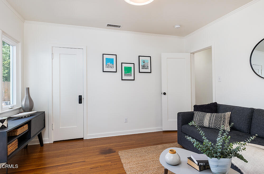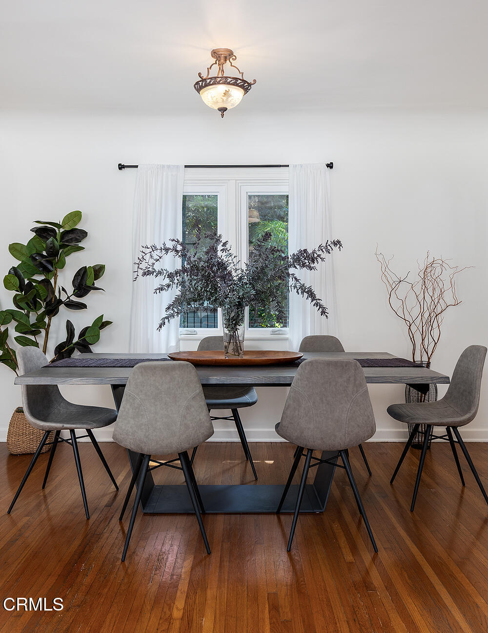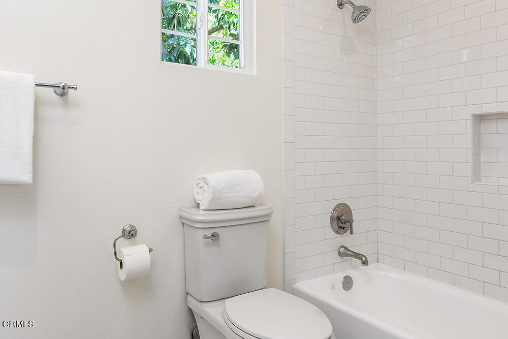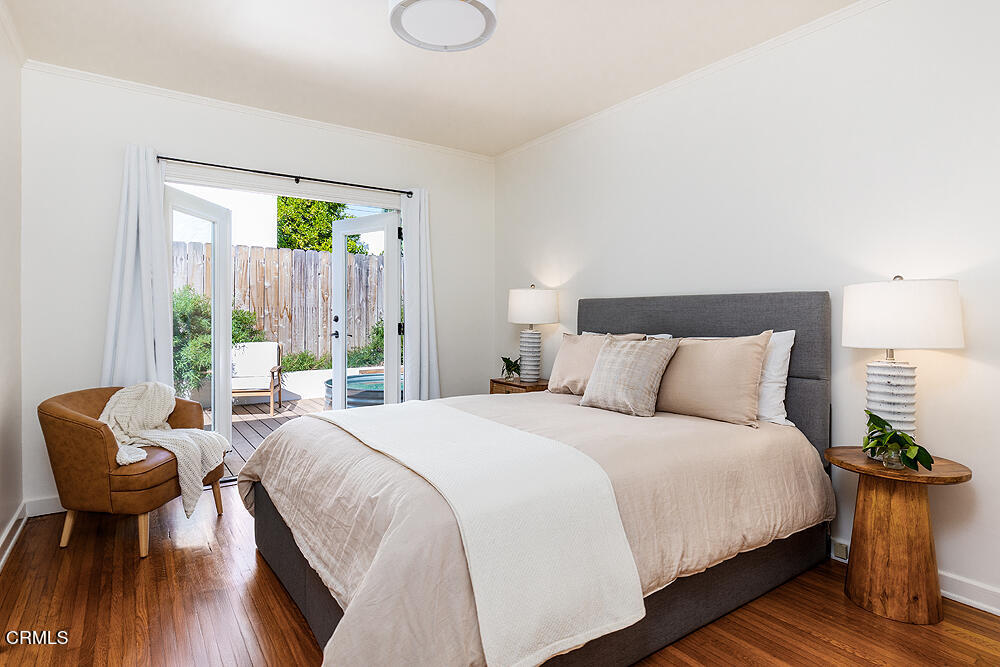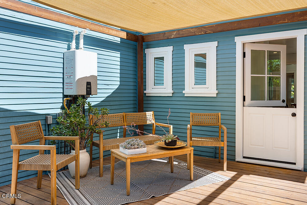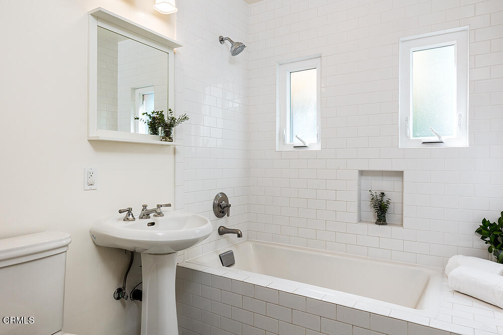 In tree-lined Northwest Pasadena, this stylishly updated home is a real estate unicorn: a light-filled Craftsman that feels both warm AND bright. Secluded behind oaks, agaves and a stately Mulberry tree, the artfully designed gardens here are both beautiful and sustainable with greywater irrigation. Follow flagstone steps on a permeable granite front path to find classic clapboard siding, elephantine column bases and solid 8-light front door with contemporary wood steps that marry modern organic stylings of the garden with the classic architectural elements of this special home. Inside, the front entry with its ribbon of double-hung sash windows and built-in window seat bench is inviting and practical for modern living. A generous living room, with coved ceilings, decorative stacked brick fireplace and dual-pane casement windows, also accomodates formal dining. The floorplan flows well here, with the sunny breakfast room and remodeled kitchen to the south, and private spaces to the north. Kitchen features marble subway tile backsplash, stone counters, stainless steel appliances and ample storage. A farmhouse sink with a leafy green view and Dutch door opening to the backyard dining deck make for happy everyday vibes. Bedrooms and baths are updated and relaxed, each bedroom enjoying its own bonus feature: access to the sunny north deck and garden; en-suite bath; or pretty views - the mountain vista from upstairs is great. The spacious primary suite with dual-sink marble vanity and rainhead shower is elegant and comfortable, but the spacious attached laundry may be the icing on the cake! Outside, gardens are private and shady with fragrant shrubs and native grasses, a sculptural tree aloe and split tree-trunk benches offering a spot for gathering. A heated plunge pool spa with sunning deck is ideal for quiet relaxation or morning yoga. Lastly, the one car garage with built-in workbench is a ready workshop, studio - the potential is endless. Located minutes from the buzzing Lincoln Avenue corridor (ice cream at Perry's Joint or the patio at Good Neighbor Bar!), Altadena's Christmas Tree Lane (the lighting this year is December 6!) and 10 minutes to the heart of old town Pasadena, this is a gorgeous property in a great location.
