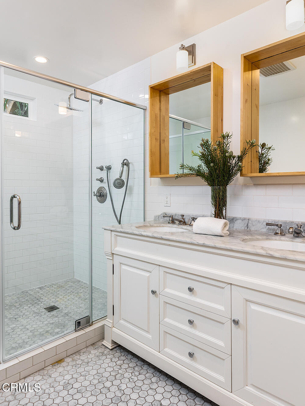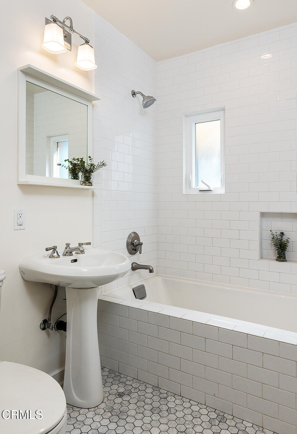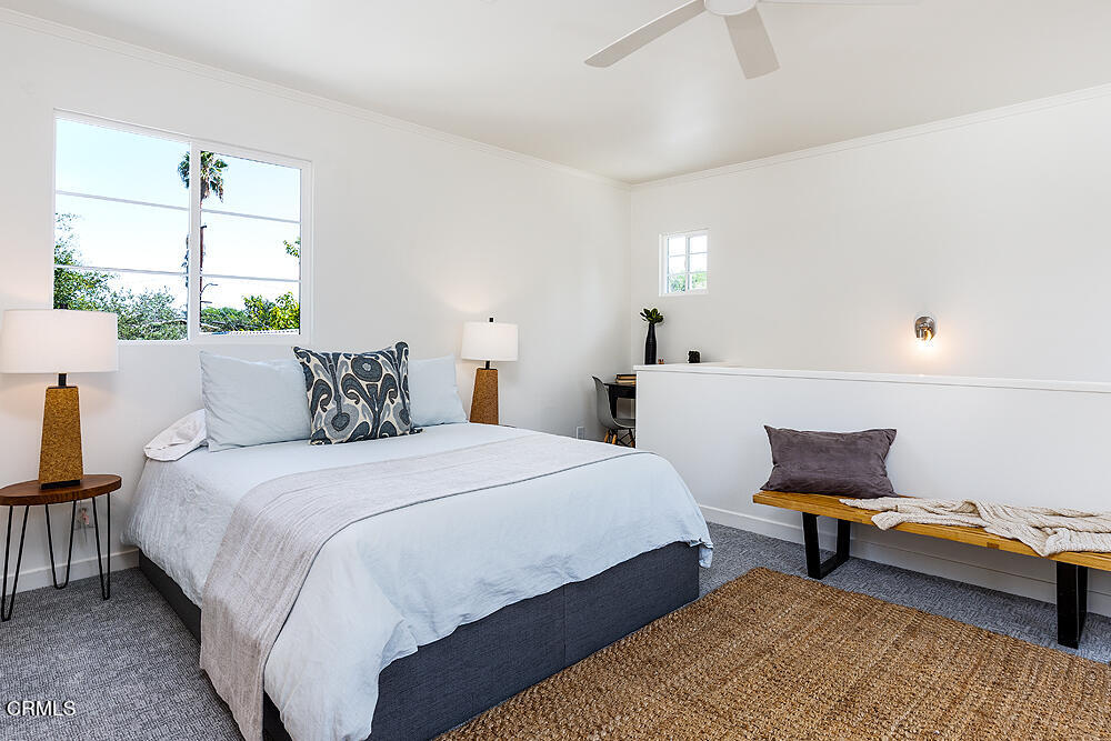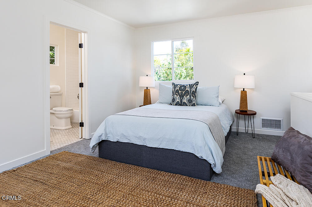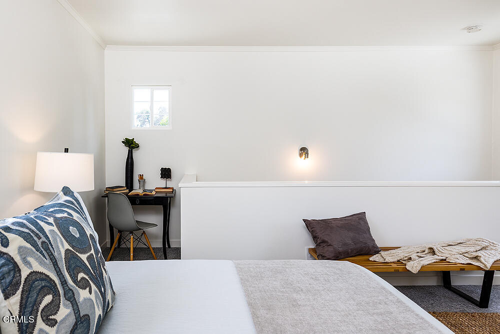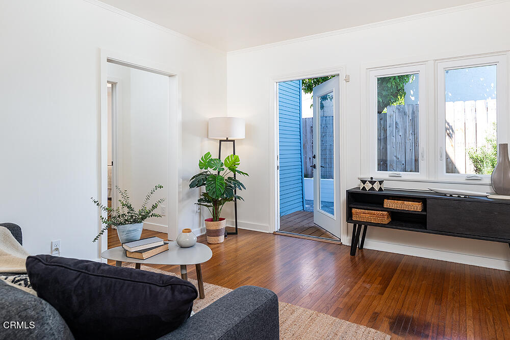 In tree-lined Northwest Pasadena, this stylishly updated home is a real estate unicorn: a light-filled Craftsman that feels both warm AND bright. Secluded behind oaks, agaves and a stately Mulberry tree, the artfully designed gardens here are both beautiful and sustainable with greywater irrigation. Follow flagstone steps on a permeable granite front path to find classic clapboard siding, elephantine column bases and solid 8-light front door with contemporary wood steps that marry modern organic stylings of the garden with the classic architectural elements of this special home. Inside, the front entry with its ribbon of double-hung sash windows and built-in window seat bench is inviting and practical for modern living. A generous living room, with coved ceilings, decorative stacked brick fireplace and dual-pane casement windows, also accomodates formal dining. The floorplan flows well here, with the sunny breakfast room and remodeled kitchen to the south, and private spaces to the north. Kitchen features marble subway tile backsplash, stone counters, stainless steel appliances and ample storage. A farmhouse sink with a leafy green view and Dutch door opening to the backyard dining deck make for happy everyday vibes. Bedrooms and baths are updated and relaxed, each bedroom enjoying its own bonus feature: access to the sunny north deck and garden; en-suite bath; or pretty views - the mountain vista from upstairs is great. The spacious primary suite with dual-sink marble vanity and rainhead shower is elegant and comfortable, but the spacious attached laundry may be the icing on the cake! Outside, gardens are private and shady with fragrant shrubs and native grasses, a sculptural tree aloe and split tree-trunk benches offering a spot for gathering. A heated plunge pool spa with sunning deck is ideal for quiet relaxation or morning yoga. Lastly, the one car garage with built-in workbench is a ready workshop, studio - the potential is endless. Located minutes from the buzzing Lincoln Avenue corridor (ice cream at Perry's Joint or the patio at Good Neighbor Bar!), Altadena's Christmas Tree Lane (the lighting this year is December 6!) and 10 minutes to the heart of old town Pasadena, this is a gorgeous property in a great location.