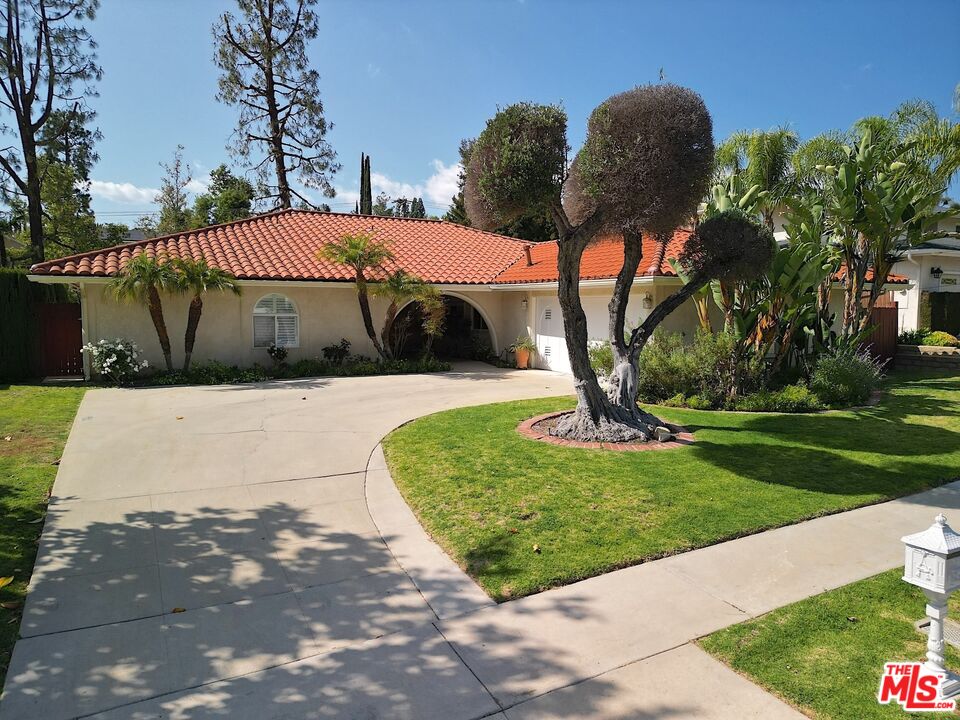 Proudly presenting this splendid gem in the highly sought-after tranquil neighborhood of Mulwood in Calabasas. Spacious and airy throughout, this beautiful single-story house showcases a bright and open layout welcomed by grand French double doors. This lovely house encapsulates the charm of a beloved, well-kept residence. Flooring throughout the house has been upgraded to thick real wood. The house stays cool during the intense California summers thanks to its close proximity to Malibu beach and Santa Monica mountain range, as well as the upgraded brand-new roofing with new clay tiles. In addition to the new roof, the plumbing lines have also been renovated anew. A point of emphasis is the newly built earthquake-proof patio, all done with city permits - the enjoyment of the gorgeous view of the stunning sunset during an al fresco dinner party on the new patio is, quite simply, spectacular. A total of 36 small trees have been planted in the huge backyard for extra privacy with new sprinkler lines installed to care for them. Backyard is big enough to build a pool or guest house. Peaceful during quiet hours coupled with beautiful singing from birds. Notably positioned within the highly desirable attendance boundary of award-winning Las Virgenes School Disctrict, three prestigious schools are just minutes away: Chaparrel Elementary, Alice C Stelle Middle School, and the amazing Calabasas High School. Also nearby are well-known markets, amenities, and shopping centers, popular eateries as well as major hospitals. Convenience of traffic in the area and the 101 freeway being near-at-hand accentuates the convenience of the home's outstanding location. 22651 Jameson Dr is a must-see and a can't-miss. Come seize your dream house.