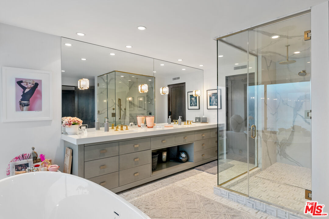 Experience Malibu living at its finest on iconic Malibu Road. This prestigious property, a former celebrity-owned beachfront retreat, is a breathtaking coastal sanctuary offering sweeping ocean views that stretch from Santa Monica and Palos Verdes to Catalina and Point Dume. A dramatic entryway makes a jaw-dropping impression, framed by landscaped front and back courtyards. Towering two-story ceilings and complete privacy elevate the living experience, while expansive outdoor spaces invite both serenity and entertaining. Inside, rich oak hardwood floors flow throughout. The gourmet kitchen stuns with creamy white cabinetry, luxurious finishes, and a layout designed for both beauty and functionality. The oceanfront primary suite is a true retreat with a cozy fireplace, dual walk-in closets, and panoramic views. The spa-like primary bath features a soaking tub, oversized steam shower, and direct ocean views. Upstairs, two guest bedrooms share a dual bathroom, offering both comfort and privacy. Outdoor living is unmatched, with a rare and expansive entertaining area complete with a built-in BBQ and private spa. The main house offers four bedrooms plus an office/den, while a completely separate one-bedroom guest house with its own ocean views sits across the courtyard. This iconic, exquisitely designed property is truly one of Malibu's finest, and can be sold fully furnished.