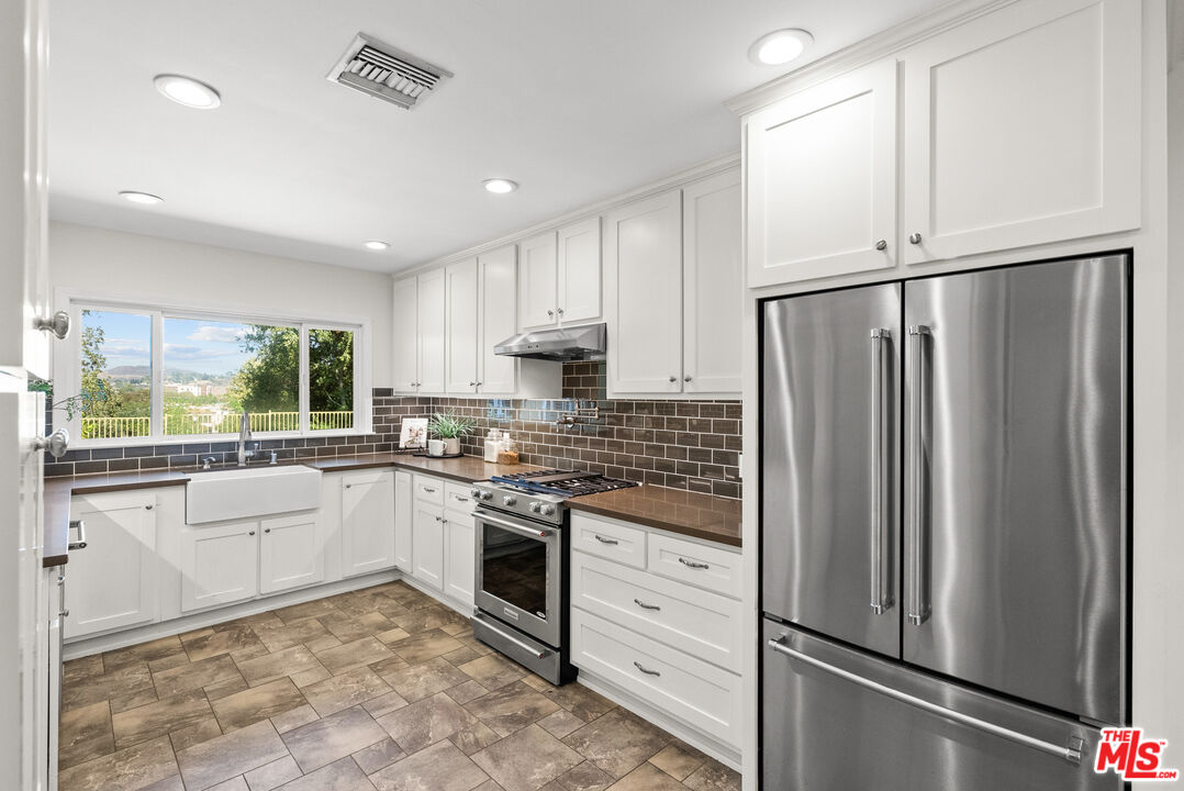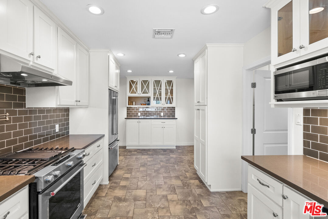 This extraordinary 5-bedroom, 4.5-bath estate, beautifully remodeled to perfection, is situated on a sprawling +-3/4 acre lot on one of Newhall's best streets, offering ample space and privacy. With 131 feet of frontage and a rare street-to-street lot, this home boasts exceptional curb appeal and an expansive layout. As you enter, you're greeted by an abundance of natural light streaming through exquisite diamond-beveled windows, which add a timeless elegance to the home. The interior features rich wood floors throughout, paired with plantation shutters, creating a warm and inviting atmosphere. The home is equipped with a multi-zone air and heat system, ensuring comfort in every room. The chef-inspired kitchen is a standout, featuring stainless steel appliances, sleek quartz countertops, and ample storage space, making it a dream for culinary enthusiasts. A true highlight of this property is the oversized 2-car garage, offering high ceilings that would easily accommodate a car lift, ideal for auto enthusiasts. For added convenience, there's a generous driveway with parking for 10+ cars, plus a large, covered carport, providing abundant parking options for guests or a growing family. Inside, every room is generously proportioned, with expansive living areas that are perfect for both relaxation and entertaining. The luxurious master suite is a retreat in itself, offering a private office/bonus room, a massive walk-in closet, and a spa-like bathroom complete with a separate soaking tub and a glass-enclosed shower. Throughout the home, every detail has been meticulously thought out, ensuring a seamless blend of comfort, style, and functionality. Outside, enjoy stunning views of Newhall, providing the perfect backdrop for quiet evenings or entertaining guests. This exceptional estate offers an unparalleled combination of luxury, space, and convenience all while being walking distance to Main Street highlighting Santa Clarita's best restaurants and entertainment!