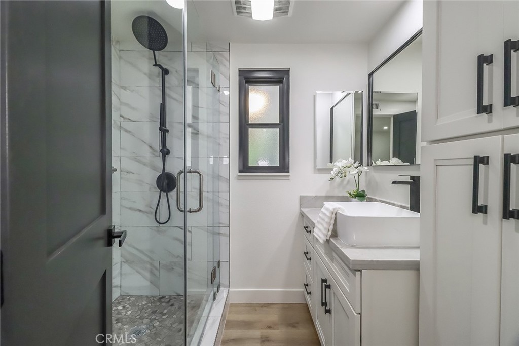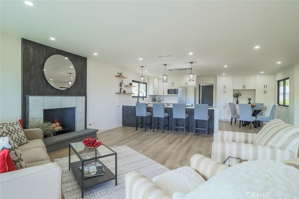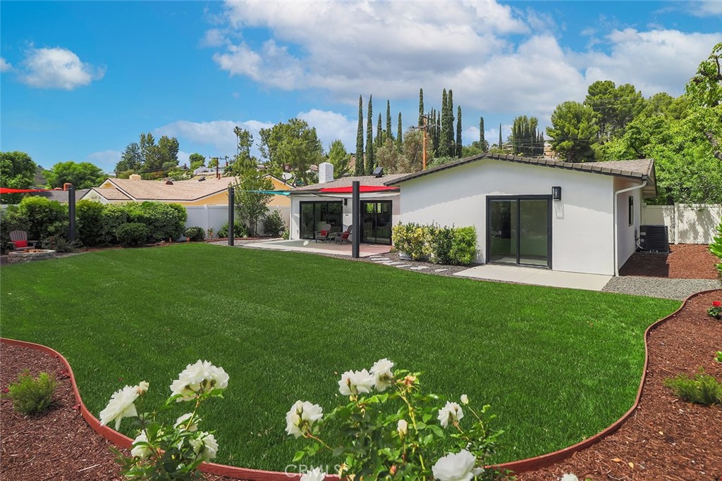 Welcome to this beautifully remodeled 4-bedroom, 2-bathroom single-story home, perfectly nestled in the scenic hills of Calabasas. Featuring an open and airy floor plan, this move-in-ready residence offers stunning views, contemporary finishes, and a seamless indoor-outdoor flow. Step inside to discover brand-new flooring throughout, fresh paint, and new solid-core interior doors with updated hardware. The spacious living area is anchored by a remodeled fireplace and flows effortlessly into the heart of the home—an all-new kitchen with quartz countertops, stainless steel appliances, custom soft-close cabinetry, a walk-in pantry, and space for both a breakfast nook and bar seating for four or more. Natural light pours through new windows and sliding doors, highlighting the thoughtful details throughout, including all-new lighting, moldings, and beautifully renovated bathrooms. The indoor laundry room offers convenience, while a newer HVAC system ensures year-round comfort. Outside, enjoy updated landscaping, fresh paint, new exterior lighting, and breathtaking views of the surrounding Calabasas hills—perfect for entertaining or simply unwinding. This turnkey gem blends modern updates with classic California charm—don’t miss your chance to call it home!