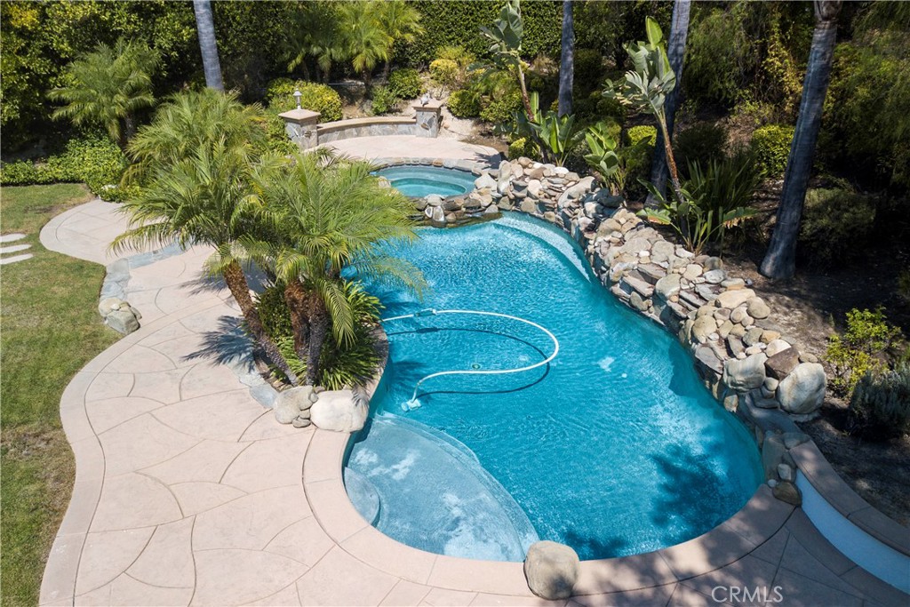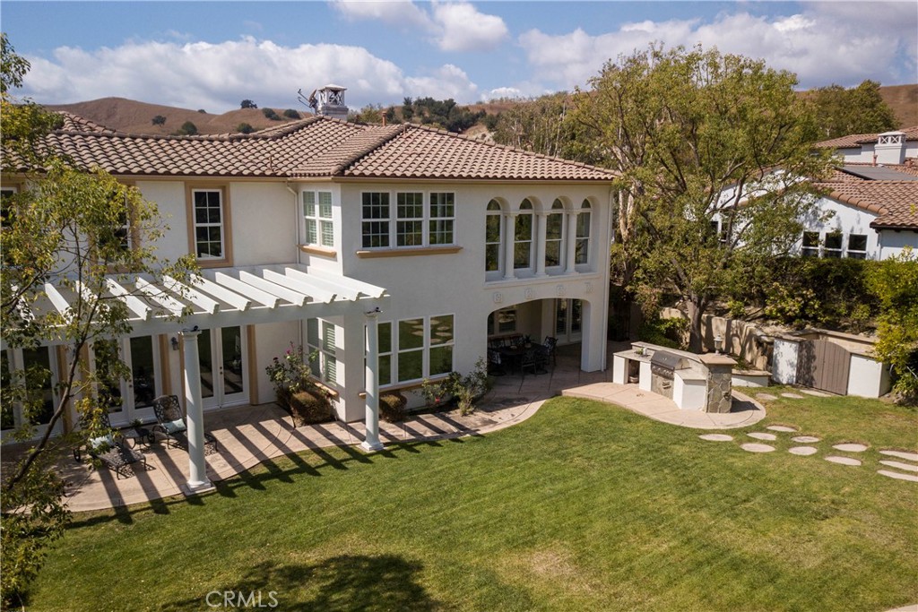 Welcome to Mont Calabasas, one of the most exclusive gated communities in Calabasas. This elegant estate greets you with a private courtyard featuring a tranquil water fountain and a pergola-covered sitting area, setting the tone for refined living. Inside, a grand foyer with soaring ceilings and a dramatic circular staircase bathed in natural light makes an immediate impression. The home has been updated with new flooring and fresh interior paint throughout. Formal living and dining rooms, each with a fireplace, provide timeless settings for entertaining. A spacious family room with a fireplace opens seamlessly to the chef’s kitchen, appointed with a center island, granite counters, new double ovens, microwave, wine refrigerator, and a built-in 48-inch stainless steel refrigerator. A breakfast nook and island seating complete the space. The nearly half-acre grounds are a private resort, offering a sparkling pool, spa, water features, multiple outdoor seating areas, and a built-in BBQ for alfresco dining. Designed for both comfort and function, the floor plan includes one bedroom and a dedicated office downstairs, plus four bedrooms and an additional upstairs family room. The luxurious primary suite is a private retreat with a sitting area, fitness room, spa-like bath with dual vanities, oversized walk-in closets, and balconies overlooking the park-like grounds. Additional highlights include a whole-house water treatment system and thoughtful upgrades throughout. This residence blends timeless elegance with modern amenities, delivering the ultimate Calabasas lifestyle.