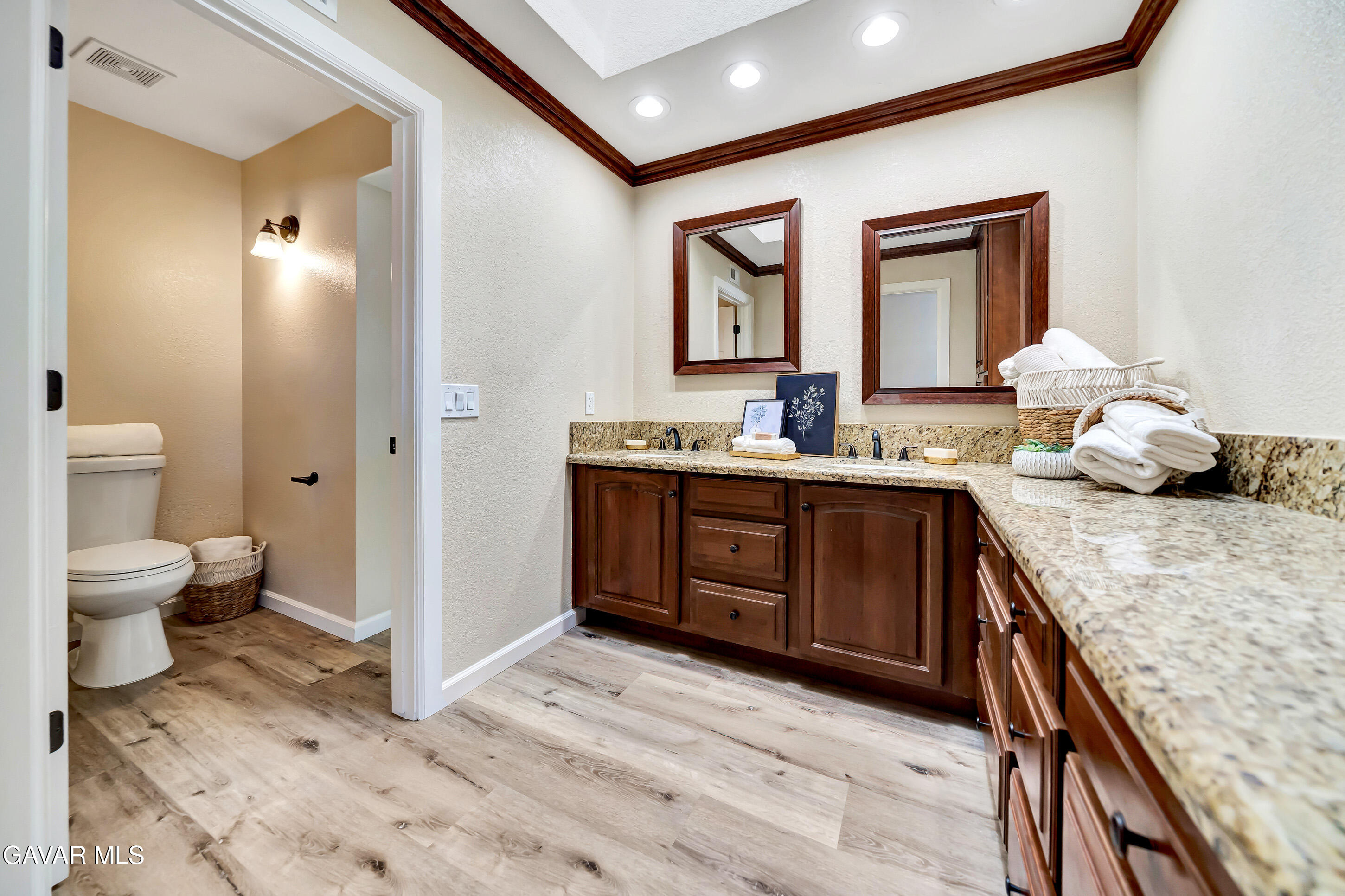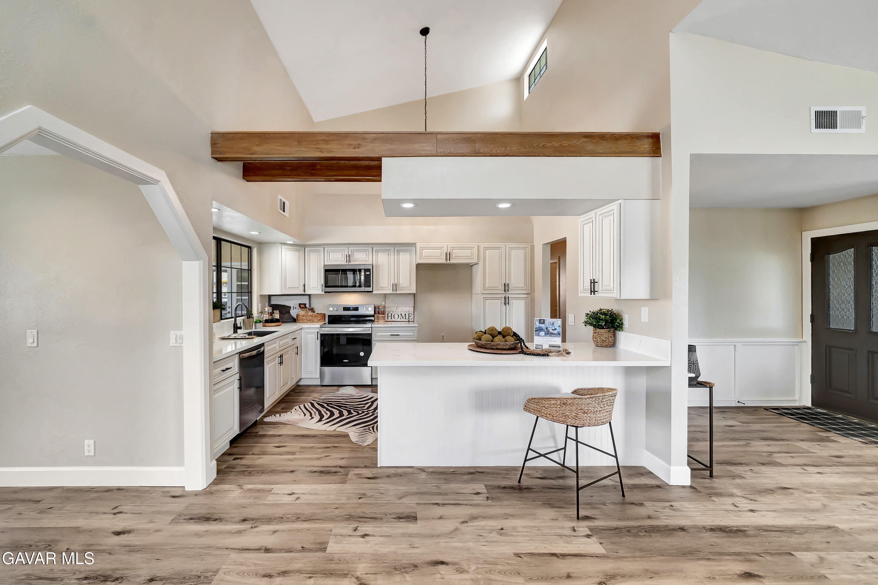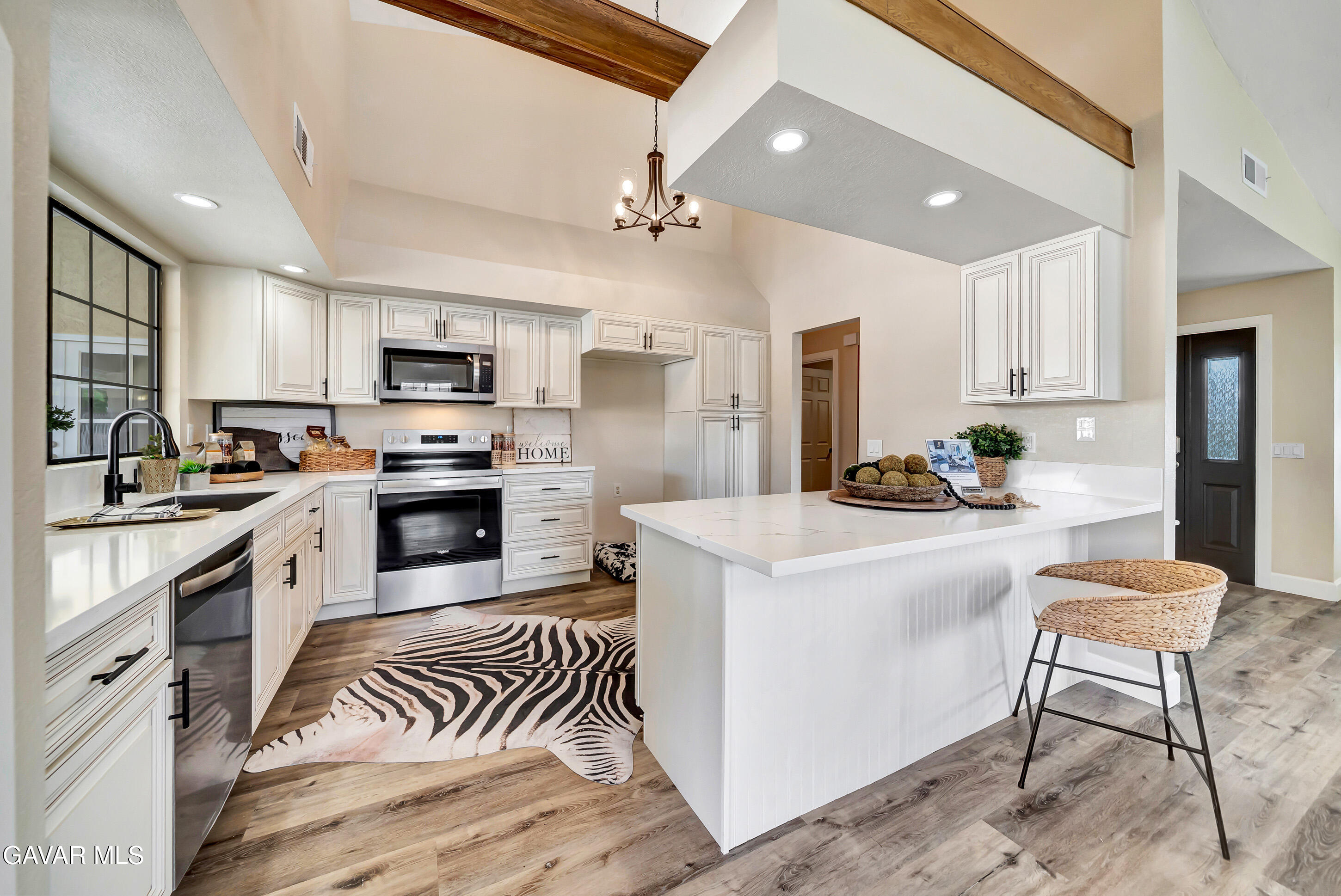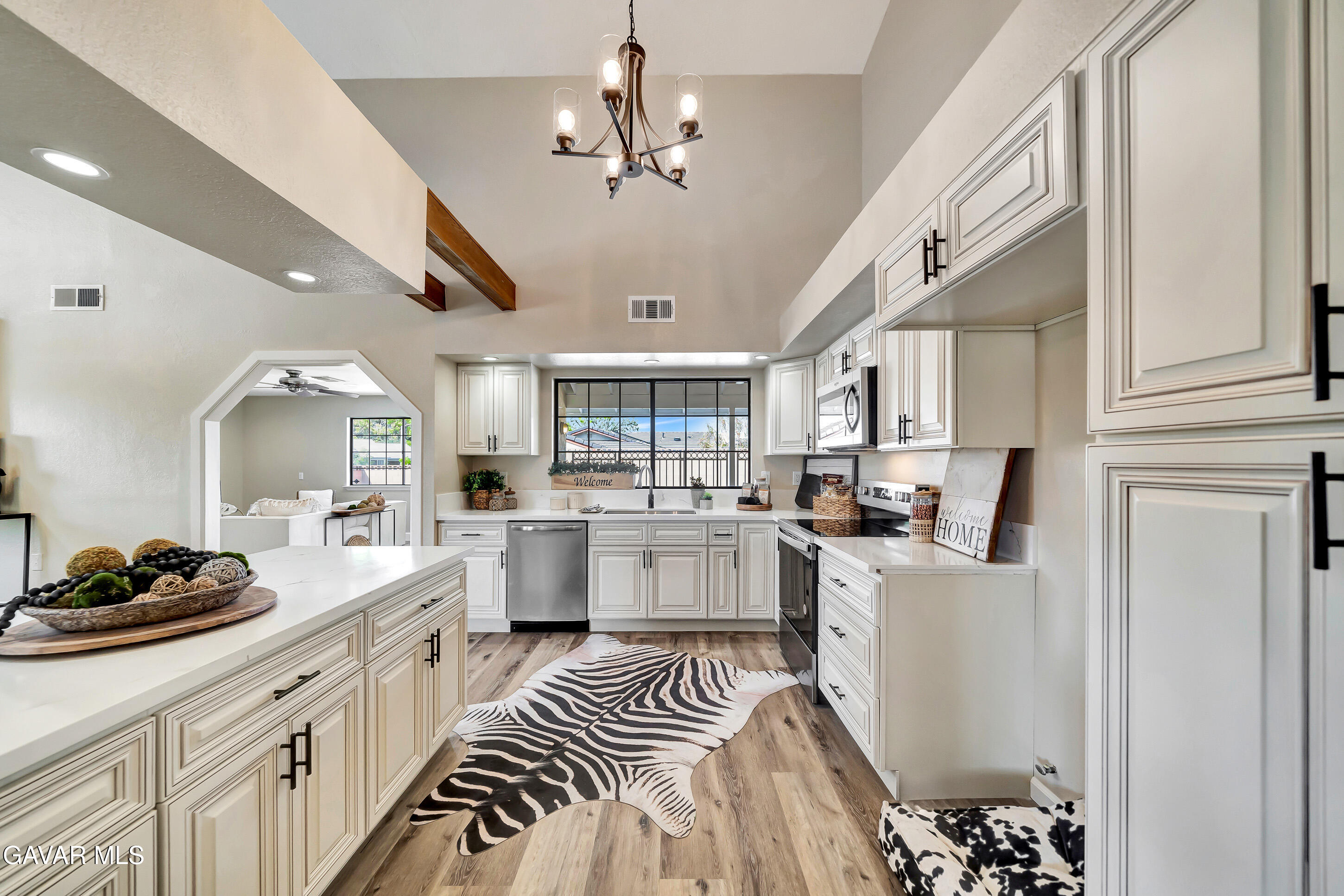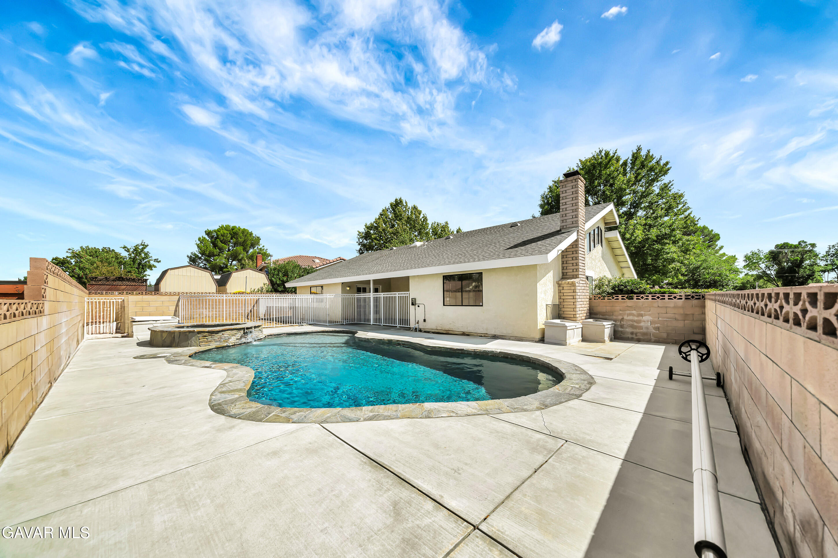Stunning single story west lancaster pool/spa home! This beautifully rehabbed single-story IGG POOL/SPA home is located at the tip of a quiet cul-de-sac and truly shows like a model! Offering nearly 2,000 sq ft of spacious living, the home is filled with natural light, soaring vaulted cathedral ceilings, and a picture-perfect interior and exterior. There is also a separate cozy family room with a gorgeous floor to ceiling rock fireplace! Completely updated throughout, the home boasts ALL-NEW luxury laminate flooring, fresh NEW custom designer interior/exterior paint, NEW chandeliers, NEW ceiling fans, and NEW fixtures. The gourmet kitchen shines with BRAND NEW antique white cabinetry, NEW quartz countertops, a NEW Farmhouse sink with NEW faucet, and top-of-the-line NEW black stainless appliances and convenient breakfast bar! Both bathrooms have been fully remodeled with NEWLY reglazed tubs/showers, NEW faucets, and NEW toilets! The master suite offers French doors leading to your private backyard retreat with double mirrored closets and an en suite NEWLY remodeled bath with double sinks and granite countertops! Outdoors, enjoy the gated in-ground gunite pool/spa, covered patio, block wall fencing, mature landscaping, and a separate gated area for kids or pets. There is also an indoor laundry room, a 3 car garage and paved RV access on the extra long extended driveway! With upgrades everywhere and curb appeal that stands out, this turn-key West Lancaster gem won't last long--schedule your showing appt today!
