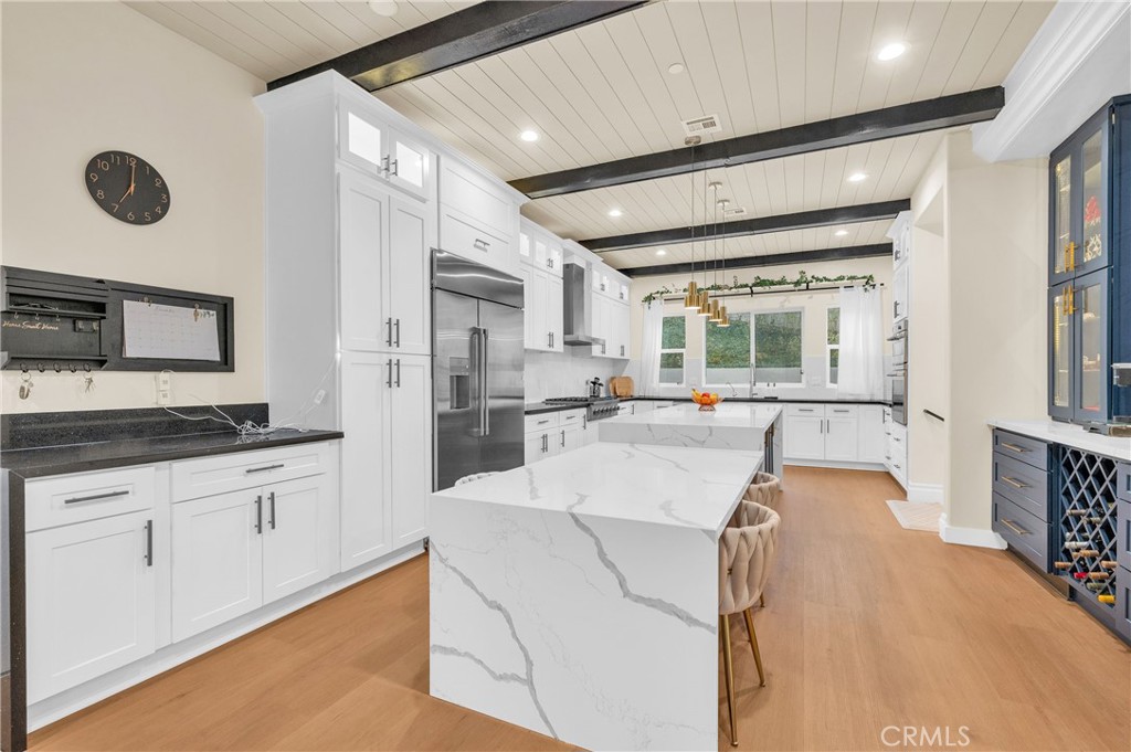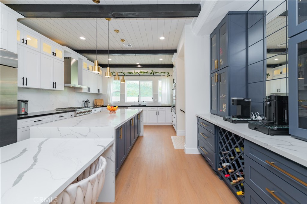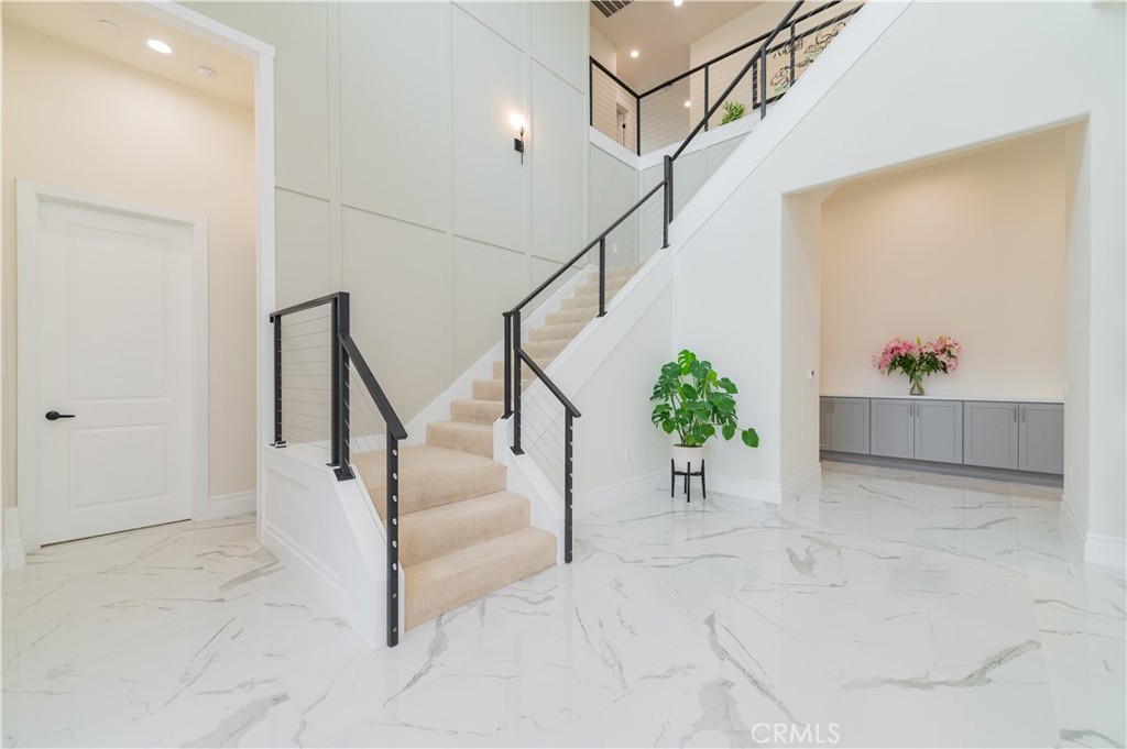 Nestled at the end of a tranquil cul-de-sac in a desirable Walnut neighborhood, this recently constructed custom residence offers an unparalleled blend of classic Spanish-style architecture and striking modern interior design. Prepare to be captivated from the moment you enter the breathtaking 23-foot tall foyer, where a stunning chandelier sets a tone of elegance and grandeur that extends throughout the home. Gleaming porcelain tiles pave the way through an expansive open floor plan, thoughtfully designed for both sophisticated entertaining and comfortable daily living. The heart of this magnificent home is undoubtedly its gourmet kitchen, a chef’s dream equipped with top-of-the-line modern appliances, a large center island, and an innovative extended dining table attachment perfect for casual meals or larger gatherings. Beautifully accented walls add a touch of artistry and personality to the refined living spaces. The flexible layout includes two generously sized bedrooms conveniently located on the main floor, while the upper level boasts three additional bedrooms. Among these is the luxurious master suite, a private sanctuary designed for ultimate relaxation. From this elevated vantage point, enjoy serene mountain vistas that provide a picturesque backdrop to your everyday life. This exceptional property is perfectly situated within the boundaries of the highly acclaimed Walnut school district, renowned for its academic excellence. Residents will appreciate the peaceful ambiance of cul-de-sac living, offering reduced traffic and a welcoming sense of community. The surrounding area provides easy access to local parks, shopping, and dining, ensuring a lifestyle of convenience and enjoyment in one of East LA County's most sought-after locations.