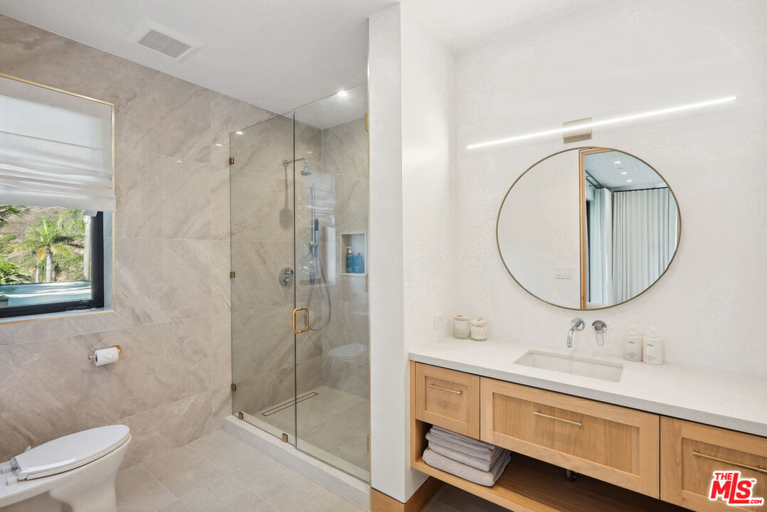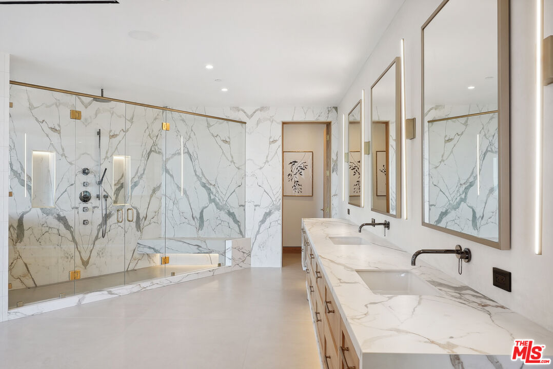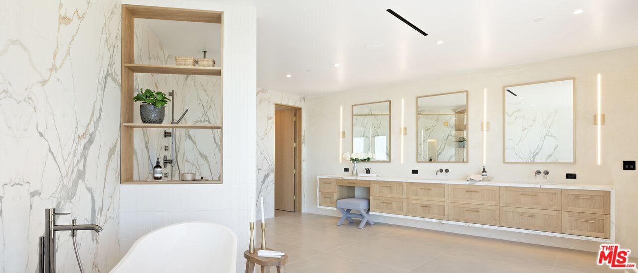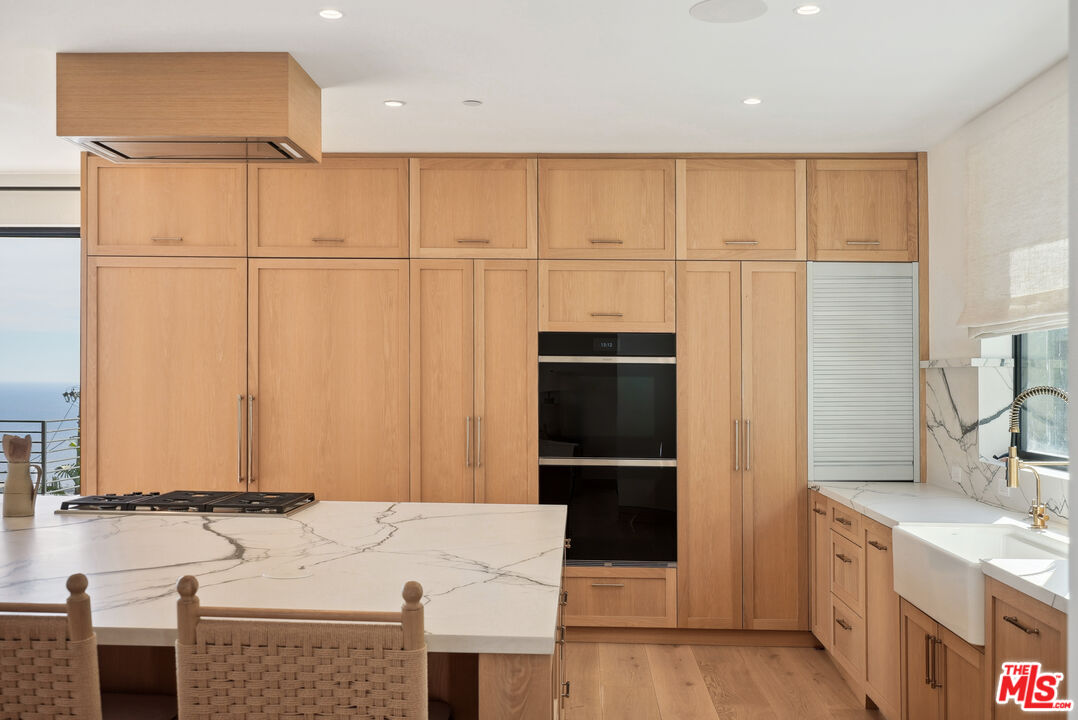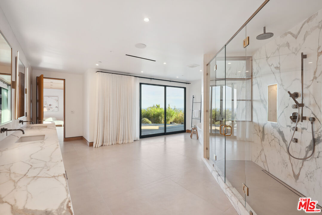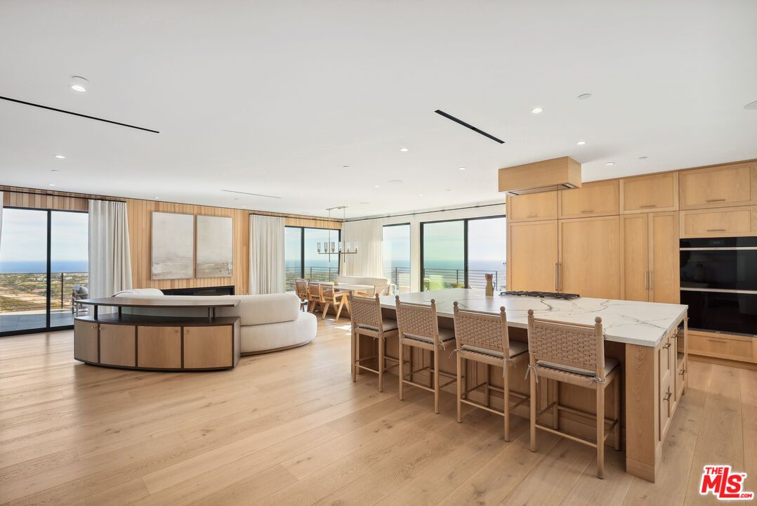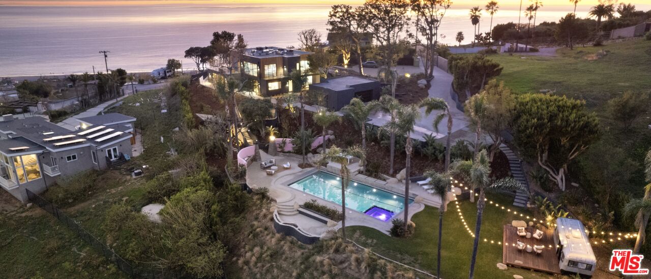 Tucked away at the end of a long, hidden drive, this ultra-private Malibu Park estate is more than a homeit's an exclusive retreat for those who value space, serenity, and breathtaking panoramic views. Set on 1.6 acres, this newly completed architectural masterpiece offers seamless indoor-outdoor living, impeccable craftsmanship, and the ultimate coastal lifestyle.As you ascend to this hilltop sanctuary, the gated entrance and two grand parking forecourts set the stage for a home that is as impressive as it is secluded. Step through a striking oak pivot door and be instantly captivated by unobstructed ocean vistas stretching across Point Dume, Catalina Island, and Zuma Beach.Designed for both lavish entertaining and everyday ease, the main level boasts a chef's kitchen wrapped in white oak, with top-of-the-line Wolf and Sub-Zero appliances. The open-concept dining area flows effortlessly to a wraparound deck with a full outdoor kitchen and a limestone-clad fireplace, creating the perfect setting for sunset dinners and starlit gatherings. The living room, with Juliette balconies and a statement fireplace, offers a cozy yet dramatic space to unwind, while a private office and en-suite bedroom complete this level.A floating oak staircase leads to the lower level, where luxury reaches new heights. The 1,200 sq. ft. primary suite is a world of its own, featuring a cedar-clad ceiling, a private sitting area, and floor-to-ceiling ocean views. The 500 sq. ft. boutique-style closet is a showstopper, designed with dual islands, a makeup station, and a mirrored dressing wall. The spa-inspired primary bath is a masterpiece, showcasing a 12-ft double vanity, a freestanding soaking tub overlooking Point Dume, and a full-body jet shower wrapped in Italian porcelain stone. Two additional en-suite bedrooms, adorned with Italian tile and Hansgrohe fixtures, complete this level.Step outside to your private resort-like oasis, where every detail has been thoughtfully designed. A tranquil gravel courtyard connects the gym and double garage, while hidden garden pathways lead to the 48' x 22' pool and spa, multiple sunbathing terraces, and a fully equipped second outdoor kitchenall surrounded by lush landscaping and the soothing sounds of nature. Tucked discreetly on the grounds, a built-in Airstream offers additional guest accommodations, blending seamlessly into the estate's natural beauty.This is not just a home, it's a rare, ultra-private lifestyle in one of Malibu's most sought-after locations. Experience the peace, prestige, and panoramic beauty of 5250 Horizon Drive