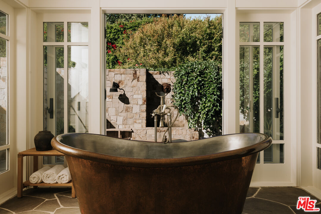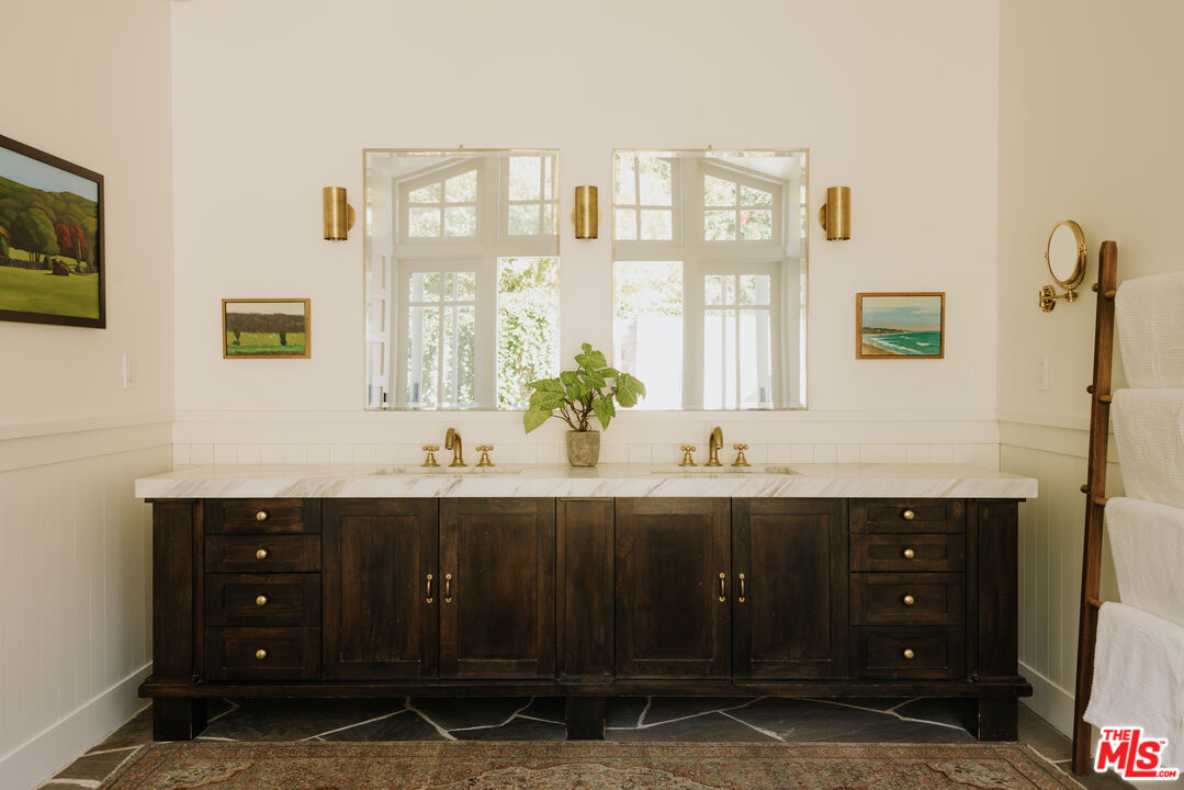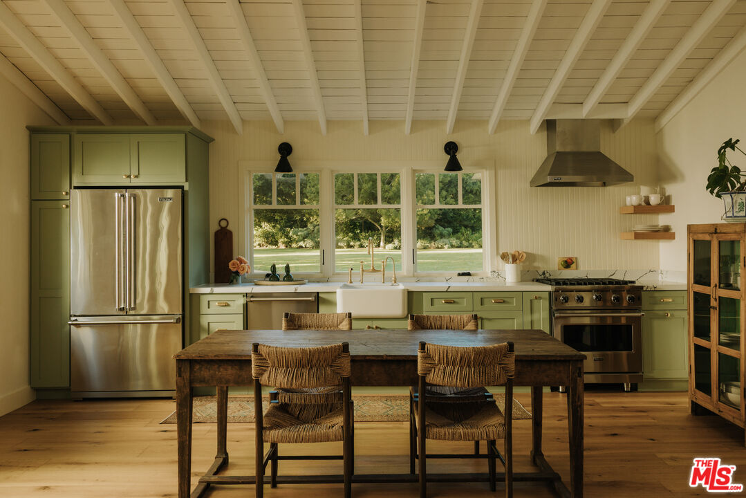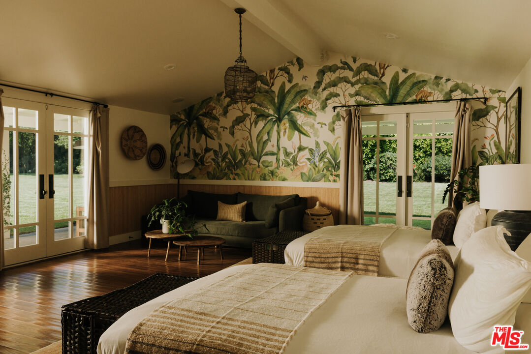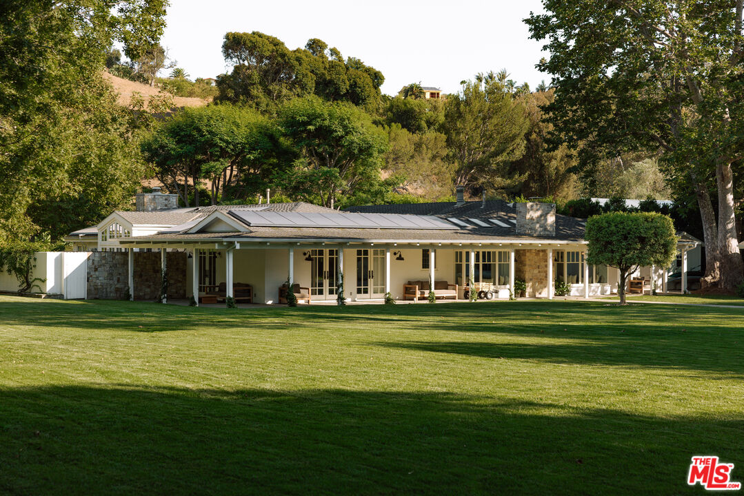 Nestled in Malibu's coveted Bonsall Canyon, renowned for its tree-lined streets and proximity to Point Dume and Zuma Beach, this single-story ranch estate offers a harmonious blend of refined design and relaxed coastal living. Set on 1.6 gated acres, the 5,261-square-foot property includes a 3-bedroom, 3.5-bath main residence and a 1-bed, 1-bath guest house with a full kitchen, both adorned with hardwood floors and bespoke detailing. At the heart of the home, a chef's kitchen outfitted with Viking appliances opens to sun-drenched living spaces that flow effortlessly into the manicured grounds. French doors reveal a private backyard sanctuary featuring a 50-foot freshwater pool with diving board, dual outdoor showers, a fire pit, and an illuminated putting green, ideal for entertaining or peaceful relaxation. The primary suite offers tranquil garden views, dual closets, radiant heated floors, and a spa-inspired bath with steam shower. Equipped with solar panels, four Tesla Powerwalls, and a grandfathered well with smart irrigation, Bonsall seamlessly marries sustainability with modern luxury. Here, elegance, privacy, and coastal beauty unite to define the true essence of Malibu living.