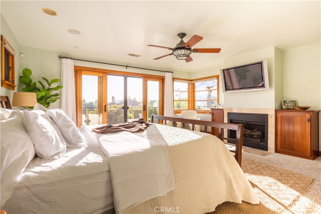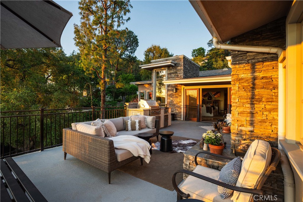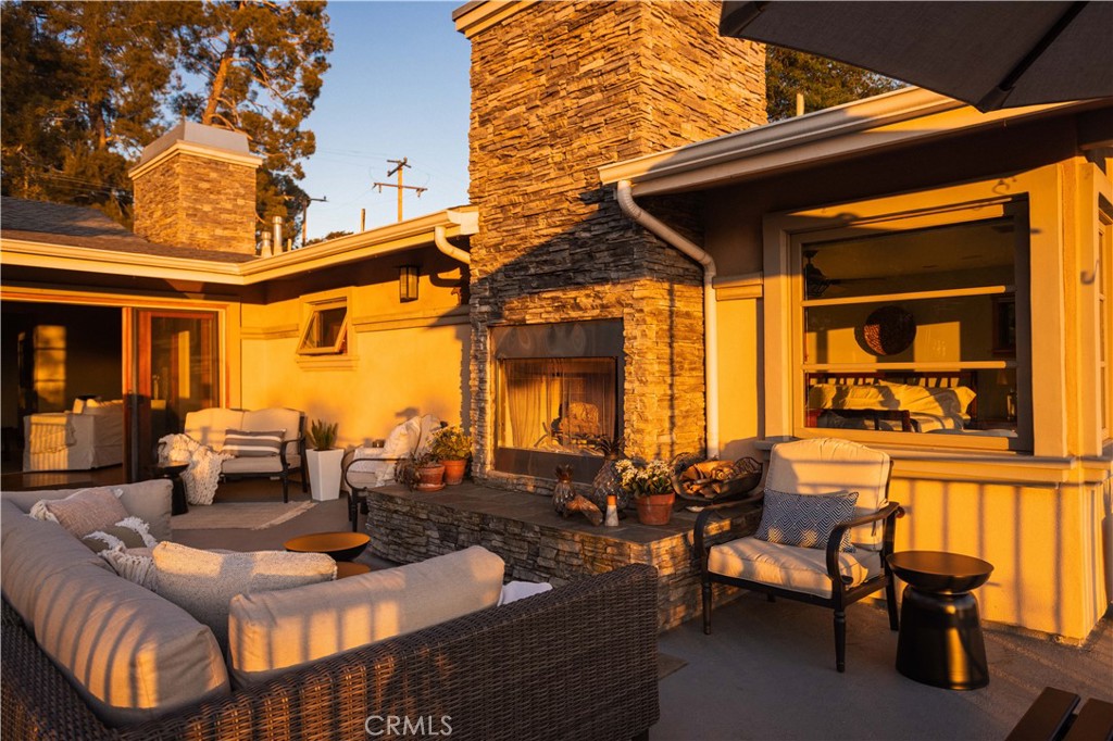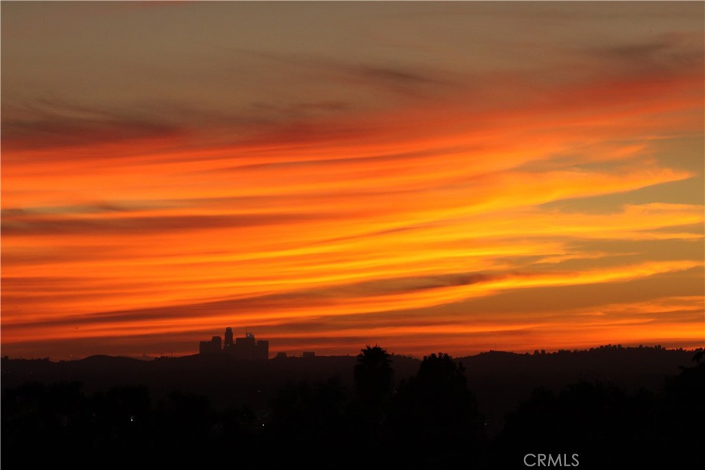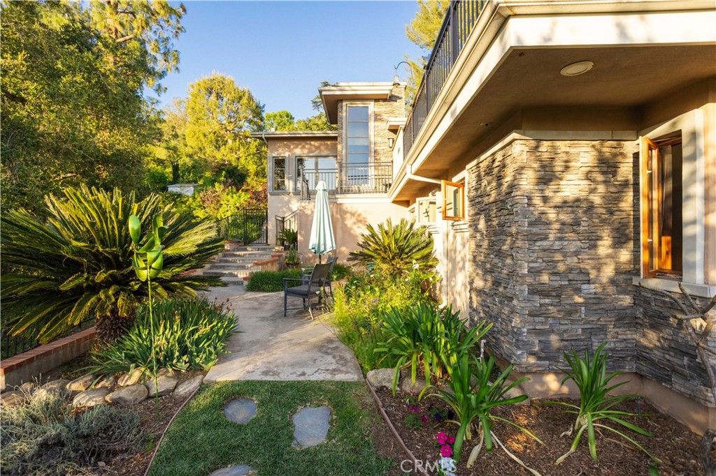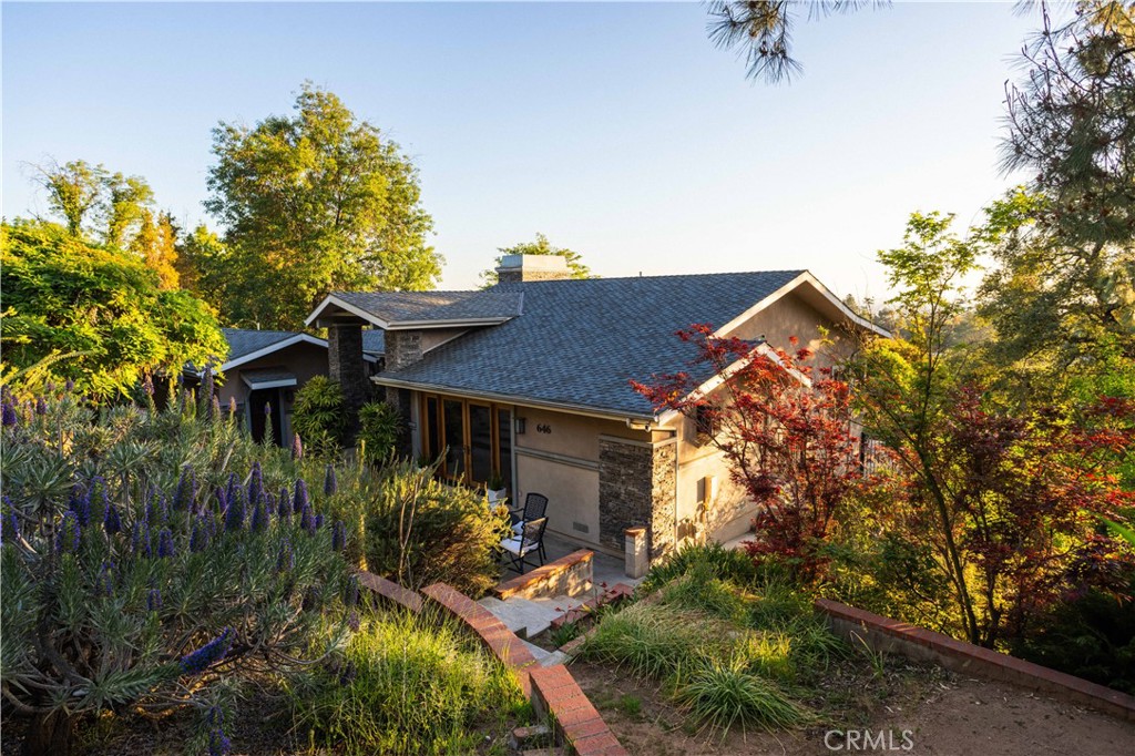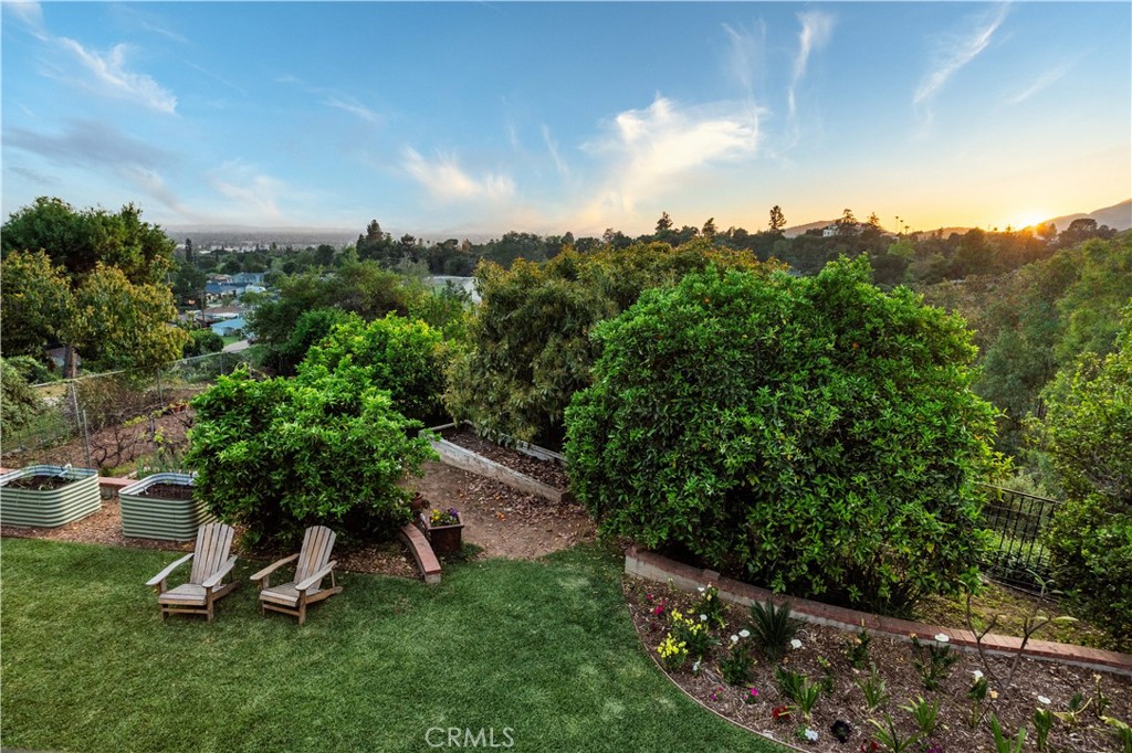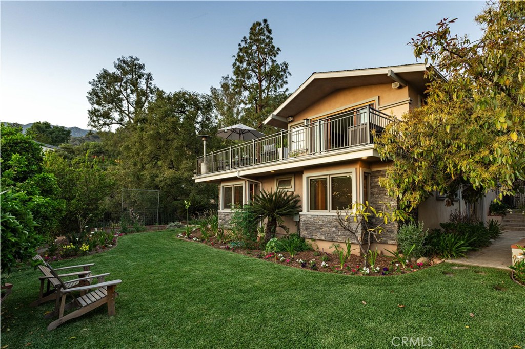Nestled in a north Monrovia enclave this impressive residence commands breathtaking 180-degree panoramas stretching from the vibrant cityscape of downtown Los Angeles to the serene silhouette of Catalina Island on the horizon. A picturesque wisteria-draped trellis welcomes you as you gracefully descend the steps to the inviting front entrance. The main level unfolds into a generously proportioned living room, elegantly appointed with a warm fireplace framed by custom shelving and seamless access to the expansive deck – an ideal spot for al fresco relaxation and soaking in the stunning vistas. Entertain with sophistication in the formal dining room, which conveniently connects to a meticulously climate-controlled 900-bottle wine cellar, perfect for the discerning enthusiast. The expansive kitchen is a culinary masterpiece, anchored by a substantial center island and boasting professional-grade stainless steel appliances, a casual breakfast bar, and a sun-drenched breakfast nook, all while framing captivating views. Tucked away for ultimate tranquility, the primary bedroom is a private retreat featuring its own fireplace, a spacious walk-in closet, and a luxurious en-suite bathroom complete with dual sink vanities, an oversize tub, and a separate shower. Direct access to the deck further enhances this serene sanctuary. A versatile office space (easily convertible to a 4th bedroom), a full bathroom, a powder room, and a well-equipped laundry room with ample cabinetry complete the thoughtfully designed main level. The lower level provides additional living space with two well-sized bedrooms, a shared bathroom, a comfortable family room, and a dedicated office – offering flexibility for family living or guest accommodations. Step outside into a flourishing garden, a true urban oasis brimming with vibrant kale, healthy broccoli, fragrant citrus, and delectable avocado trees – a testament to nature's bounty. Adding to the property's appeal is a charming detached guest house, a proven successful Airbnb, offering a spacious room and a private bathroom. Completing this exceptional property are a detached two-car garage with an attached storage room and a driveway providing ample off-street parking. This is more than a home; it's a lifestyle, offering unparalleled views, luxurious amenities, and a connection to nature, all within easy reach of city conveniences.