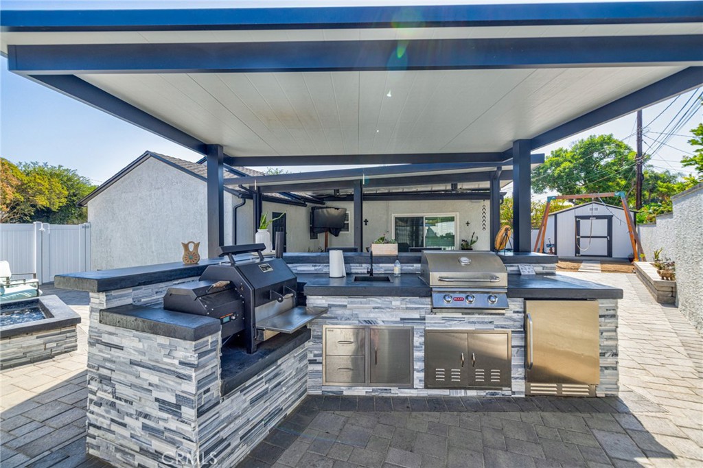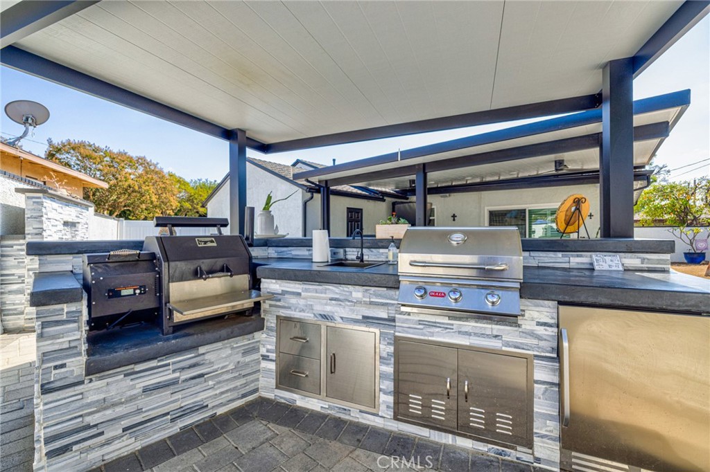 This beautifully upgraded 2-bedroom, 2-bathroom home offers nearly 1,500 sq ft of stylish living space with exceptional attention to detail. Recent upgrades include a brand-new roof, complete kitchen remodel, new electrical wiring, and updated attic insulation for comfort and efficiency. Fresh interior and exterior paint enhance the modern feel, while new pavers, brick planters, and a newly built 6-ft wall fountain create stunning curb appeal and an inviting outdoor atmosphere. Enjoy the ultimate backyard retreat with a new attached patio cover, a fully equipped BBQ island with natural gas and water lines, and a dedicated BBQ island patio cover. This home is move-in ready and designed for both comfort and entertaining! New interior photos!