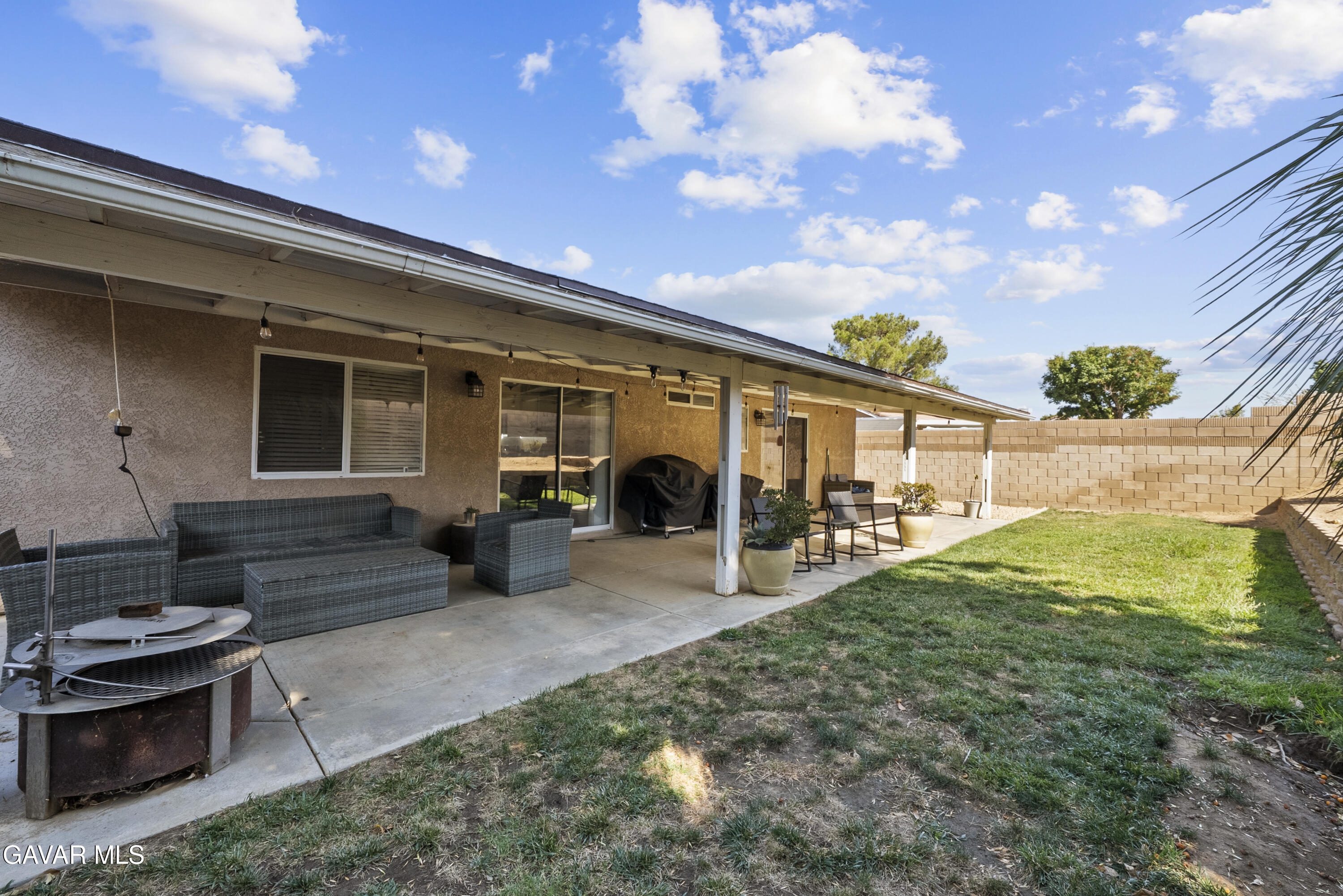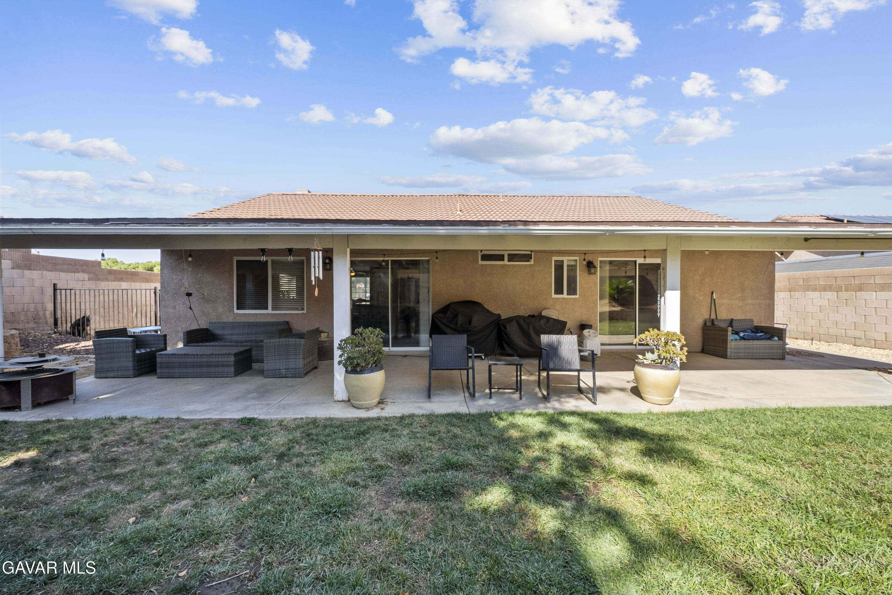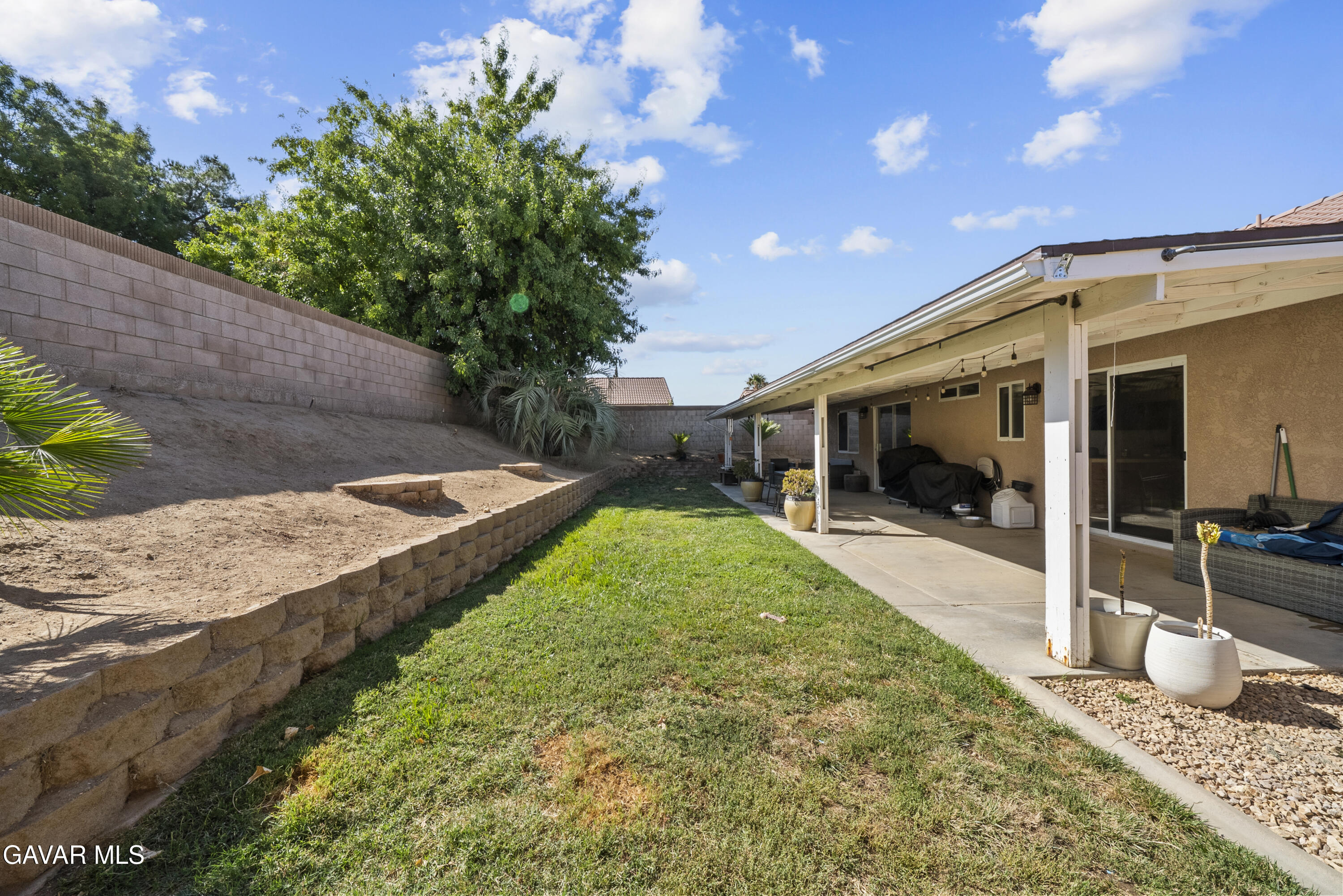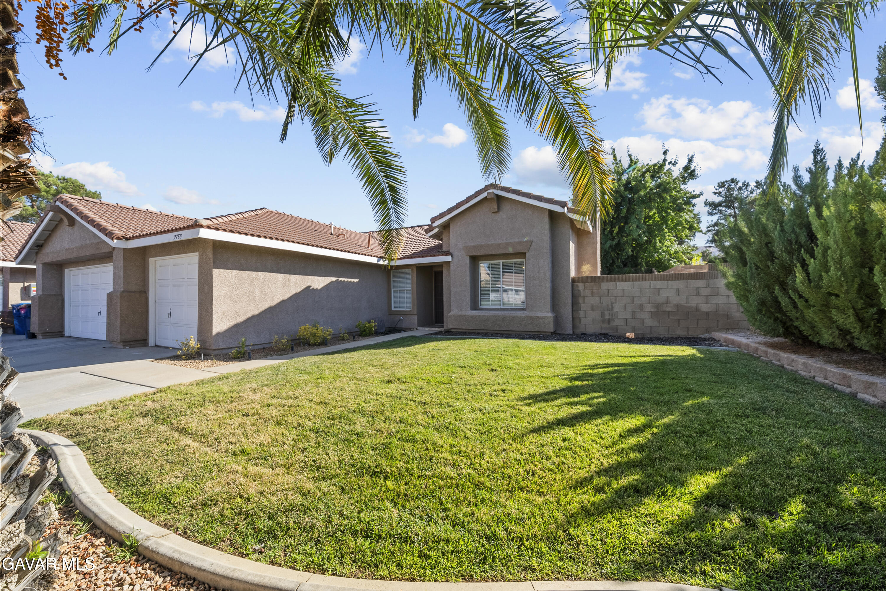 Charming Rancho Vista Single-Story! Located in the heart of Rancho Vista, just steps from the golf course, neighborhood park, and top-rated schools, this beautifully maintained 4-bedroom, 2-bath home is move-in ready. The open kitchen features sleek quartz countertops, stainless steel appliances, and flows seamlessly into the living spaces with wood laminate flooring and tile walkways for a clean, modern feel. Cozy up this winter by the inviting fireplace in the spacious living room. The primary suite boasts a large tiled shower, dual vanities, and a walk-in closet. Convenient indoor laundry adds ease to daily living, while the private backyard with a covered patio and block wall fencing is perfect for entertaining. A 3-car garage completes the package, offering plenty of storage. Don't miss this perfect blend of comfort, convenience, and style in one of Palmdale's most sought-after neighborhoods!
