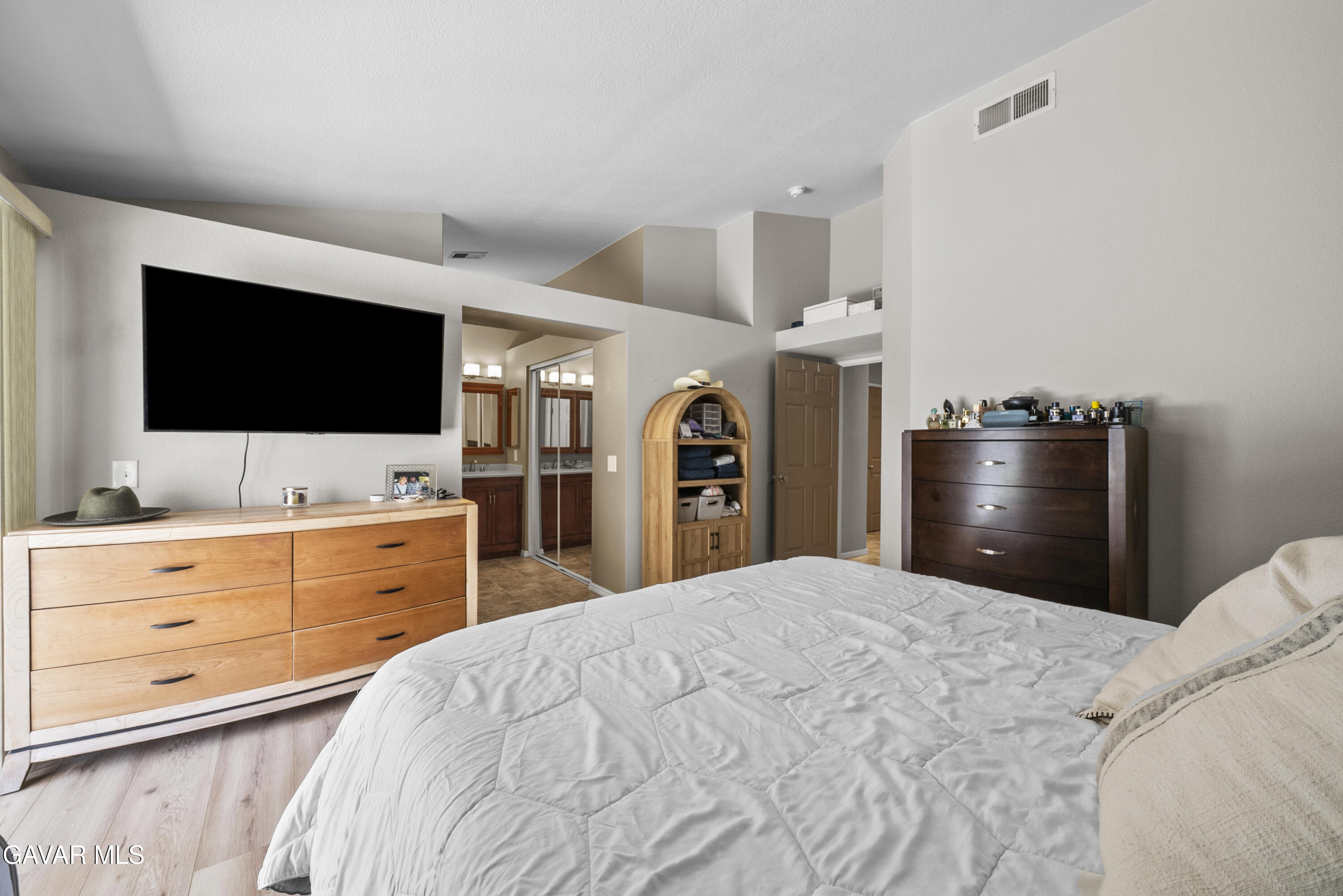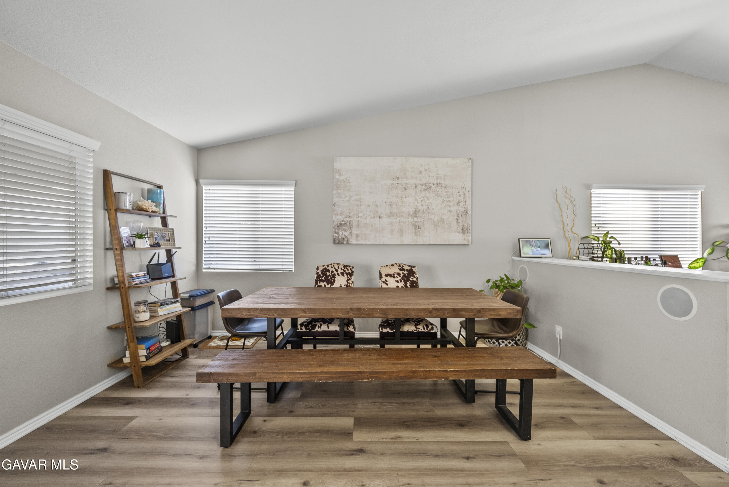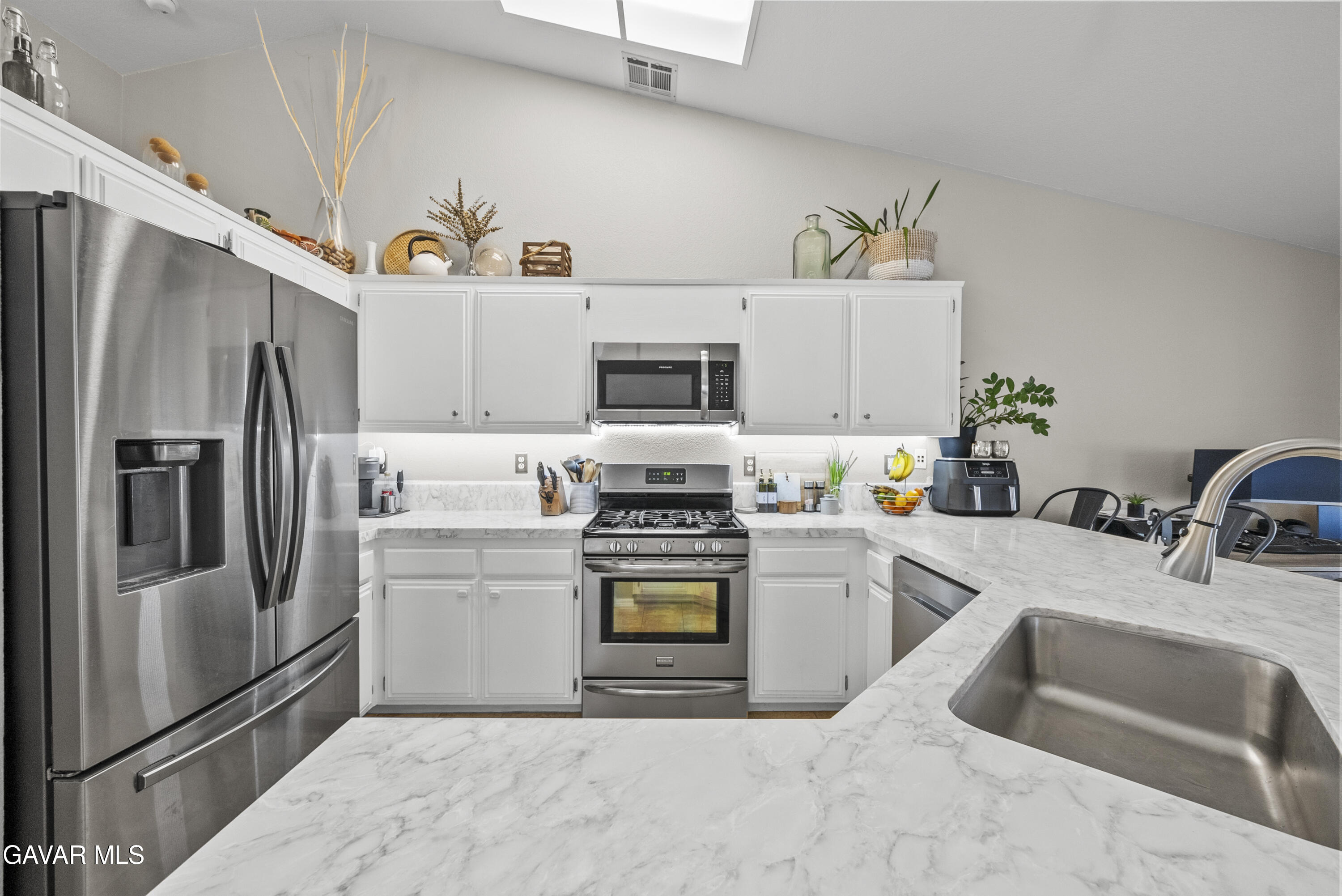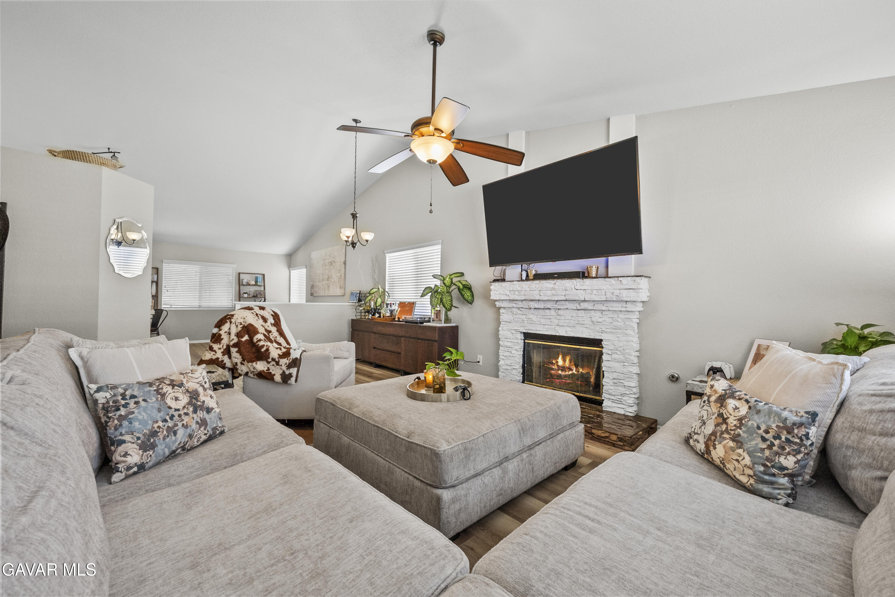 Charming Rancho Vista Single-Story! Located in the heart of Rancho Vista, just steps from the golf course, neighborhood park, and top-rated schools, this beautifully maintained 4-bedroom, 2-bath home is move-in ready. The open kitchen features sleek quartz countertops, stainless steel appliances, and flows seamlessly into the living spaces with wood laminate flooring and tile walkways for a clean, modern feel. Cozy up this winter by the inviting fireplace in the spacious living room. The primary suite boasts a large tiled shower, dual vanities, and a walk-in closet. Convenient indoor laundry adds ease to daily living, while the private backyard with a covered patio and block wall fencing is perfect for entertaining. A 3-car garage completes the package, offering plenty of storage. Don't miss this perfect blend of comfort, convenience, and style in one of Palmdale's most sought-after neighborhoods!