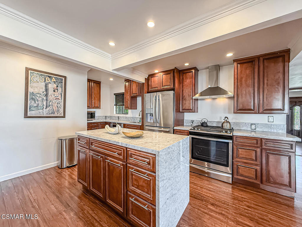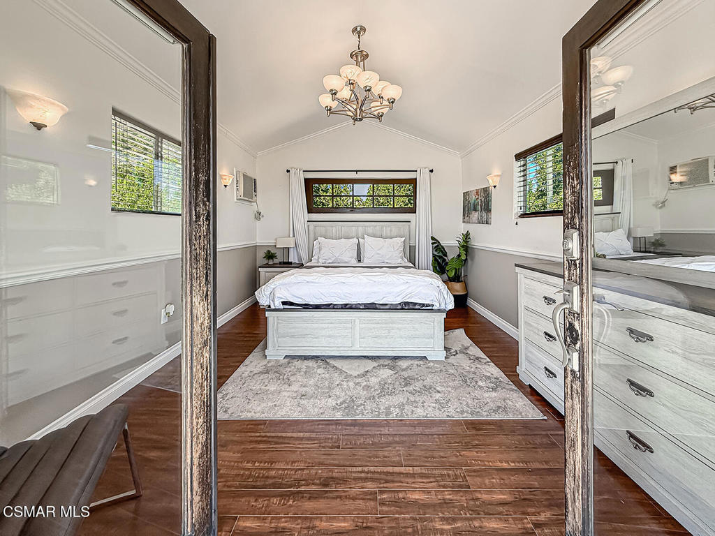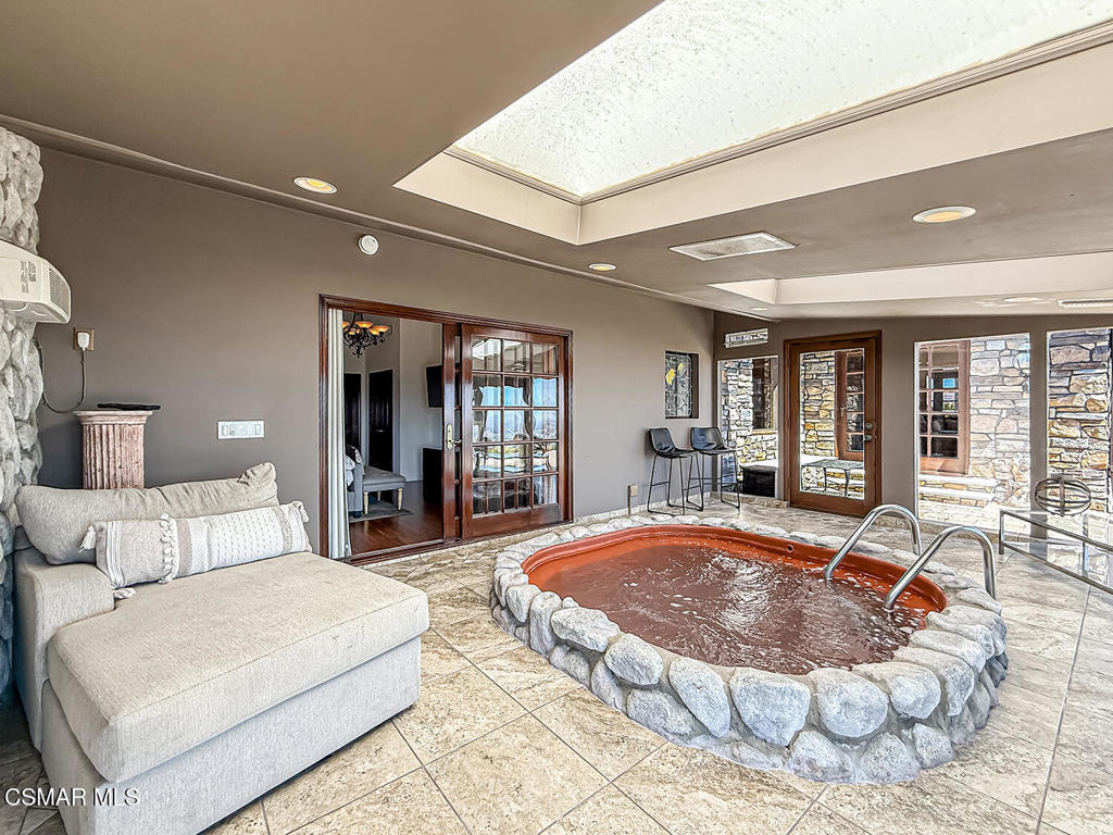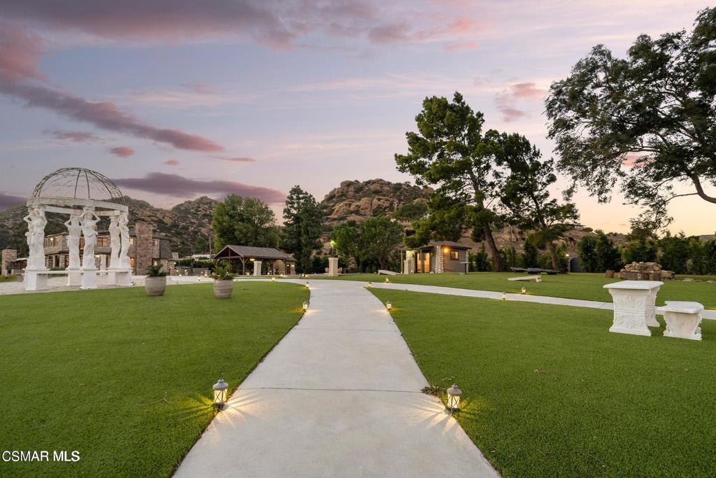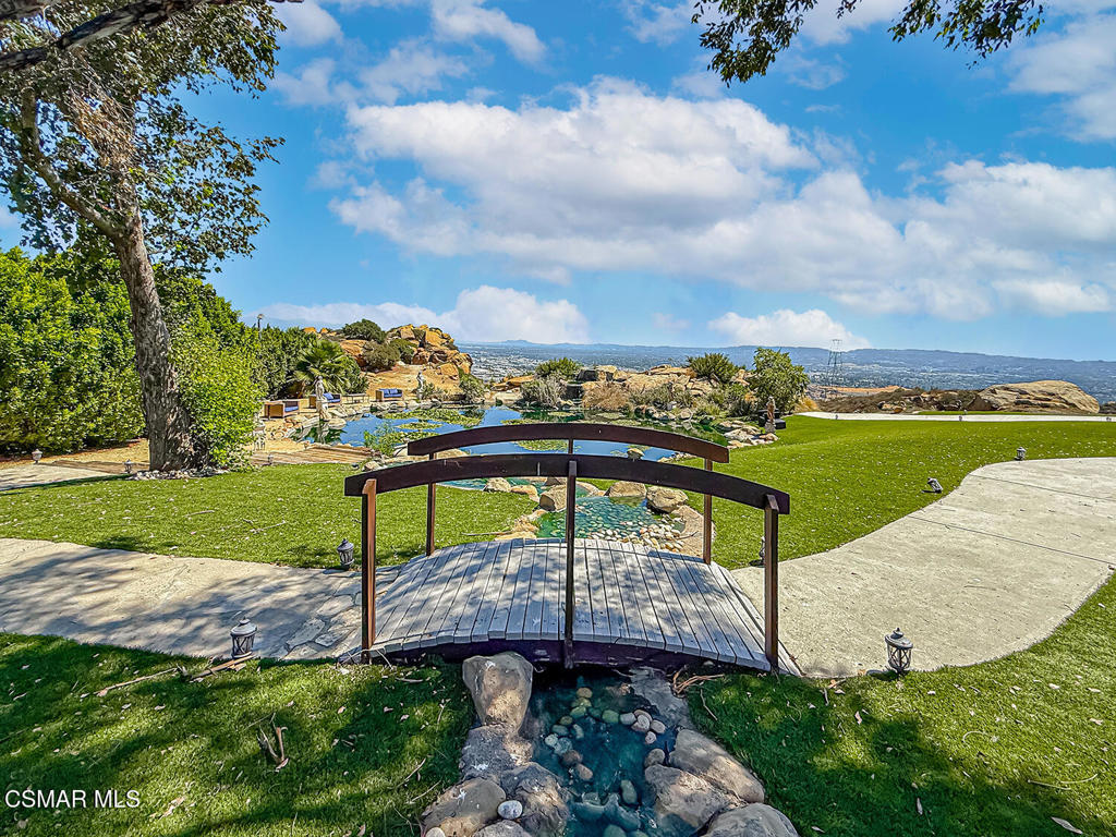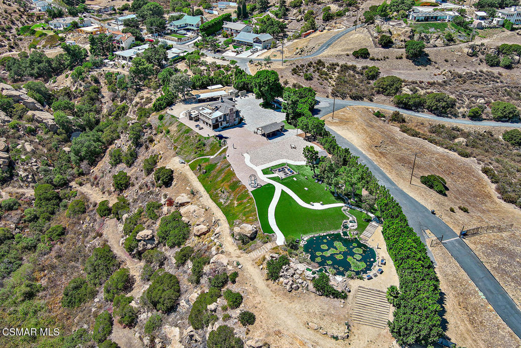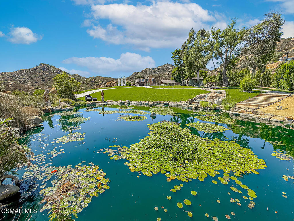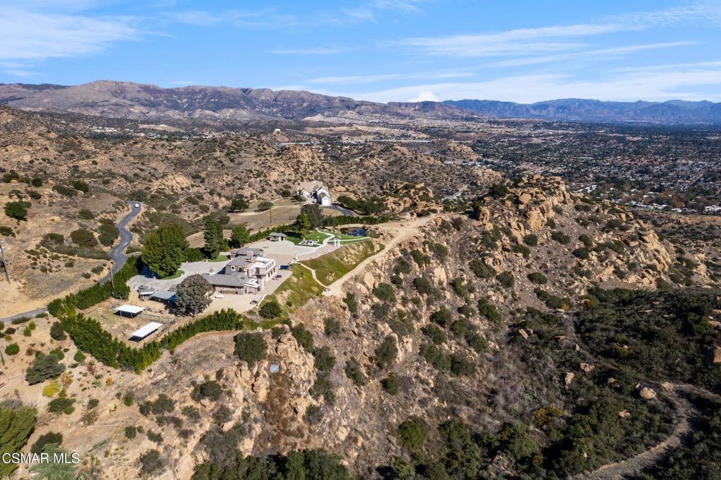 Imagine a place where every step feels like a discovery-- a 42 acre estate that unfolds as a storybook of secluded hidden trails, cascading creeks, sandstone caves, and ancient oak groves. Welcome to your private Chatsworth dreamland, a 4,067 square foot mountaintop chateau designed not just to be seen, but to be experienced. A welcoming entryway reveals a wealth of impressive format and casual spaces, including family and dining areas, as well as entertaining rooms with awe-inspiring vistas that set the stage for incredible living. The gourmet kitchen is perfect for the culinary enthusiast, featuring an oversized waterfall island and top-of-the line amenities, including premium appliances and rich cabinetry with rope trim. Here, gatherings transform into celebrations, retreats become rejuvenation, and events find their ideal canvas. The grounds are alive with possibility: a zen koi pond for reflection, an open-air amphitheater for performance, equestrian paths for adventure, and tucked-away picnic woodlands for intimacy. The chateau itself rises with light and elegance, offering four bedrooms, four baths, and a primary suite with its own indoor spa, sauna, and fireplaces. Floor-to-ceiling glass frames landscapes that sweep across Los Angeles like a living mural. And beyond its wonderful allure lies a developer's dream. Adjoining this truly magical place, APN# 2724006004 offers a total of 42 acres, presenting a once-in-a lifetime opportunity to acquire one of the most expansive statement properties in the region. The acreage offers exceptional potential to be subdivided into multiple estate lots, each commanding its own breathtaking vantage point over the valley and sparkling lights below. In an enviable location within easy reach of Sherman oaks and Studio City, this income-producing property, offering short-term rental options, is alluring as both a production-friendly facility and a unique event venue. This is more than a home- it's a paradise of peace and inspir