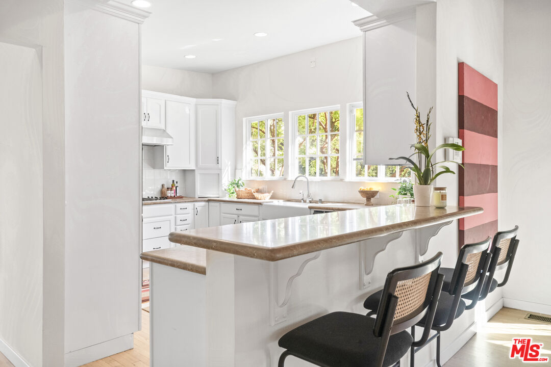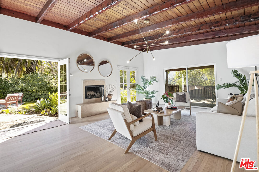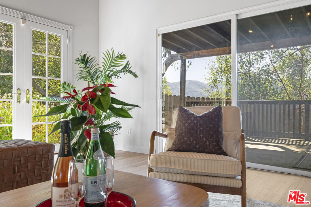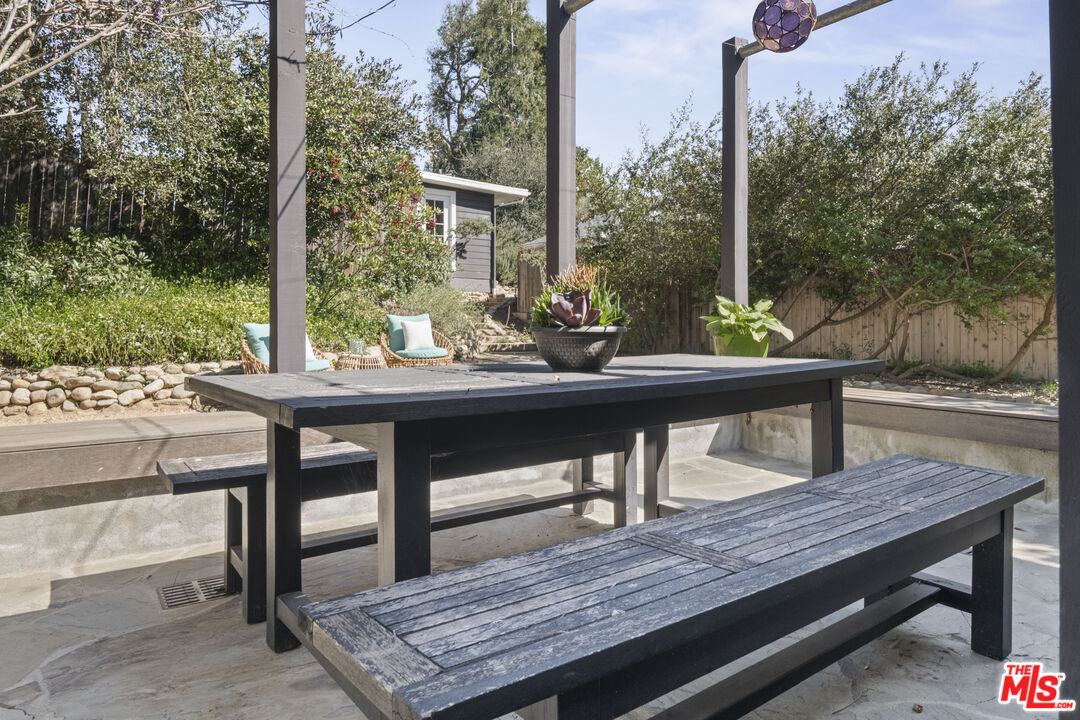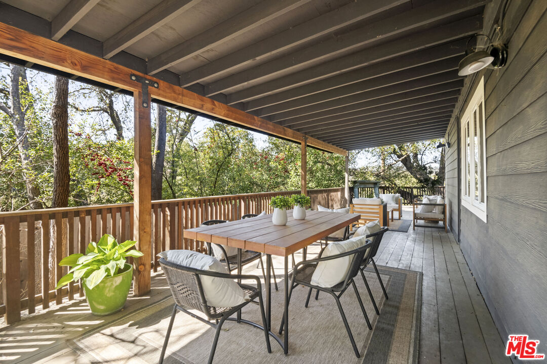 Find your peaceful place to abide in this four-bedroom, three-bath, contemporary cottage-style home with two separate guest suites. Situated on a usable third of an acre fenced yard, this home gives you room to entertain family and guests in a mini-compound designed for indoor-outdoor living. The huge kitchen anchors the living and dining rooms, with an open plan that allows guests to flow from the shaded view deck to the back patio. The primary suite is separate from the other three bedrooms, allowing privacy. Having so many bedrooms provides options for a great home office. The main house bonus basement room could be a home theater, a playroom, or an art studio. Your guests will enjoy their stay in either the separate studio guest house with its own view patio or the guest suite attached to the garage. Flat play areas are edged by grapefruit, lemon, lime, plum, and pomegranate trees. Plenty of parking in the garage and driveway. Close to Topanga State Park trails. Come up to the canyon!
