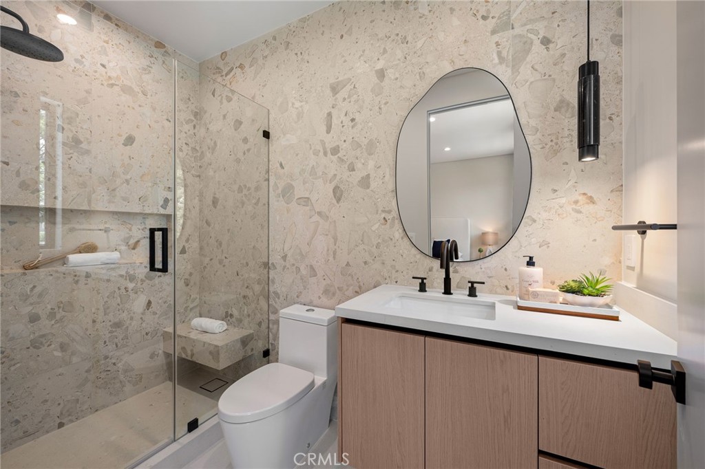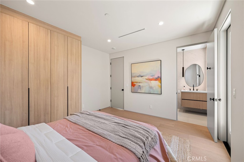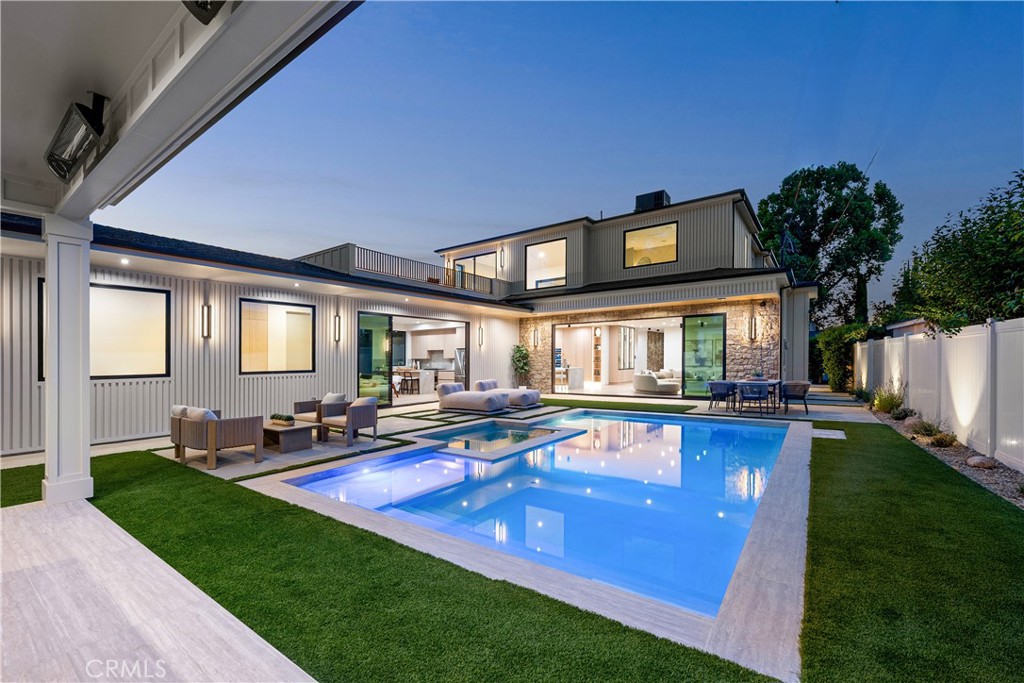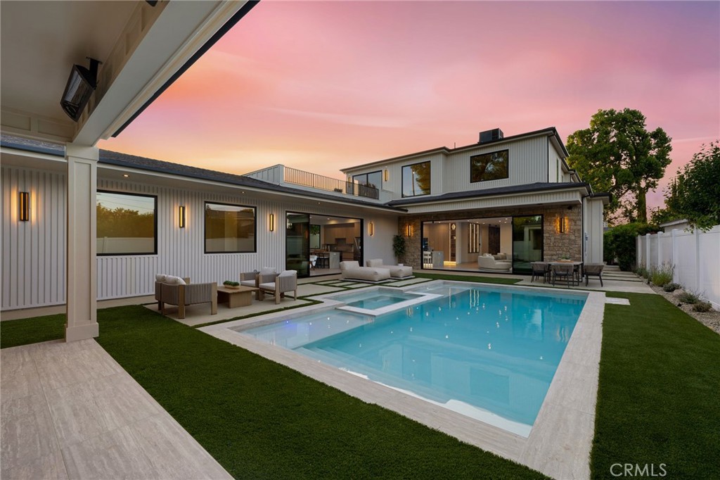 Experience an extraordinary newly constructed estate that redefines modern elegance in the heart of Encino. Completed in 2025 by one of the area’s most acclaimed builders, this architectural modern farmhouse is a sanctuary of artistry, design, and comfort. From the moment you arrive, the gated entrance and striking curb appeal set the tone for what lies beyond. Inside, soaring ceilings, a dramatic stone feature wall, and wide-plank European oak floors create a seamless blend of grandeur and warmth. Venetian plaster finishes, designer lighting, and custom millwork highlight the impeccable craftsmanship throughout. The gourmet kitchen is nothing short of breathtaking, showcasing imported porcelain countertops, an oversized island with smart storage, professional-grade appliances, and a wine & beverage cooler. The dining room dazzles with a built-in glass display cabinet with sleek black framing and soft backlighting, a gallery-like feature perfect for luxury dining, the expansive family room centers around a statement fireplace, evoking the serenity of a Tulum resort while capturing the sophistication and relaxed elegance of modern California living. The private backyard five-star retreat includes: sparkling pool & spa, outdoor kitchen with BBQ, bar seating, and a covered patio with heaters, perfect for year-round entertaining. A 2-bedroom ADU offers complete independent living with its own kitchen, bathroom, and living room. With both a private side entrance and sliding doors to the backyard, ideal as a guest house, office, or pool cabana. The main level also features a cinema room designed for the ultimate movie night experience, ensuite guest bedroom, mudroom & a stylish powder room. Ascend the floating staircase, accented by an impressive indoor garden seamlessly blended into the floor design & illuminated with lighting, leading to 4 spacious ensuite beds upstair, including a luxurious primary retreat with a rooftop-style balcony, fireplace, oversized walk-in clos