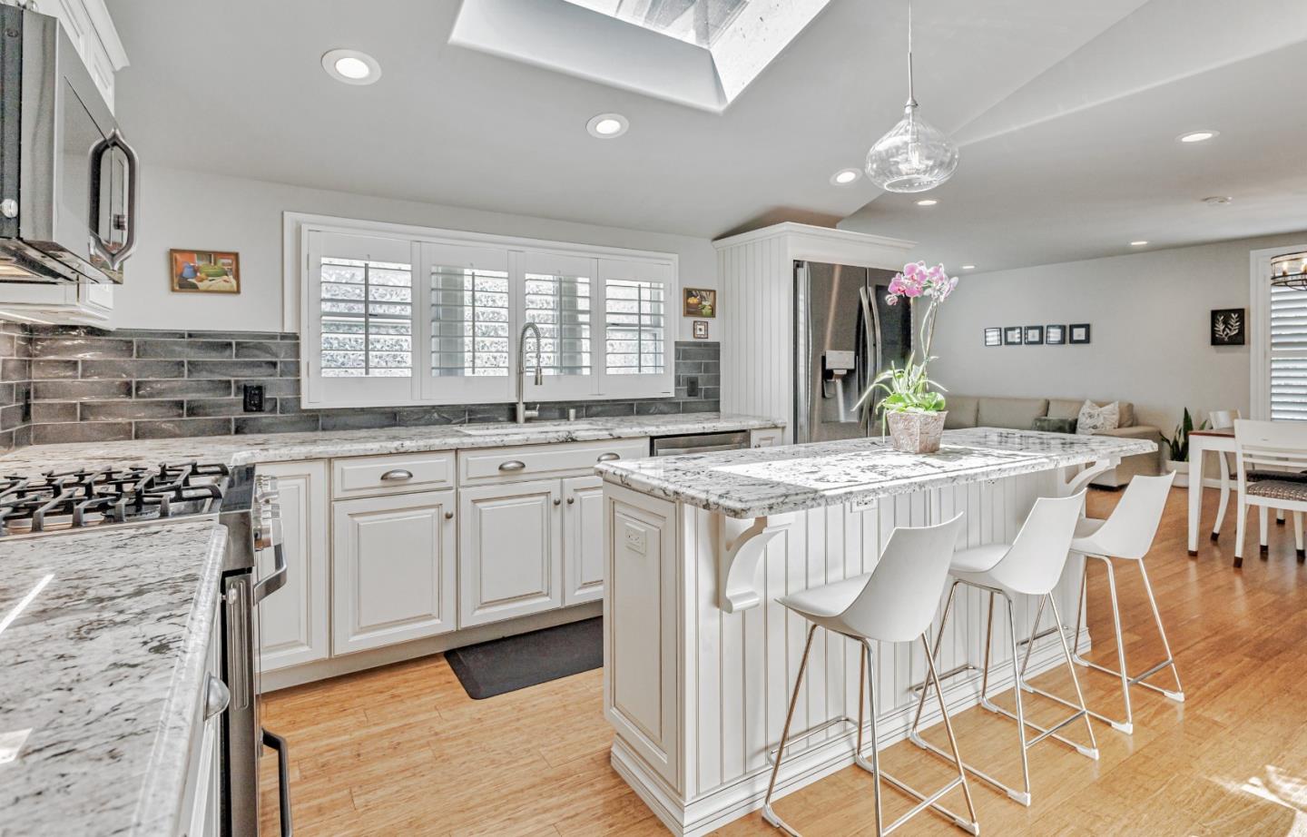 Welcome to an extraordinary opportunity in the coveted enclave of Sherwood Forest. This beautifully updated 3-bedroom 2-bathroom featuring a bonus room property spans 3107 square feet of bright, open-concept living space. From the moment you enter, you will be greeted by clean architectural lines, soaring vaulted ceilings with exposed beams, and seamless indoor-outdoor flow. The spacious living room centers around a custom fireplace and built-in media setup, while multiple dining areas and expansive entertaining spaces offer incredible versatility. The thoughtfully designed kitchen features sleek granite countertops, abundant cabinetry, and matching stainless steel appliances less than two years old, ideal for both casual meals and elevated gatherings. A dramatic bonus room with cathedral ceilings and new tile flooring offers an expansive canvas for a home office, gym, or creative studio. Recent updates elevate this home’s comfort and style, including new luxury vinyl flooring throughout, all new moldings, fresh paint, level 5 skim coat walls, and all new plugs, switches, and covers. The newly remodeled primary bathroom boasts modern finishes, a dual vanity, and an oversized glass shower. The spacious primary suite also includes double closets for ample storage. Additional features include LED recessed lighting throughout, copper plumbing, a newer roof and AC system, smart thermostat, and new sink fixtures. The dedicated laundry room is outfitted with new cabinets, a deep utility sink, and custom shelving. A large linen closet with a stylish barn door adds both convenience and charm. Outside, enjoy professionally landscaped front yard curb appeal, new concrete fencing with metal motorized gates for privacy, a new sliding glass door, and a new rear entry door from the den. This exceptional home blends privacy, design, and functionality in one of the Valley's most desirable neighborhoods. A rare offering that delivers style, upgrades, and move-in ready comfort.