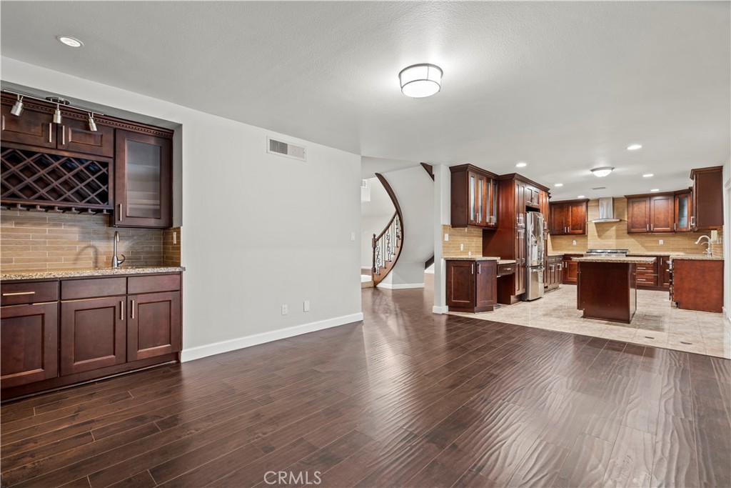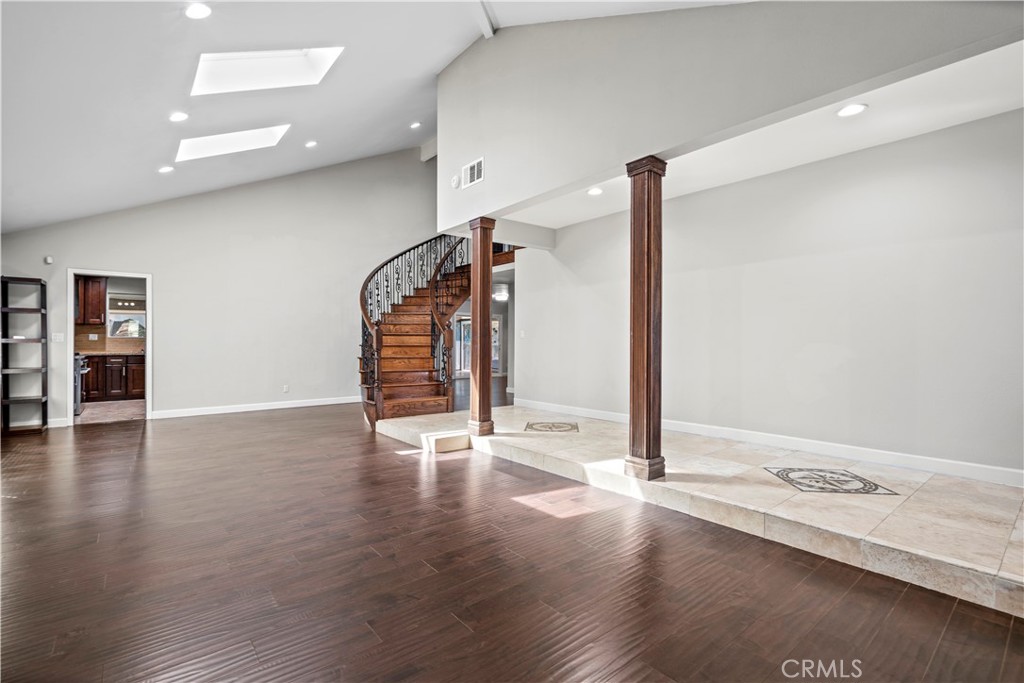 Welcome to the Prestigious Sherwood Forest Neighborhood of Northridge! This spacious and well-maintained 2-story pool home offers the perfect blend of elegance, comfort, and functionality, featuring 4 bedrooms plus a den and 3 bathrooms, offering flexible living space ideal for families or entertainers. Step through the front door into a grand living room and formal dining area with vaulted ceilings, skylights, and a beautiful curved staircase. The open-concept kitchen includes a granite island and an adjacent dining area, seamlessly connecting to the cozy family room with a romantic fireplace and wet bar—perfect for gatherings and relaxation. A bedroom and full bath downstairs provide an ideal setup for guests, in-laws, or a private home office. Upstairs, the expansive master suite features another skylight, a walk-in closet, and a private en-suite bathroom. Direct access to a 2-car garage via the downstairs laundry room, enclosed sunroom patio. A lush backyard oasis with an in-ground pool and spa, a large lawn, and tropical fruit trees—perfect for summer parties and outdoor living Less than a mile from CSUN, all major retailers, a supermarket, Costco, Fashion Mall in Northridge, and dining are nearby. This home combines tranquil suburban living with urban convenience.