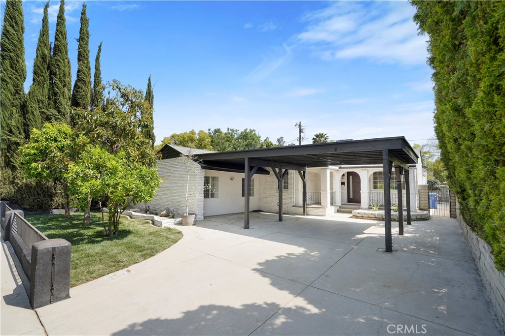 Turnkey, Extensively Remodeled Gem in Prime Tarzana! Step into this beautifully remodeled home where no detail has been overlooked. Featuring an open-concept floorplan, this residence boasts a stunning chef’s kitchen complete with quartz countertops, two-tone cabinetry, an expansive center island, stainless steel refrigerator, dishwasher, and sink, plus a brand-new gas oven and stove. Brand-new laminate flooring flows throughout, complemented by extensive recessed lighting and dual-pane windows that bathe the home in natural light. The spacious step-down family room offers a cozy retreat with a dramatic floor-to-ceiling rock fireplace—perfect for relaxing or entertaining. The primary suite is a private oasis, featuring a large walk-in closet and a luxurious en-suite bathroom with dual sinks and designer finishes. The hall bathroom is equally impressive, featuring a lighted mirror, stylish tub/shower combo, and two separate alcoves. Enjoy upgraded electrical, copper plumbing, a separate utility room, and beautiful touches like shiplap accents in the formal dining area and primary bedroom. Outside, the newly landscaped backyard includes lush green grass with room for kids to play, a storage shed, and mature fruit trees in the front. An oversized driveway provides ample parking, and the stylish front door adds a warm welcome to this private, move-in-ready home. With plenty of cabinet and counter space, updated systems, and thoughtful design throughout—this is Tarzana living at its finest!