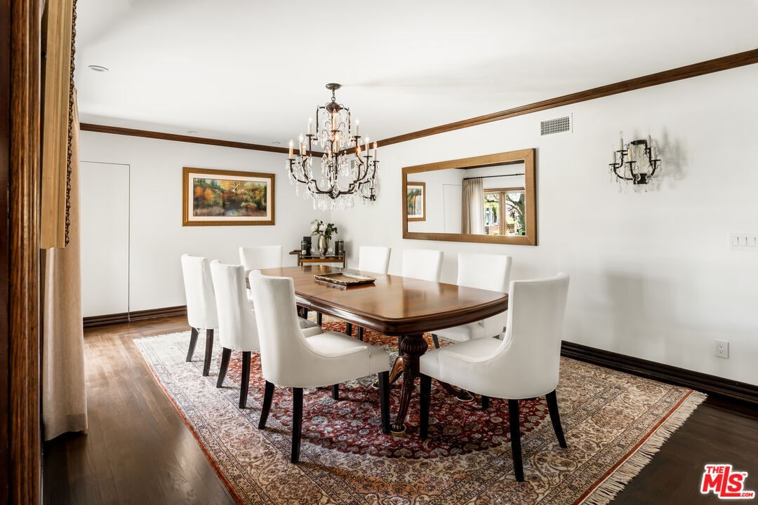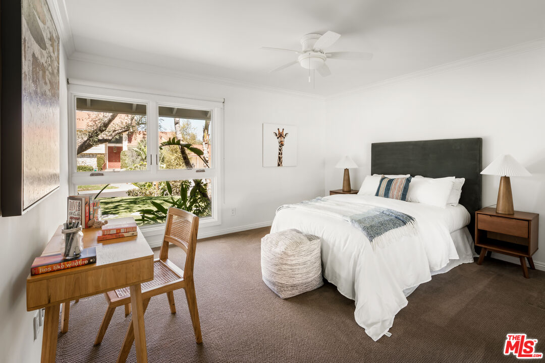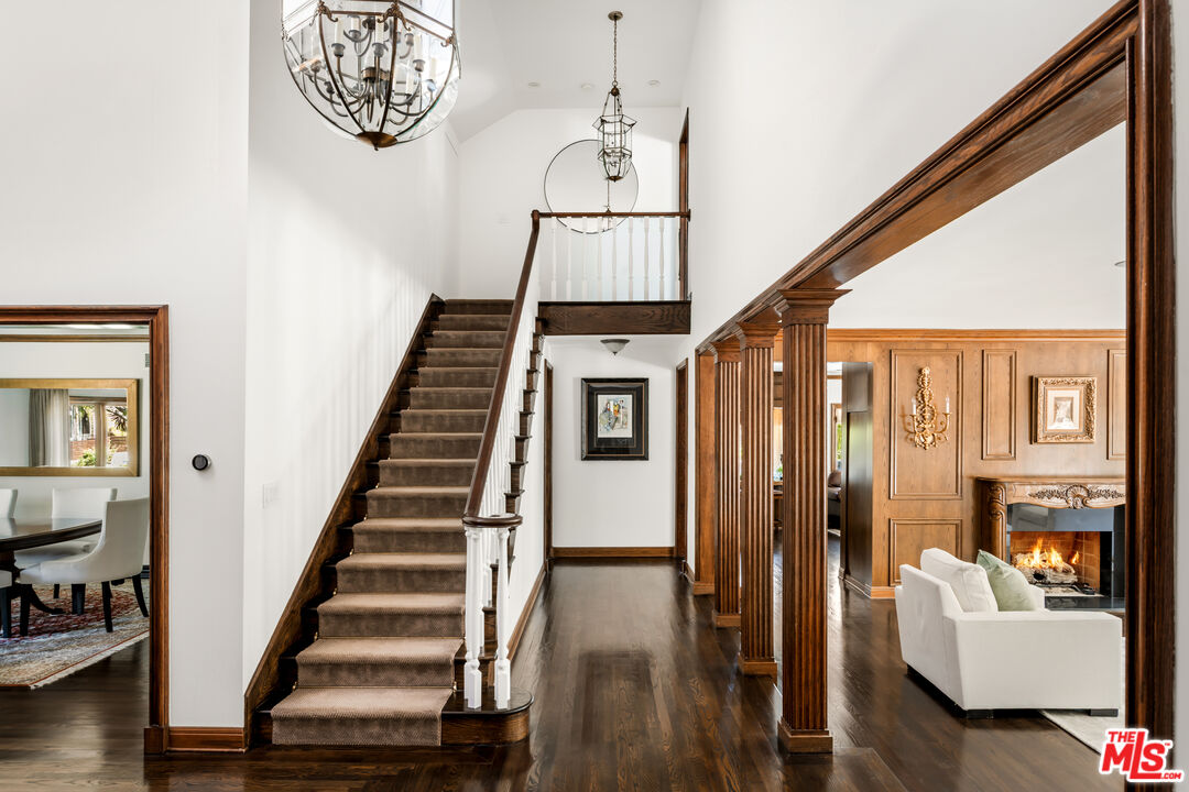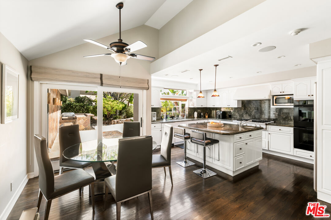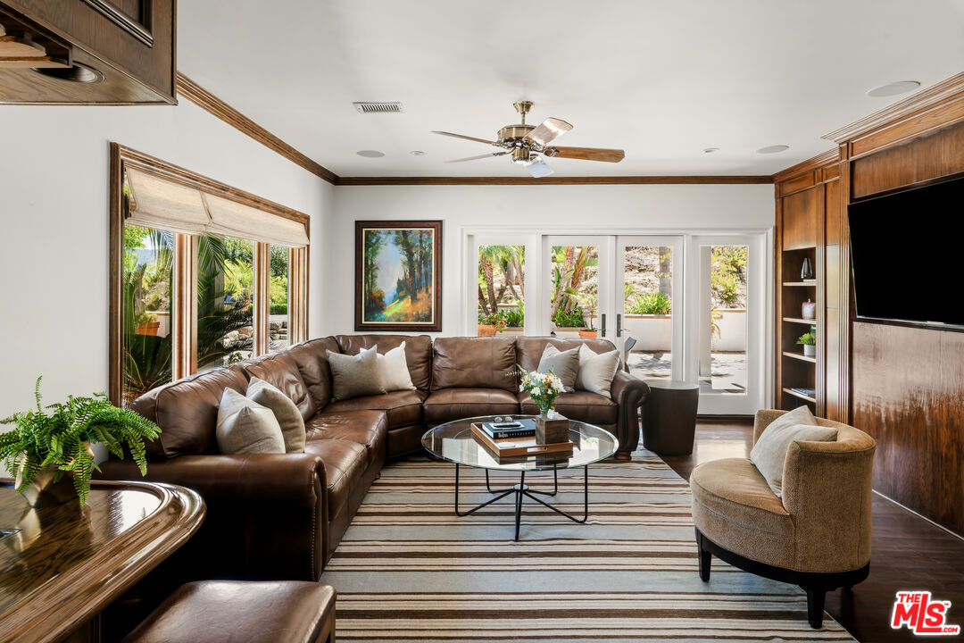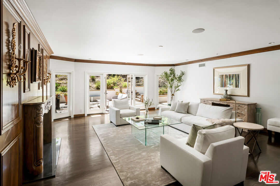 Where sleek Mid-Century design meets modern elegance, this turnkey Tarzana residence rests on a generous 17,000 SF lot within one of the neighborhood's most coveted enclaves. Set on a rare, flat cul-de-sac, the home offers a secluded sanctuary surrounded by lush landscaping and exceptional privacy. Spanning 4,424 SF, the two-level residence features 5 bedrooms, including a main-level primary suite and an upper-level primary retreat, along with an office, gym, and 5 bathrooms all thoughtfully designed for both comfort and style. The main level welcomes you with soaring ceilings and spacious living areas, including two additional bedrooms, a formal living room, dining room with a dedicated pantry for china and silver, family room with built-in bar, gourmet kitchen with Viking and Sub-Zero appliances, and a guest or staff suite. French doors open to a private backyard oasis complete with a heated pool and spa, built-in BBQ, and multiple dining and lounging areas. Upstairs, the upper-level primary retreat occupies the entire floor, featuring a charming fireplace, balcony with resort-like views of the grounds and mountains, and a spa-inspired ensuite with a soaking tub, steam shower, walk-in closet, and versatile spaces for an office, media room, gym, and more. Combining iconic Mid-Century design, modern finishes, and unparalleled indoor-outdoor living, this residence offers an exclusive opportunity to enjoy timeless elegance in one of the Valley's most sought-after neighborhoods.