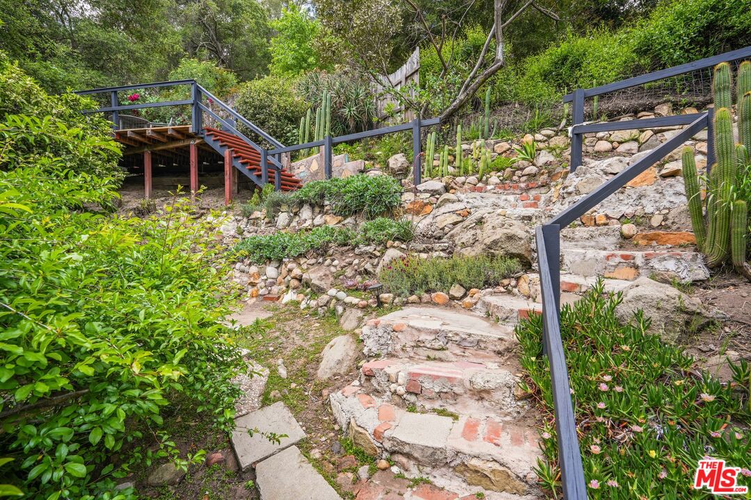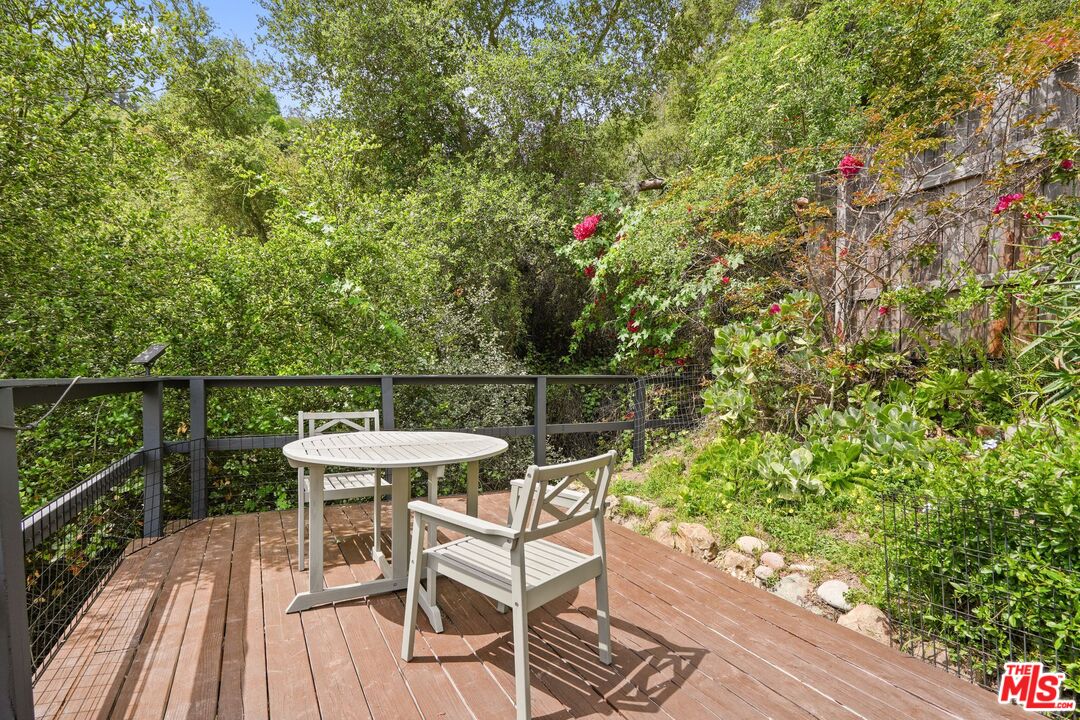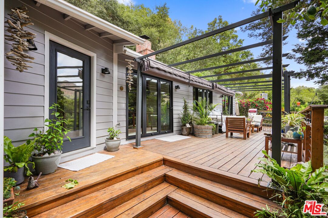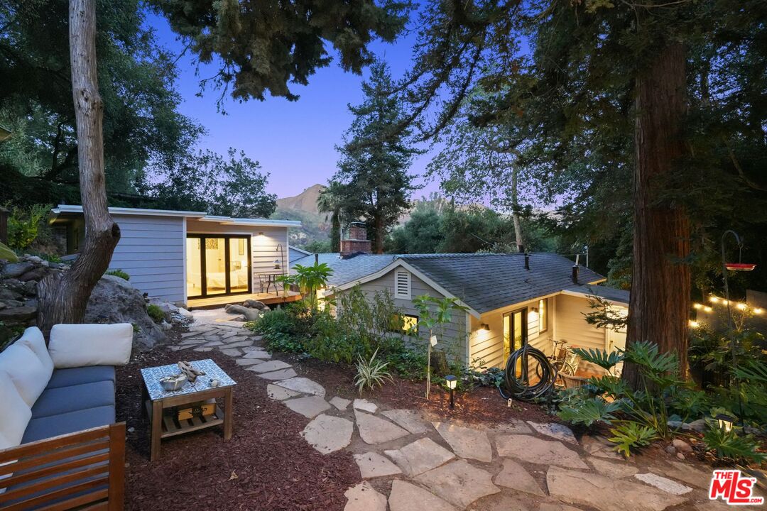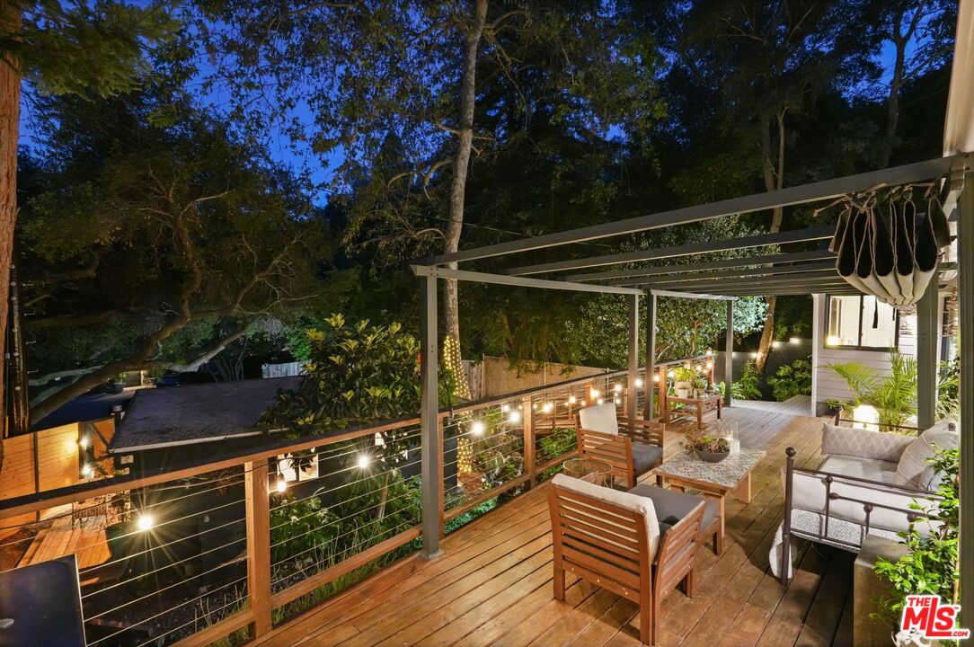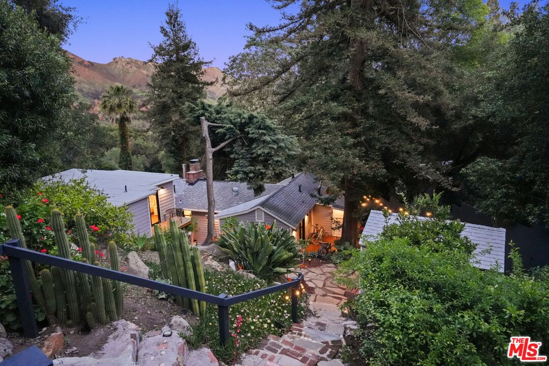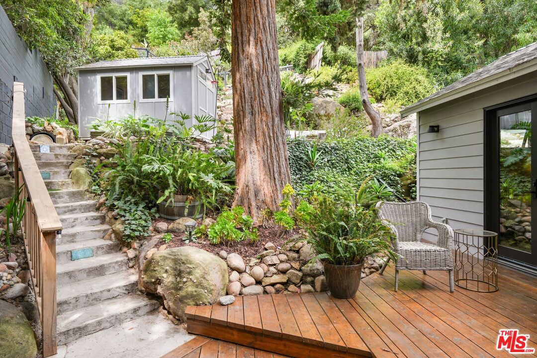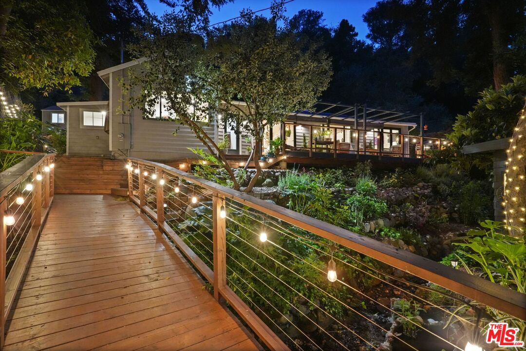 Into the Woods. Behind gates lies a captivating view home and guest house, nestled in a forest dell, in a serene and picturesque setting next to a tiny creek. Under towering Redwoods, in breezy Lower Fernwood, find tranquility amid modern living. Completely updated, with luxury finishes throughout, this 1940s woodland home has been stylishly remodeled to meet the needs of both a modern life, and the soul soothing comforts of a timeless home in the mountains. Completely updated, with luxury finishes throughout, this 1940s woodland home has been stylishly remodeled to meet the needs of both a modern life, and the soul soothing comforts of a timeless home in the mountains. Step through the foyer into an open, large airy, kitchen with a cheery fireplace, and a glass accordion wall open to the spacious creekside deck. A wide island faces the view, and sleek appliances, including a wine refrigerator, let the chef in you come out to play. Sink into the cozy tv nook nearby, with a comforting wood stove to keep things warm. A loft styled living room sits beyond, with another wall of glass, gazing out past the deck to stately Redwoods, and the mountain peaks beyond. On the main level, a library or third bedroom sits in dappled sunlight. An elegantly remodeled bath sits near a bedroom, with glass doors out to its own private deck. Up the open staircase of the lofty living room, a spacious primary suite with 2 walk in closets and views of distant hills, sits on it's own level. The bathroom matches the beauty of its surroundings. Step out of the glass doors onto another private deck with views of the mountains, the gardens, and the fruit trees. A path leads to a studio, perfect as creative space, or a great workshop. Old stone steps meander past fragrantly blooming citrus trees, to a crows nest of an upper deck. Here you can watch the sun rise and set or just gaze upon the lush, private outdoor grounds. A spacious guest house, with its own yard and deck, a bathroom, and kitchenette, welcomes your family and friends. The wide main deck hosts gatherings or solitude. Whether you're sipping your morning coffee on, or unwinding in the evening, the natural surroundings provide a magical backdrop for any occasion. Situated in the tranquil community of Topanga, this home is a true sanctuary, offering a perfect blend of privacy and convenience. The coast is just a short drive away. Lower Topanga state park is just steps away. The charming shops, cafes, and boutiques of Topanga are close by. Here in the forest, your fairy tale begins.
