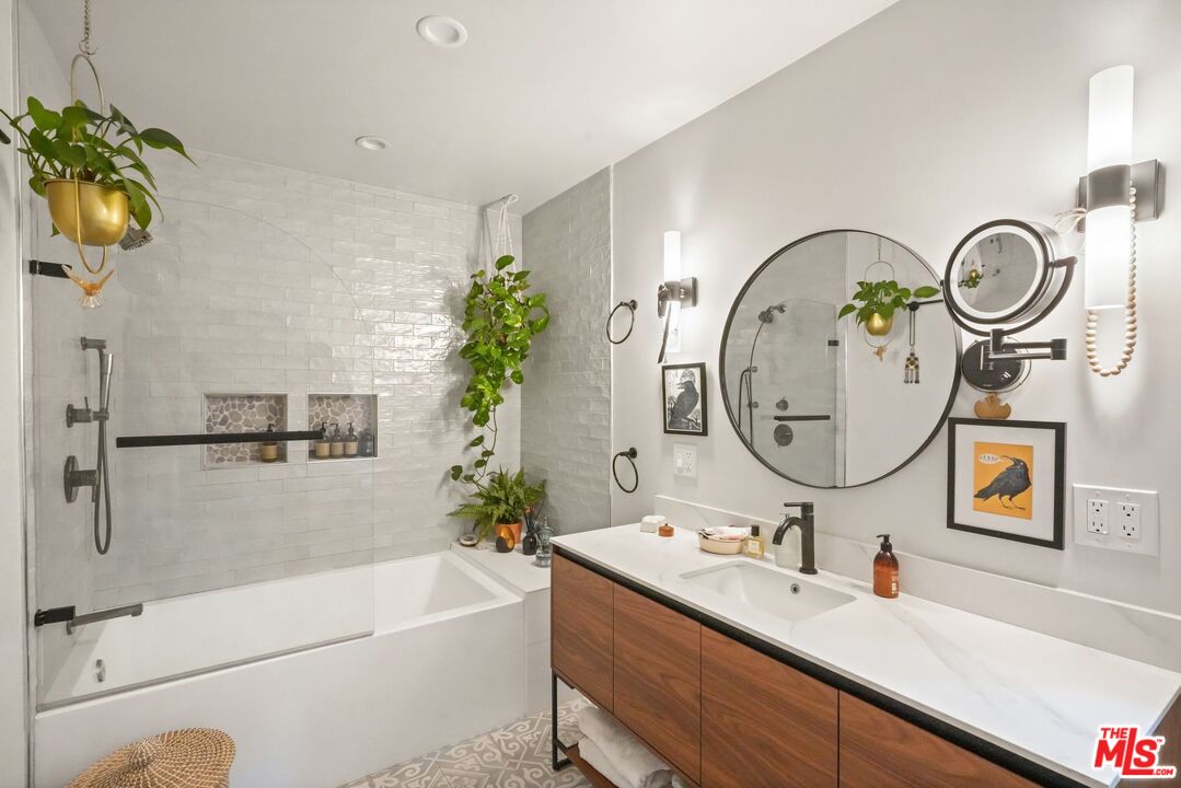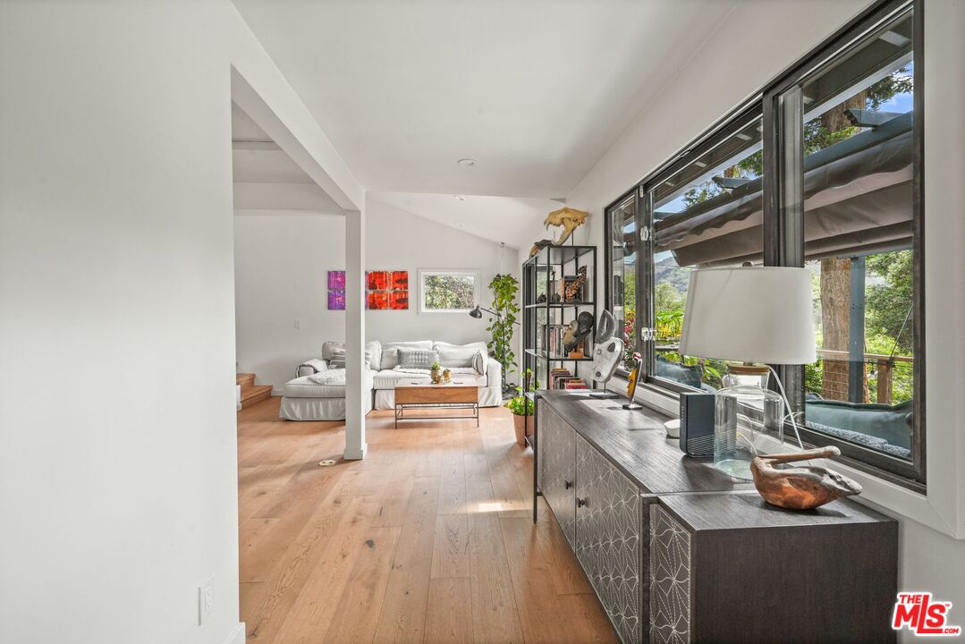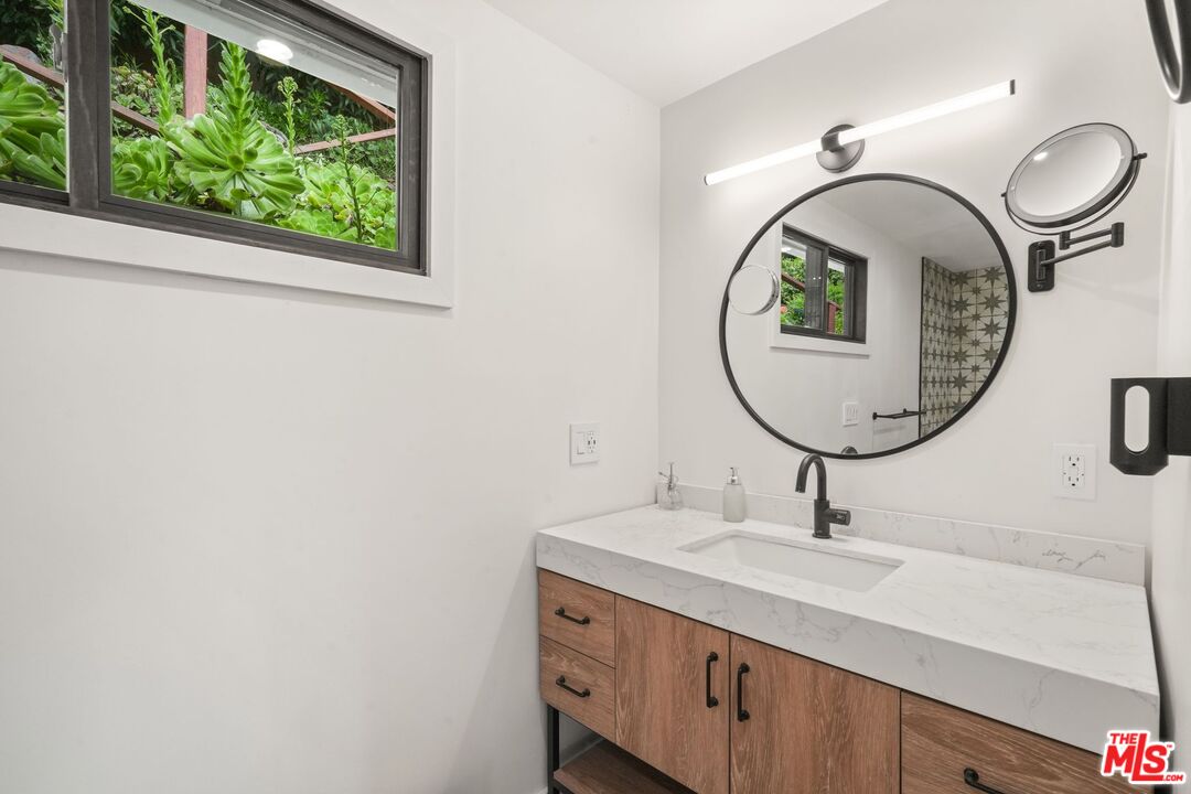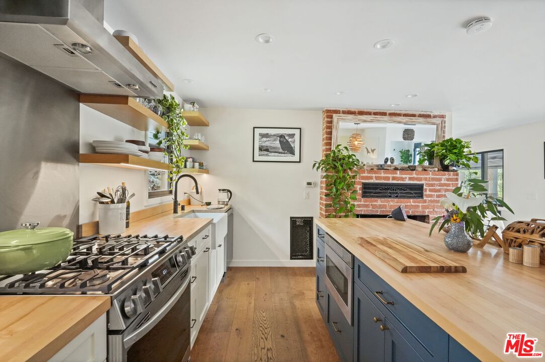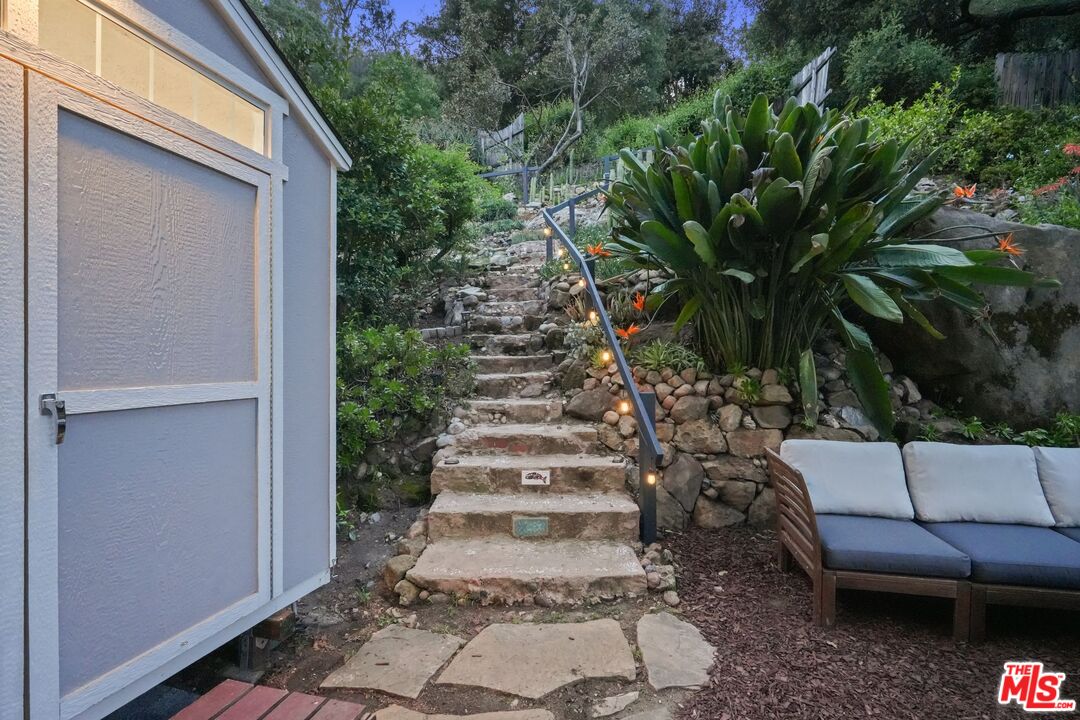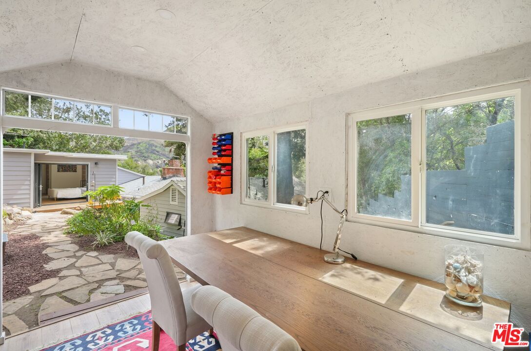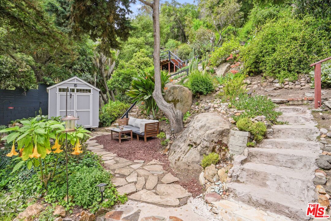 Into the Woods. Behind gates lies a captivating view home and guest house, nestled in a forest dell, in a serene and picturesque setting next to a tiny creek. Under towering Redwoods, in breezy Lower Fernwood, find tranquility amid modern living. Completely updated, with luxury finishes throughout, this 1940s woodland home has been stylishly remodeled to meet the needs of both a modern life, and the soul soothing comforts of a timeless home in the mountains. Completely updated, with luxury finishes throughout, this 1940s woodland home has been stylishly remodeled to meet the needs of both a modern life, and the soul soothing comforts of a timeless home in the mountains. Step through the foyer into an open, large airy, kitchen with a cheery fireplace, and a glass accordion wall open to the spacious creekside deck. A wide island faces the view, and sleek appliances, including a wine refrigerator, let the chef in you come out to play. Sink into the cozy tv nook nearby, with a comforting wood stove to keep things warm. A loft styled living room sits beyond, with another wall of glass, gazing out past the deck to stately Redwoods, and the mountain peaks beyond. On the main level, a library or third bedroom sits in dappled sunlight. An elegantly remodeled bath sits near a bedroom, with glass doors out to its own private deck. Up the open staircase of the lofty living room, a spacious primary suite with 2 walk in closets and views of distant hills, sits on it's own level. The bathroom matches the beauty of its surroundings. Step out of the glass doors onto another private deck with views of the mountains, the gardens, and the fruit trees. A path leads to a studio, perfect as creative space, or a great workshop. Old stone steps meander past fragrantly blooming citrus trees, to a crows nest of an upper deck. Here you can watch the sun rise and set or just gaze upon the lush, private outdoor grounds. A spacious guest house, with its own yard and deck, a bathroom, and kitchenette, welcomes your family and friends. The wide main deck hosts gatherings or solitude. Whether you're sipping your morning coffee on, or unwinding in the evening, the natural surroundings provide a magical backdrop for any occasion. Situated in the tranquil community of Topanga, this home is a true sanctuary, offering a perfect blend of privacy and convenience. The coast is just a short drive away. Lower Topanga state park is just steps away. The charming shops, cafes, and boutiques of Topanga are close by. Here in the forest, your fairy tale begins.