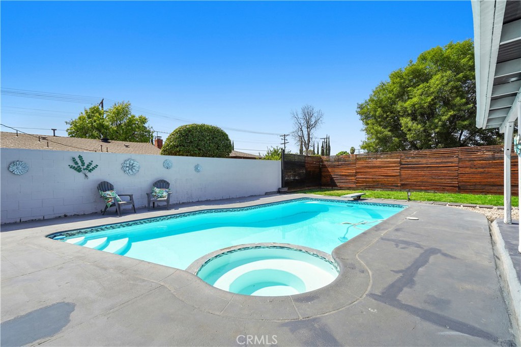 Welcome to 20854 Runnymede Street, a charming 4-bedroom, 2-bath home tucked away at the end of a quiet cul-de-sac in Winnetka. This beautifully updated residence offers 1,303 sq. ft. of living space on a generous 7,609 sq. ft. lot, combining modern upgrades with inviting indoor-outdoor living. Step inside to find brand-new flooring throughout and a spacious living room featuring a cozy gas fireplace. Double French doors open to the backyard, creating a seamless flow for entertaining. The kitchen is well-appointed with granite countertops, abundant cabinetry, and plenty of space to prepare and enjoy meals. The backyard is a true retreat, complete with a covered patio, heated pool, and spa, perfect for year-round relaxation. Decorative wood-paneled fencing surrounds the grassy area, providing warmth and character. Additional highlights include a detached garage converted into a versatile bonus room, a wide driveway with extra parking, RV access, and a brand-new roof for peace of mind. With its prime cul-de-sac location, thoughtful upgrades, and resort-style outdoor space, this property is ready to welcome you home.