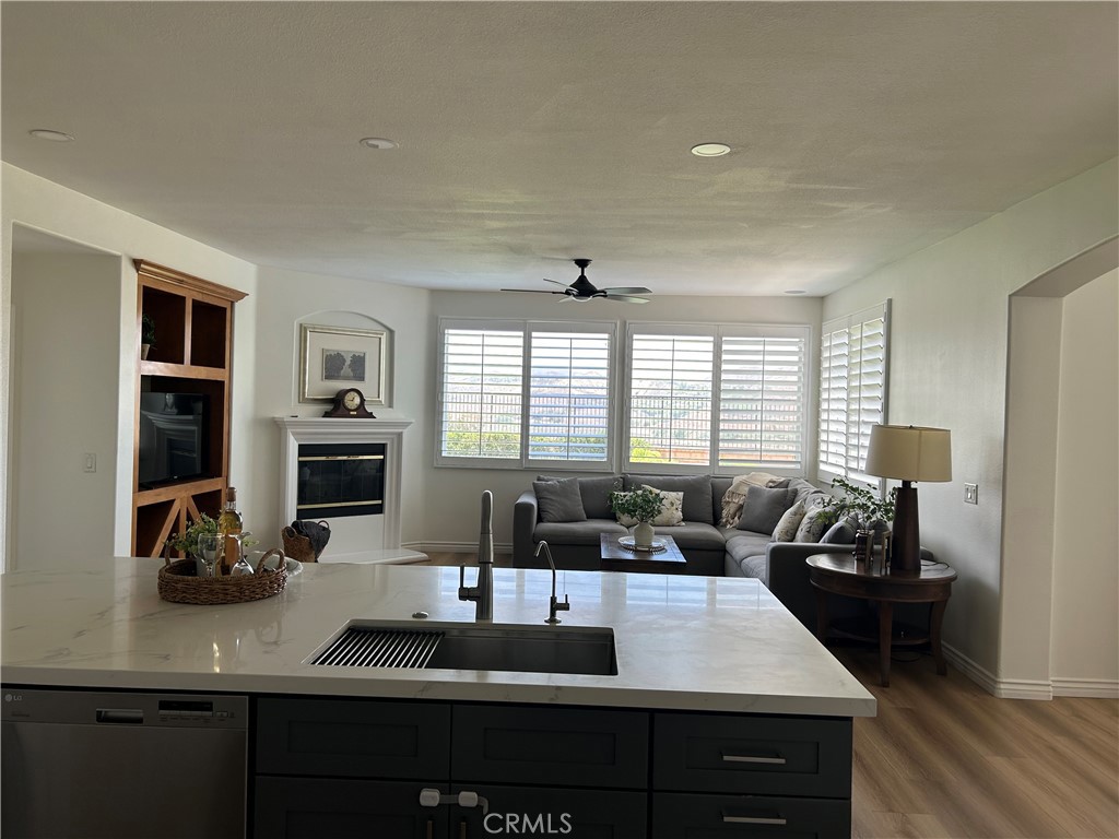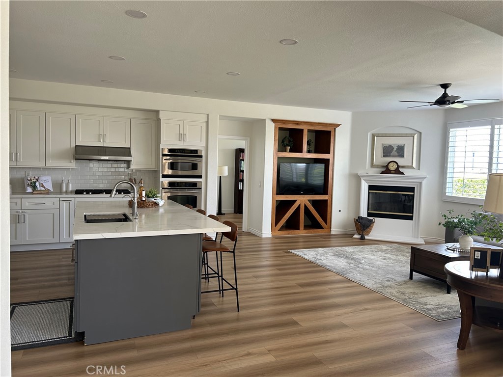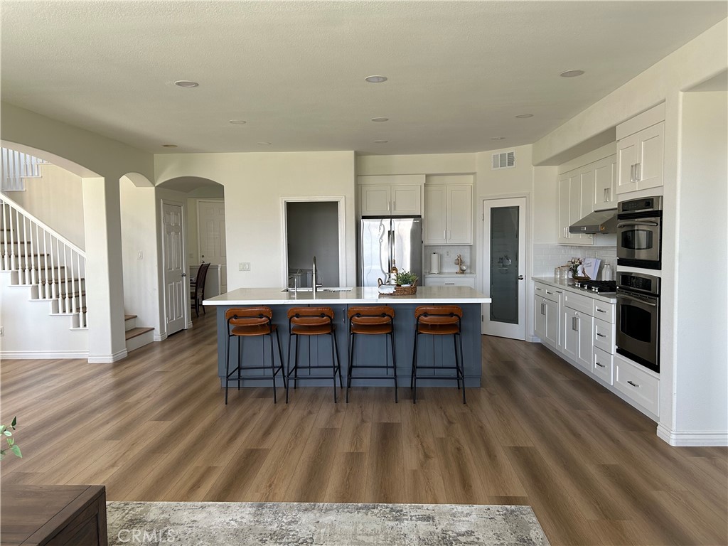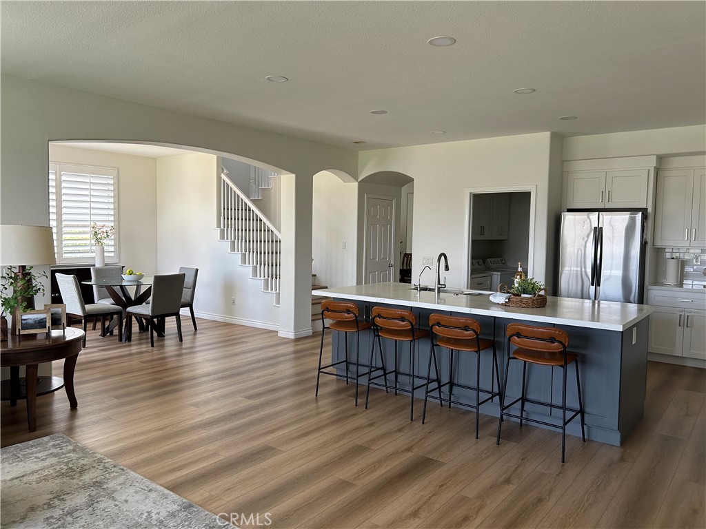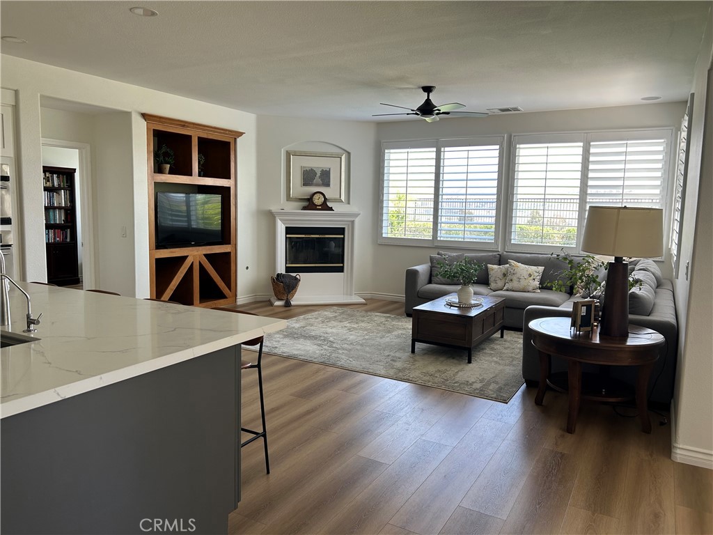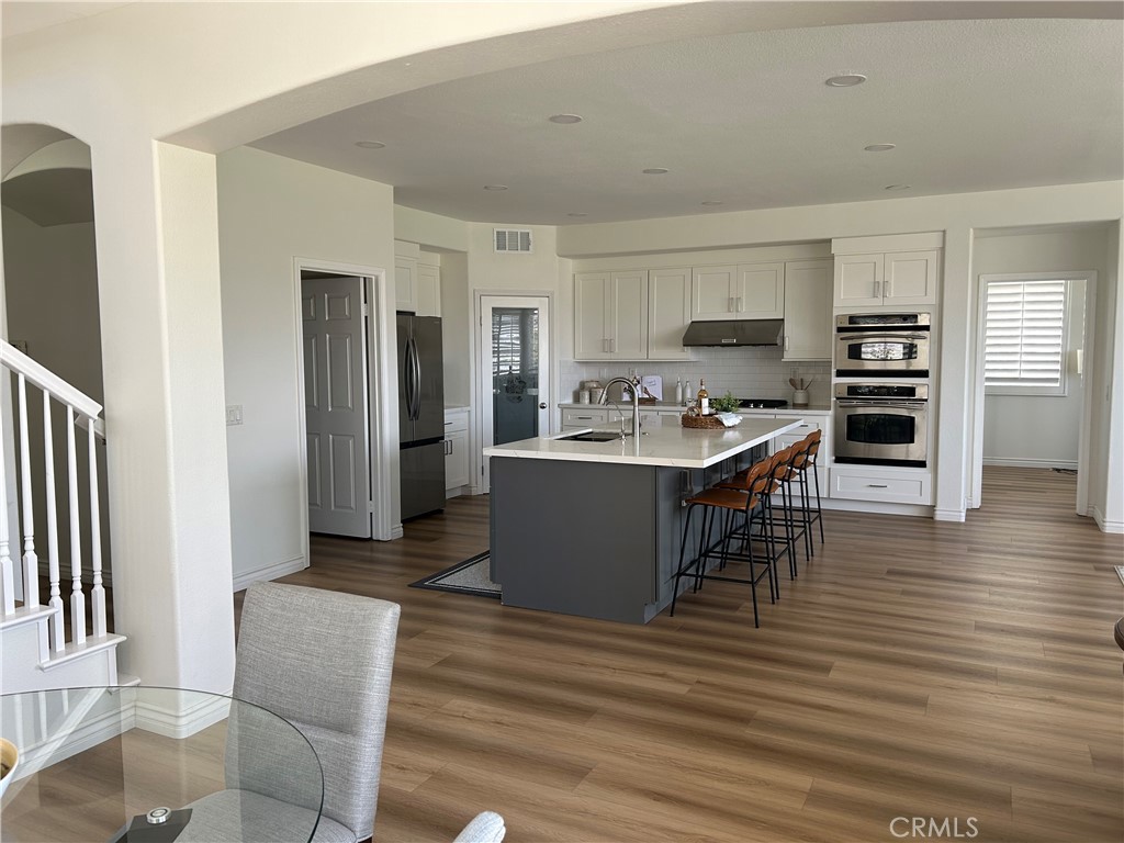 Welcome to your dream home! Nestled in a serene cul-de-sac comprised of just nine beautiful residences, this magnificent 4-bedroom plus primary retreat, 3.5-bathroom house offers an exceptional blend of comfort, luxury, and convenience with show stopping views throughout the home! This home is thoughtfully designed for modern living, featuring a full bedroom with an ensuite bathroom conveniently located on the lower level—ideal for long-term guests or a multigenerational family setup. Upstairs, the primary suite is a true sanctuary, boasting incredible views, a private retreat that could double as a yoga or workout space with its stunning floor-to-ceiling mirrored wall, and a recently renovated spa-like bathroom with a walk-in closet. The heart of the home is the recently renovated kitchen, a chef’s delight! It features a sprawling kitchen island, luxurious quartz countertops, updated cabinetry, and top-of-the-line stainless steel appliances. Enjoy preparing meals with ease using the double-oven and take advantage of the convenient walk-in pantry. The breakfast bar is perfect for casual dining, while recessed lighting creates an inviting atmosphere for entertaining friends and family. This home seamlessly blends form and function, boasting separate living and family rooms, along with a formal dining area that’s perfect for hosting dinner parties. The consistent tasteful laminate flooring throughout adds warmth and style, complemented by tile flooring in the bathrooms for easy maintenance. Every detail has been carefully considered, from the white shutters and mirrored wardrobes to the ceiling fans that enhance airflow and comfort. Abundant natural light fills each room, creating a welcoming and cheerful environment. Step outside to enjoy a perfectly manicured, serene yard and breathtaking views, or take a short stroll to the community’s impressive amenities. The peaceful lake with a pathway, two sparkling pools, a spa, Clubhouse, barbecue area, gym, and a variety of
