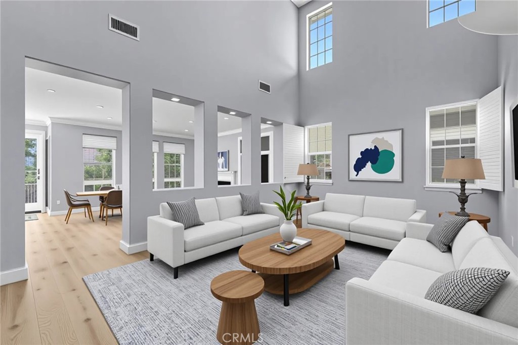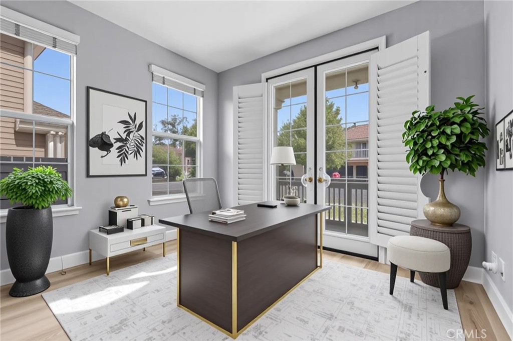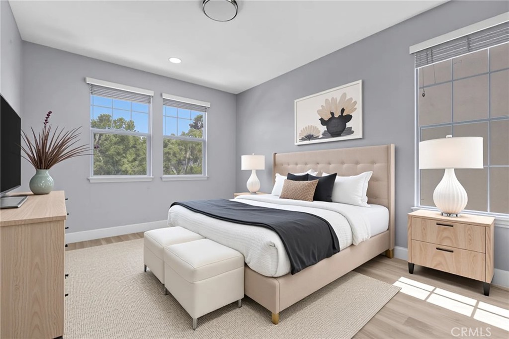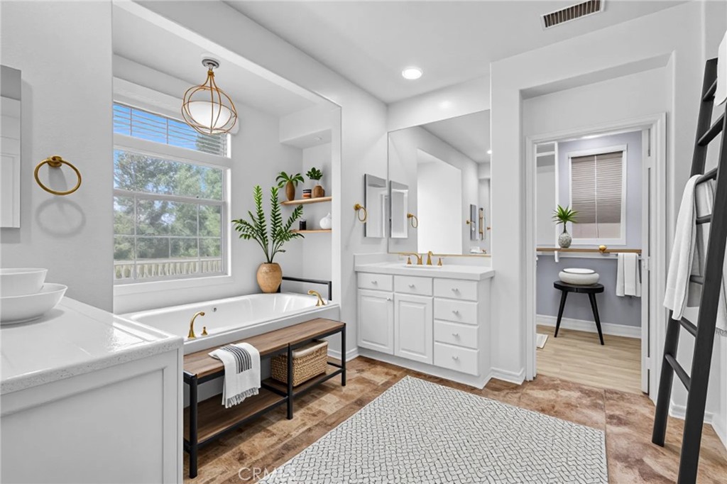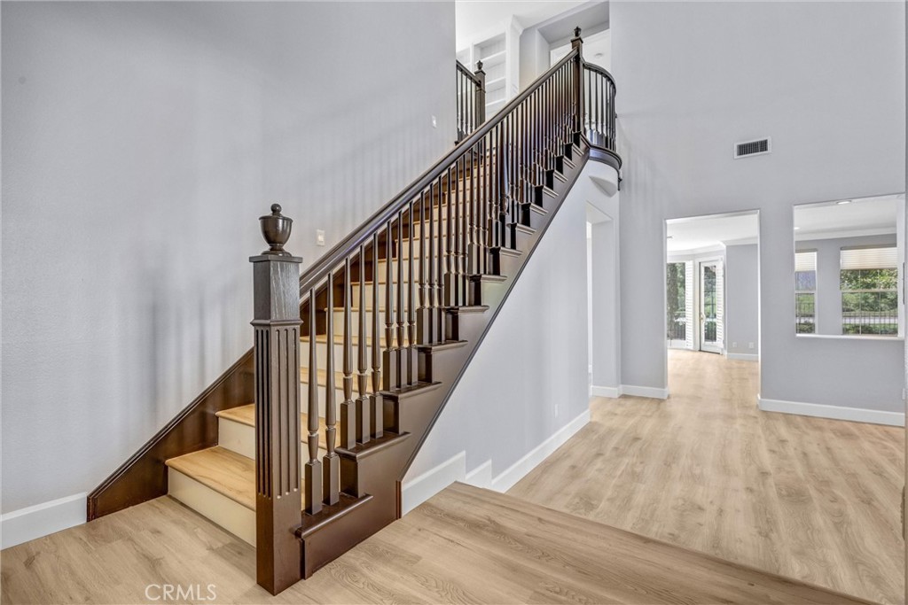 Nestled in the tranquil gated community of Bridgeport awaits your new home! Located in Valencia’s highly sought after lake community sits this three bedroom, plus one office (that could be converted to a bedroom quite easily), and three bathroom home with soaring ceilings. Positioned majestically along the lakeside, the back yard offers gorgeous views of the water and don’t be surprised if you see mother nature at work with ducks, geese, and their little ducklings. This home has meticulously been upgraded with modern new wide-plank flooring throughout the home and fresh paint. The primary bedroom includes an oversized en suite bath tub, dual vanities and a walk in shower. One of the bedrooms has a circular alcove that can be used as a reading nook, play room, or play castle for the little ones, with your imagination the options are endless. Step outside and indulge in the sun or breakfast al fresco in a private second floor balcony that leads from the primary bedroom. The home boasts General Electric appliances such as the refrigerator, oven, microwave and a Bosch dishwasher. Want more? You got it…you’ll find the three car garage with extra built in storage very useful and practical. You’ll fall in love with the proximity of parks, paseos, shopping options, eateries and award winning schools. Did I mention…NO MELLO ROOS. Dog lover? Enjoy the community and go for a stroll of what seems to look like a Hollywood movie-built set, just simply a beautiful backdrop to go on walks. The community also offers a club house and pool!