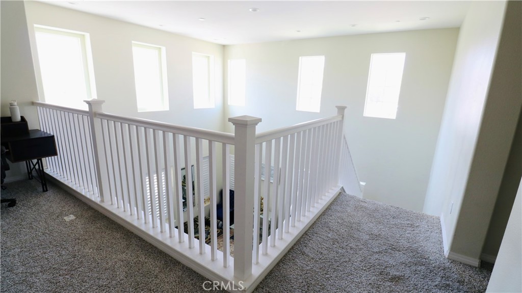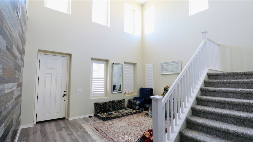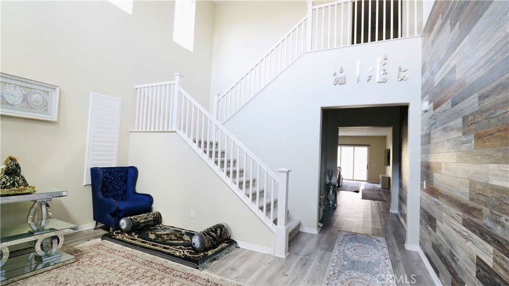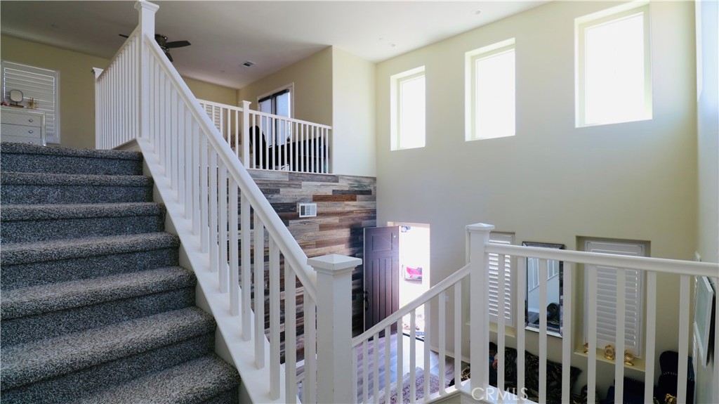 Welcome to this beautiful two-story, luxury living, contemporary home in the prestigious neighborhood of Santa Clarita! Conveniently located in a highly-coveted gated community in Five Knolls. This monumental residence instantly captivates dazzling landscaping, a cul-de-sac lot, a 2-car-garage, and a cozy front porch. Designed for both comfort and style, this 4 bedroom ,3.5 bathroom home greets you with soaring ceilings, chic gray wooden flooring, a plethora of natural sunlight, a classic open staircase, and a spacious living room with a lovely wooden accent wall. The large gourmet kitchen allows you to cook delectable meals with stainless-steel appliances, white cabinets, wall oven, built-in microwave, dishwasher, a center island, a chic dining area, and an adjoining family room. The primary bedroom comprises of a generous walk- in closet, plantation shutters, ceiling fan, and a spa-like en suite bathroom with a relaxing walk- in shower, tub, and dual sinks. The upper-level includes an enormous loft for games, secondary family room, or media room! A spacious laundry room is located on the second level, offering additional storage space. The fully enclosed backyard has been fully renovated adding natural grass and concrete. Golden Valley park offers a playground for kids and a dog park, making this the perfect home for families and pet lovers. Don't miss out on this wonderful home!
