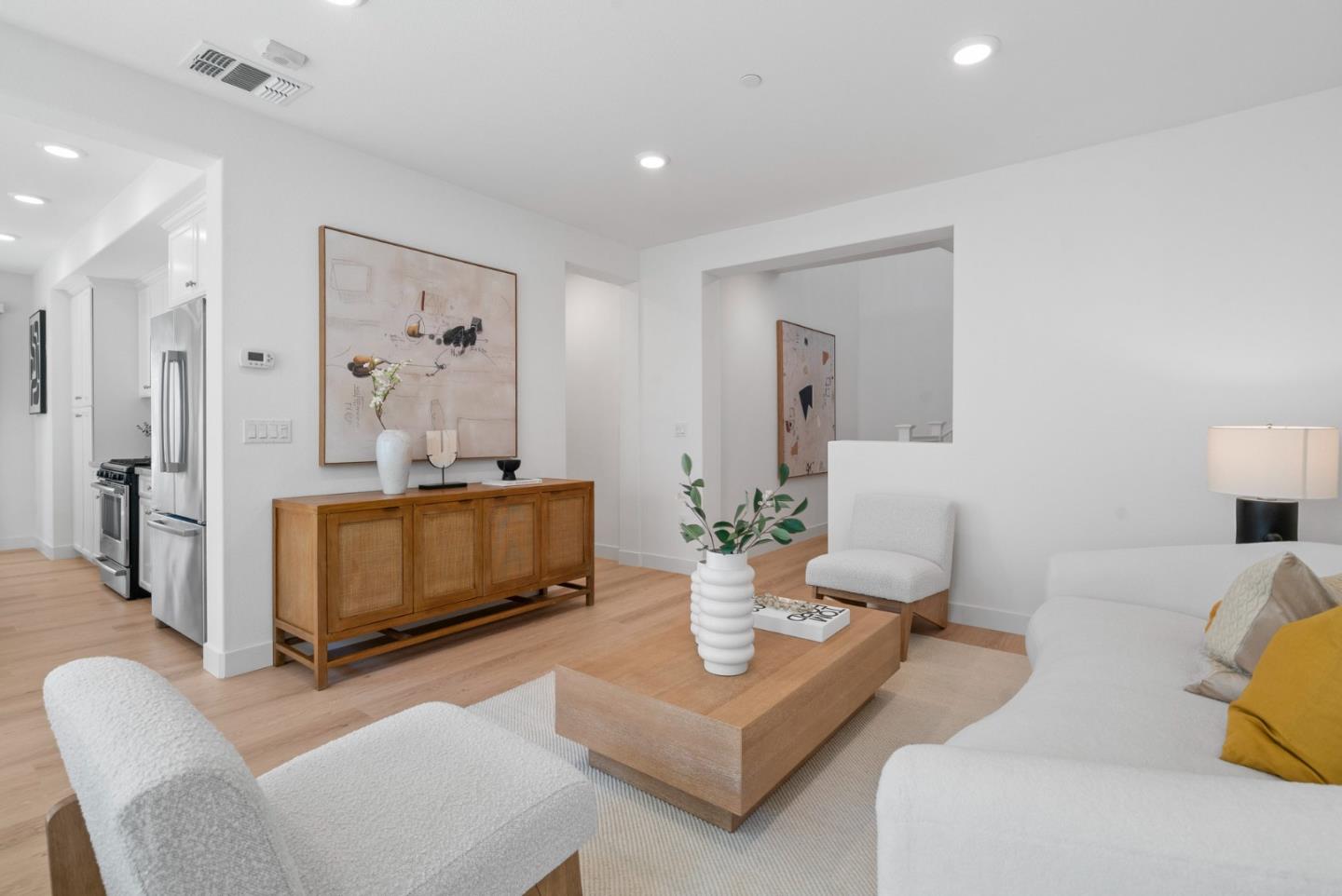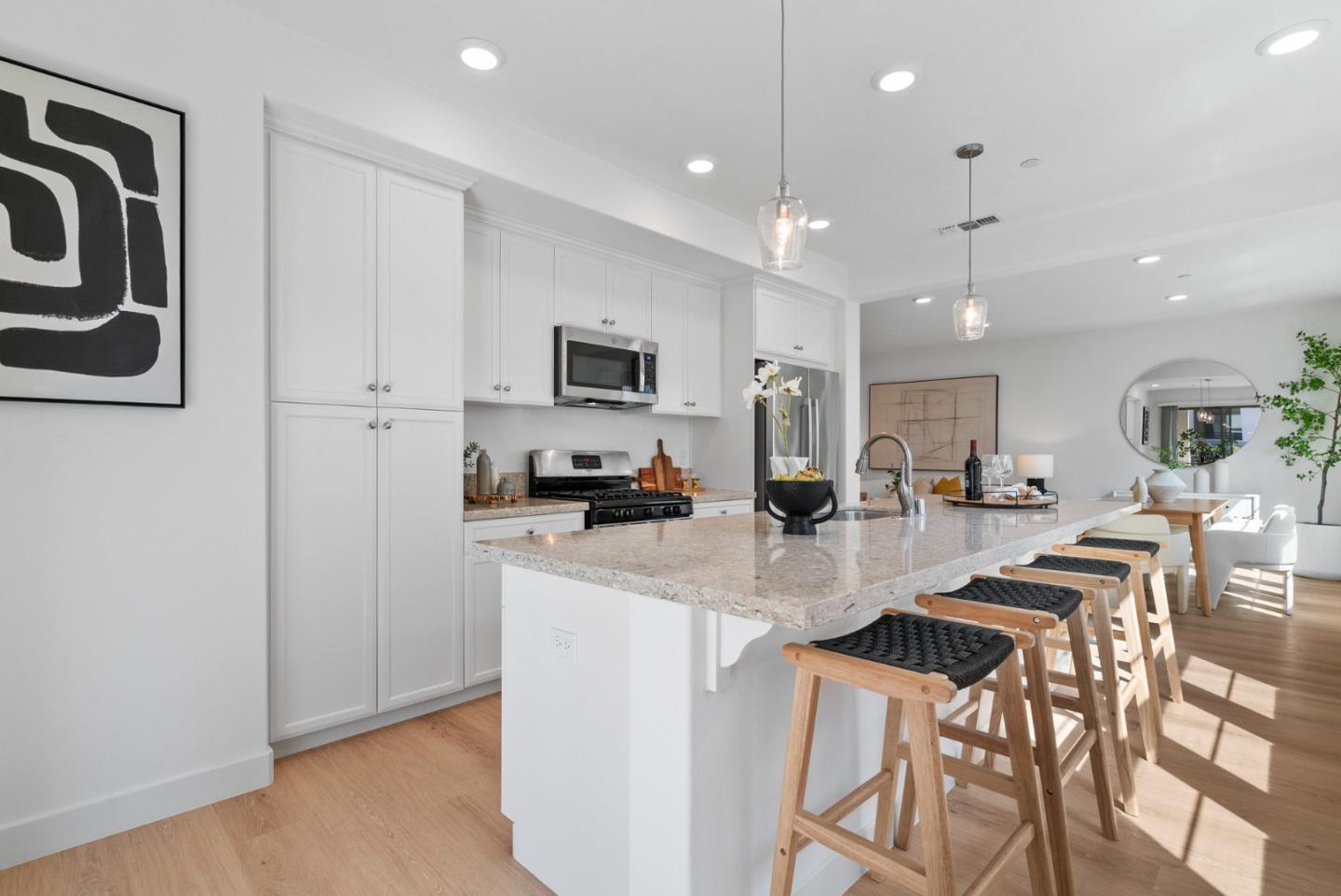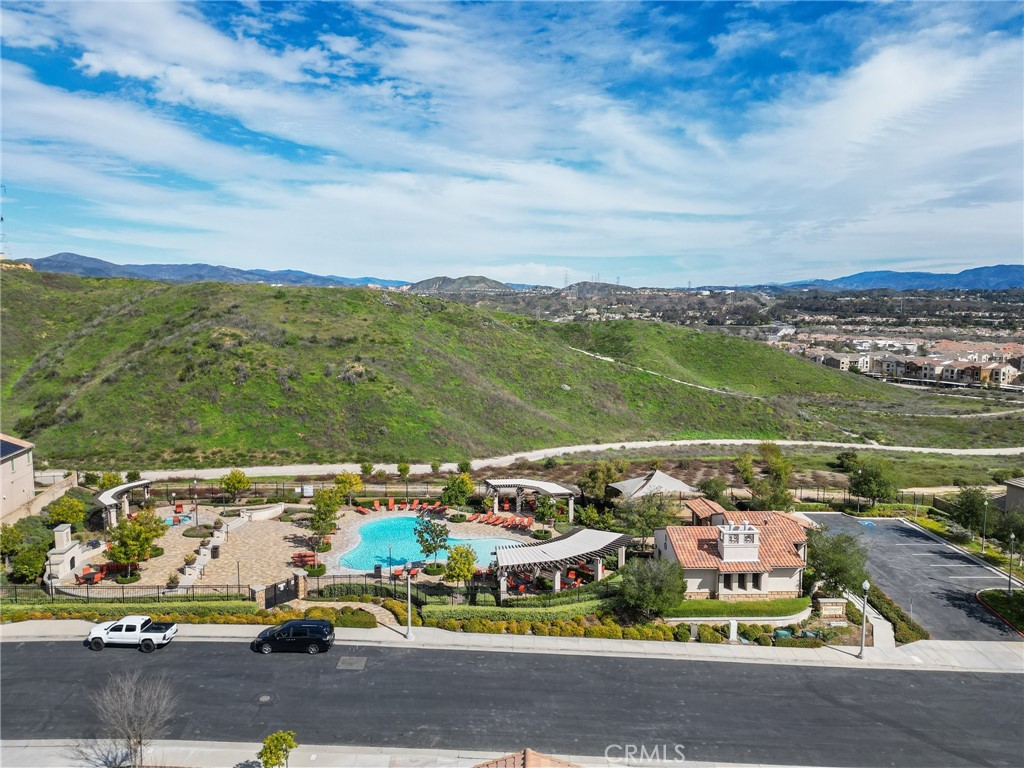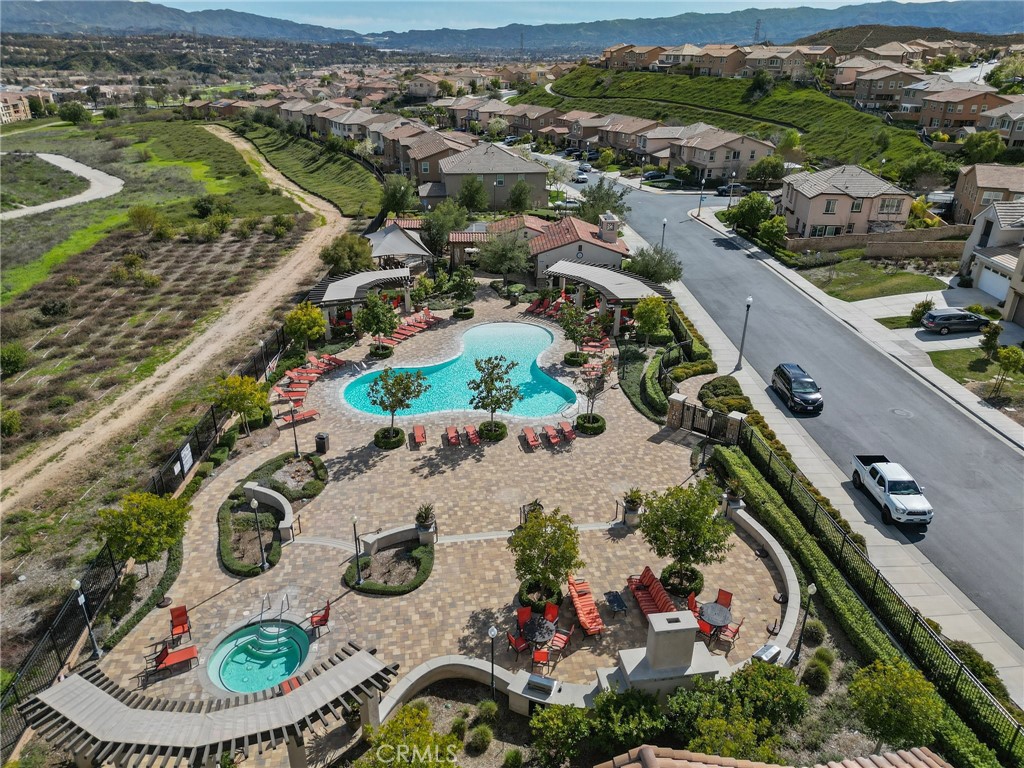 Welcome to luxury living behind the gates of West Hills, Valencia. Perched on a quiet street high above the valley in this exclusive gated community, this designer-curated home offers stunning wraparound views of mountain skylines and rolling hills. Lighted entry pillars greet you along a lush green landscape, with paver walkways that continue to the backyard, creating an elegant and inviting arrival every time you come home. This model-perfect home offers 4 spacious bedrooms, including a private downstairs Jr. Suite with its own full bath — ideal for guests or multi-gen living — 3.5 beautifully updated bathrooms, and a loft drenched in natural light that could easily convert to a 5th bedroom. Soaring 9-foot ceilings throughout add to the sense of openness and space, while a dramatic lofted staircase opens to the second floor. Designer upgrades include Restoration Hardware and Pottery Barn light fixtures, engineered wood floors, plantation shutters with window casings, gas fireplace, keyless entry, tankless water heater, dual-zone HVAC and solar. The kitchen boasts stainless appliances, oversized eat-in island, pantry, classic subway tile backsplash, and oversized glass designer pendants. The separate dining area features crown moulding and scenic views. The primary suite offers a luxurious retreat, featuring a remodeled bathroom with dual Pottery Barn vanities, a soaking tub, walk-in shower, and a spacious walk-in closet. An additional retreat area, perfect for a home office or gym, opens to a private balcony with expansive valley views. Secondary bedrooms are generously sized and share a dual vanity bathroom. There’s no shortage of storage: a walk-in linen closet, walk-in hall closet, upstairs laundry room with cabinetry, and built-ins throughout. Step into your private backyard retreat, where pristine turf, paver pathways, blooming jasmine, a fruiting lemon tree, and high brick privacy walls create a peaceful escape overlooking the valley. As night falls, bistro lights cast a warm glow while city lights twinkle across the distant hills — the perfect setting for entertaining or simply unwinding under the stars. The two-car garage is immaculate with tiered heavy duty overhead storage. All this, plus access to miles of walking trails, resort-style pools, parks, playgrounds, shopping, dining, and award-winning schools. Bring your family, your furry friends, and come make unforgettable memories! Welcome home.