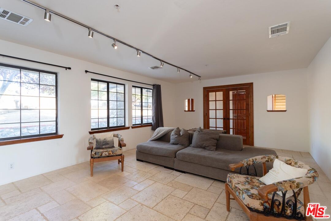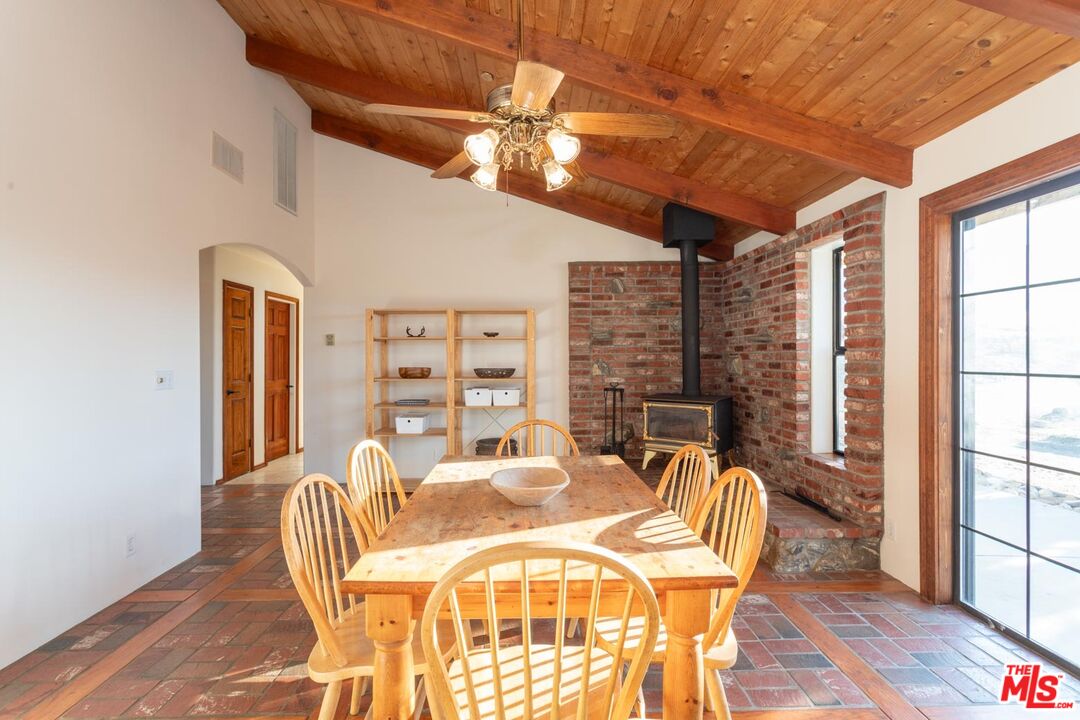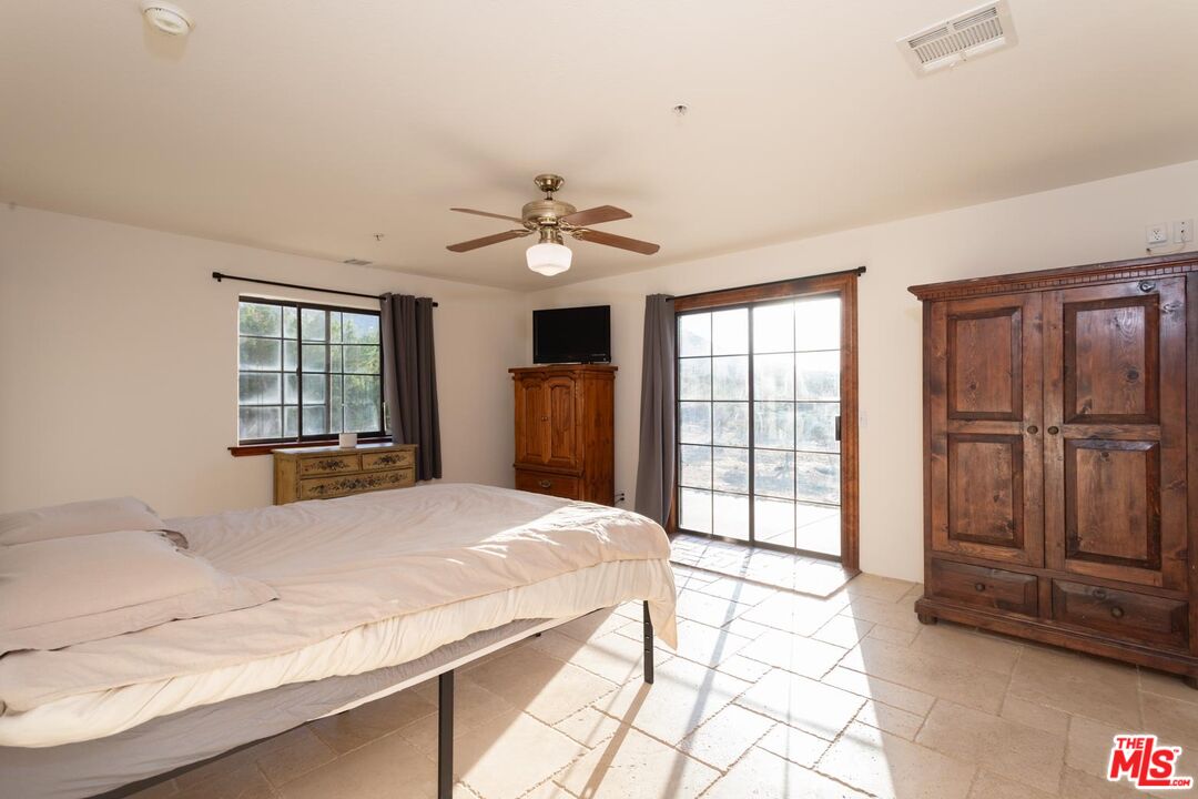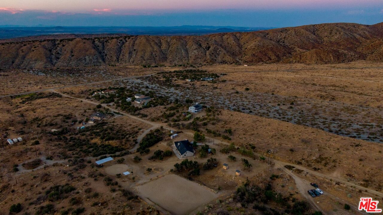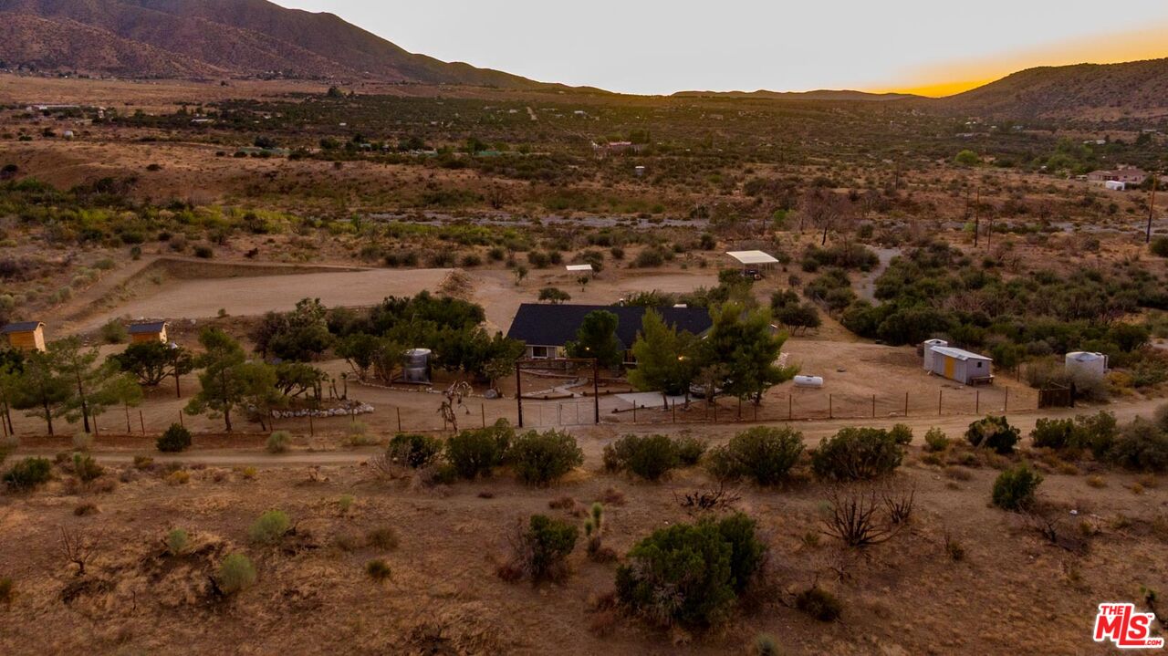 Nestled amidst the captivating High Desert Hills, just adjacent to the Angeles National Forest and a renowned national park, lies this approximately 2.5-acre equestrian property at 29243 Piani Road in Pearblossom. This modern ranch home offers over 2,000 square feet of living space, designed to capture breathtaking sunsets from the elevated position of the back of the house that faces west, showcasing a serene retreat in a stunning setting. The home encompasses three bedrooms, a versatile office/flex room, and two bathrooms, each with double sinks and bathtubs. Designed for comfort and practicality, it features vaulted ceilings and an array of custom finishes, including brick and wood floors in the kitchen and dining room, complemented by Turkish Travertine in the Venetian Pattern in other living areas. Large windows fill the space with natural light and showcase the picturesque views. A separate outside entrance to the primary bedroom and the dining room, as well as a utility room entrance, underscores the thoughtful design of this home. The 2-car attached garage provides ample storage space, with additional storage available in the attic and a large utility room pantry. Say goodbye to high electricity and water bills, as this home is powered by a high-quality paid-off solar system with 26 panels installed by Solar Optimum in 2022, and water sourced from its own well and propane for gas. In addition to central heating, this home is equipped with a whole-house evaporative cooler, a highly energy-efficient alternative to traditional air conditioning. The dining room also features a wood-burning stove for cozy winter evenings. The private, fully fenced lot, with its 330-foot frontage on Piani Road, is complemented by a grand wooden ranch gate, creating an impressive entrance to this serene retreat. With RV hookups and ample outdoor storage, this property accommodates a variety of needs, whether for ranch living or leisure. Equestrian facilities abound, with a 120' x 80' arena, a 50' round-pen, and a spacious hay barn capable of accommodating a full semi-truck load. The property supports multiple horse stalls with water and electricity, ensuring your equine companions enjoy optimal care. There is also a Nelson Automatic waterer in the pasture area. Beyond its equestrian amenities, the property is steeped in nature, providing direct access to miles of trails and seasonal creeks. It is conveniently located approximately five miles from local amenities, including the USPS, LA County Fire Department, and Pearblossom Park. Embrace the opportunity to own this equestrian property, where natural beauty, modern comforts, and horse-friendly facilities converge. Whether you are an avid equestrian or seeking a tranquil retreat, this home offers a unique chance to live in a truly stunning setting.