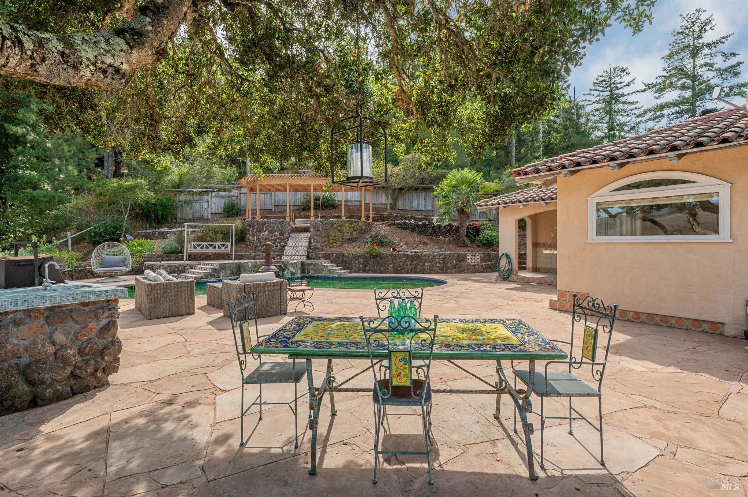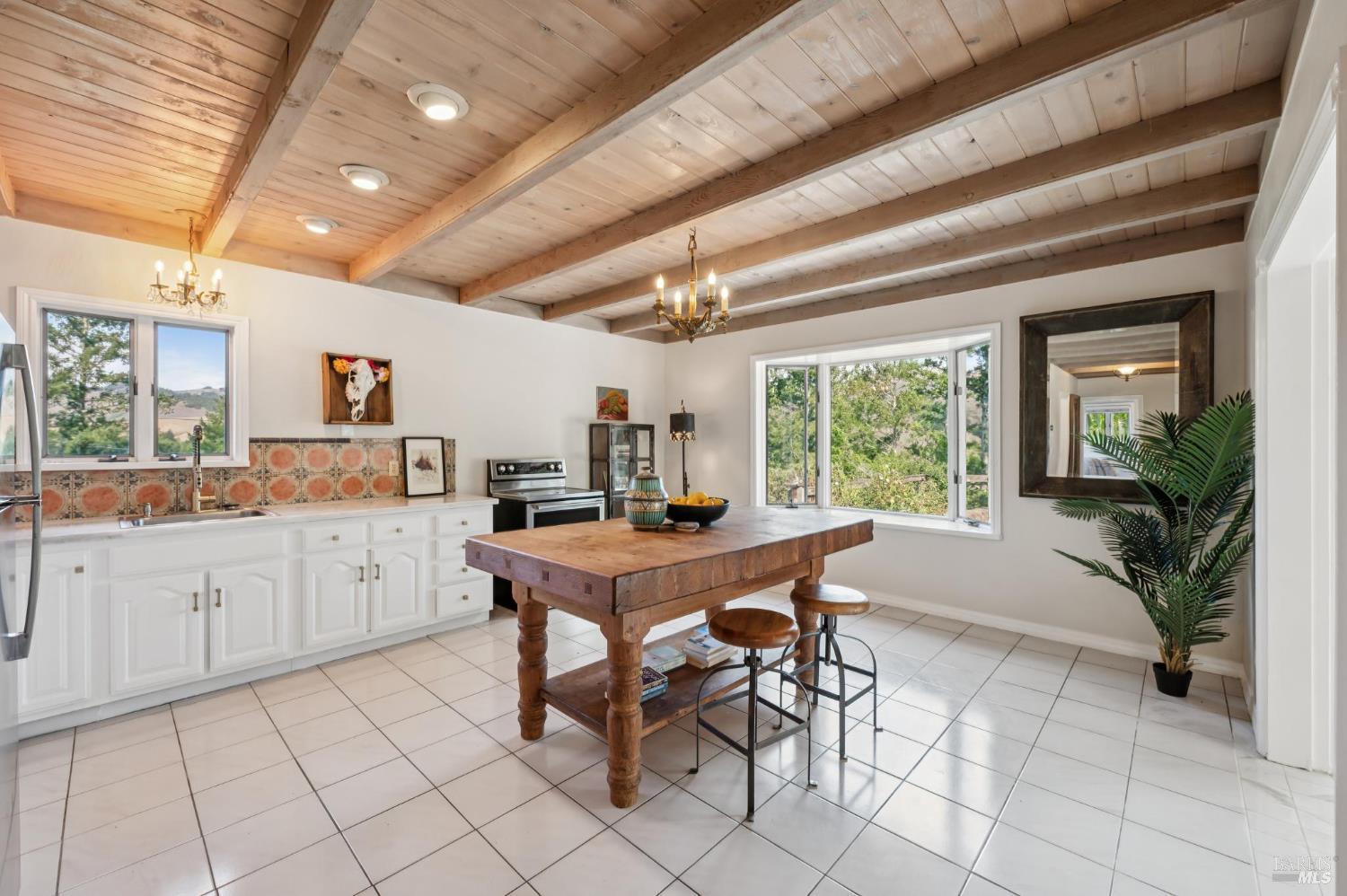 Verdugo Mountains Backdrop on this stunning Oakmont Country Club neighborhood. Every part of this single story ranch has been worked on, from the brand new roof to the gorgeous White Oak eng. wood flooring. The beauty of this home has been restored to a neighborhood gem. Beautiful hardscape leads you to a covered front porch with bay and oversized picture windows. Set up high on the street, once inside, the open concept floorplan is the perfect picture of continuity and class. The living room is situated off the entry, perfectly set to enjoy the windows that overlook the neighborhood. The kitchen is an entertainment and cooking dream, with brand new cabinets, gorgeous hardware and 36" gas stove with hood, making these appliances not just functional but truly artistic. Eat in dining area and overhung countertops, make entertaining easy. Separate laundry room with built in cabinetry and direct access from the driveway make this floorplan easy to navigate whether you are a working professional, stay home parents, retired or just starting out. Down the hall is a full bathroom, completely remodeled with a large bedroom across the way. Two more LARGE bedrooms, each with their own bathroom, make multi family even a possibility. The quality of materials and style choices are on trend and gorgeous, down to every detail. With almost 1600 square feet and nearly 10,000 square foot lot, you will never feel like you are running out of space. Plenty of storage and separate entertaining areas. Long driveway, for hosting, or multiple vehicles. Detached 2-car garage at the back of the property, making privacy a priority. As you walk along the backyard, a separate area behind the garage is a nice surprise. This area is a blank slate, ready for your ideas. Outdoor kitchen, entertainment area, BBQ, spa, kids hang out, covered patio, this space is limited only by your imagination. Just in time for beautiful summer nights and outdoor entertaining, this home will truly NOT disappoint. The yard is perfect for twinkle lights under the Oak tree, maybe a hammock or meditation garden. The wooded backyard is not only inviting but private and serene, what a lovely place to come home to.
