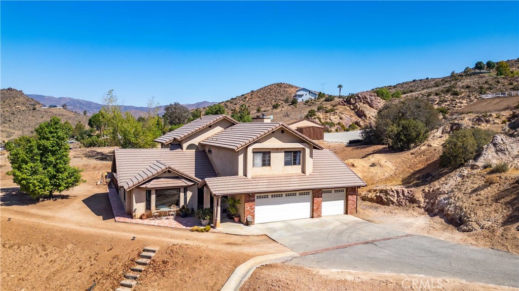 Charming two-story home located at the end of a cul-de-sac in the desirable Country Way Estates neighborhood in the small town of Acton! Panoramic views take your breath away as you embark upon this 4 Bed, 3 Bath, 2,476 sqft home on 2.14 Acres. Great layout with all the right spaces: entertain in the formal Dining and Living rooms; relax in the cozy Family Room with fireplace; or host gatherings in the well-appointed Kitchen. The kitchen is spacious, with classic tile counters, oak cabinets, a sweet garden window, and abundant storage, including a walk-in pantry. It is adjacent to the breakfast nook, which flows seamlessly into the Family Room. There is access to the back patio from both the dining and family rooms, extending entertaining space. All 4 bedrooms are on the second floor, including the Primary Bedroom, which is a retreat, with its own private balcony and attached bathroom with separate shower, soaking tub, dual sinks, plus a walk-in closet. Three more bedrooms and a full bathroom will accommodate a large family or guests. An indoor laundry room is a welcome convenience providing extra storage and has direct access to the 3-Car garage. The property has the perfect blend of space with with a cross-fenced backyard and enough room for RV parking or animals. Easy country living on paved roads with county water, natural gas and close access to schools, the park, shopping and the freeway.
