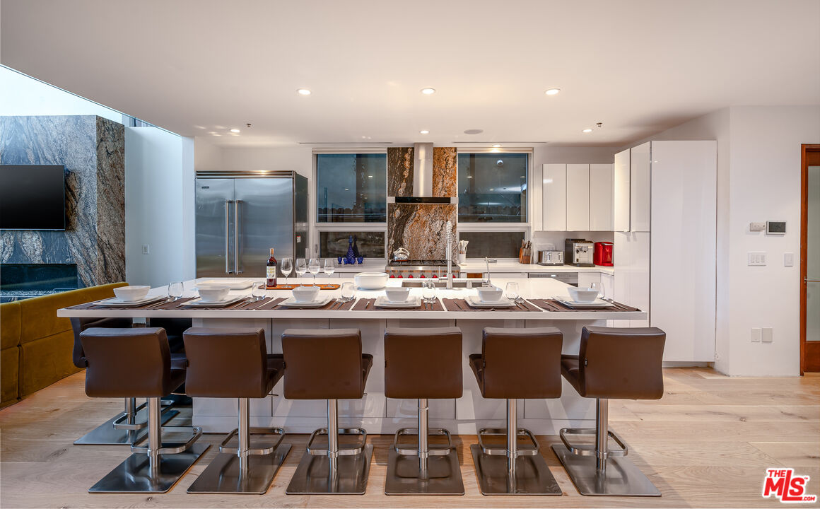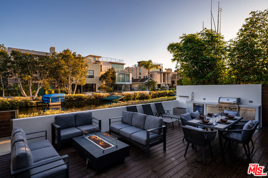 Welcome to this very special contemporary canal home. You enter this three story architectural property directly from the canal, into a thoughtfully designed outdoor oasis featuring ample room for lounging, dining, and entertaining. A tranquil water fountain sets the the tone besides the outdoor kitchen fully equipped with a built in bbq, refrigerator, and storage, all under the cover of a retractable canopy, perfect for shade and staying cool on those hot summer days. Built in 2012, this canal front architectural residence has been recently remodeled, with updated features that defines today's modern, luxury home. Step inside the main living area, you are welcomed with soaring two-story ceilings, a dramatic fireplace and a statement chandelier that anchors the conversational seating area. The home chefs delight of a kitchen is centered around a large island perfect for entertaining or casual diners at home. Top of the line stainless steel appliances including a Viking refrigerator, Wolf range, & wine fridge, perfect for preparing memorable meals. The ground floor has a second entry area styled as a speak easy, which leads to an enclosed office that overlooks mature landscaping, making for a quiet peaceful environment to complete homework and business alike. Ascend the elegant glass and wood stair case to the more intimate living/tv area that over looks the main living room below, with canal views framed by double height windows. Also on this floor are two bedrooms, each with their own bathroom. The 2nd bedroom can function as a Junior suite - spacious, with its own balcony and luxurious bathroom with shower and tub. The third level is dedicated to the primary suite, which includes a private balcony, walk in closet, and a fire place that extends into the spa like bathroom. Here you will find a gorgeous free standing soaking tub, a generous sized shower and a cozy place by the fire for the ultimate in relaxation. Alongside the bedroom area is a versatile flex space