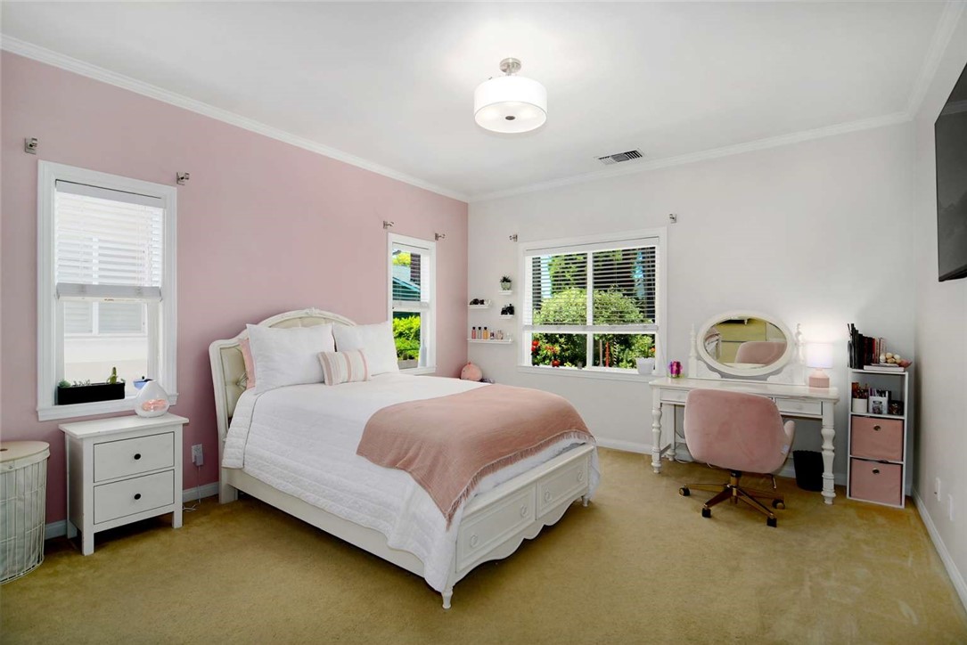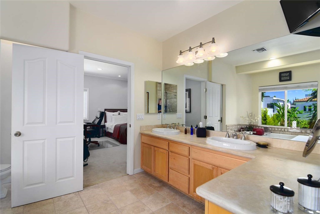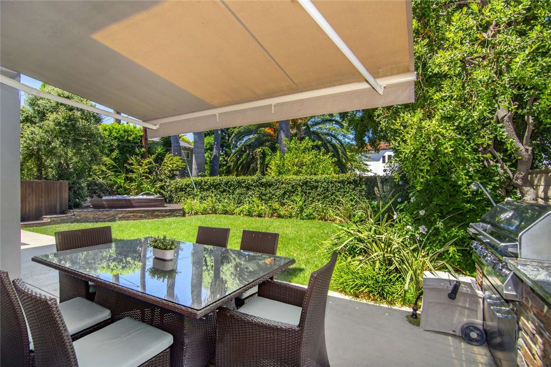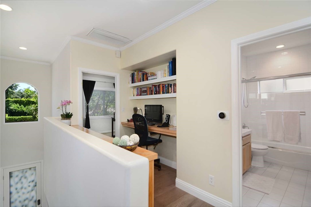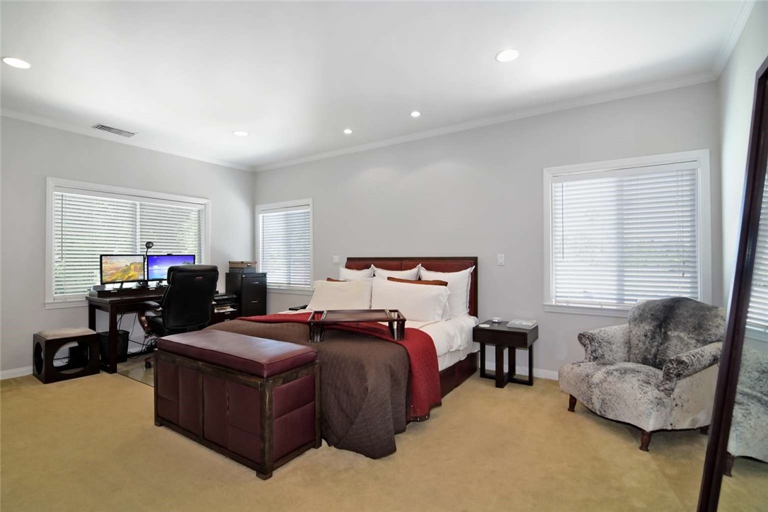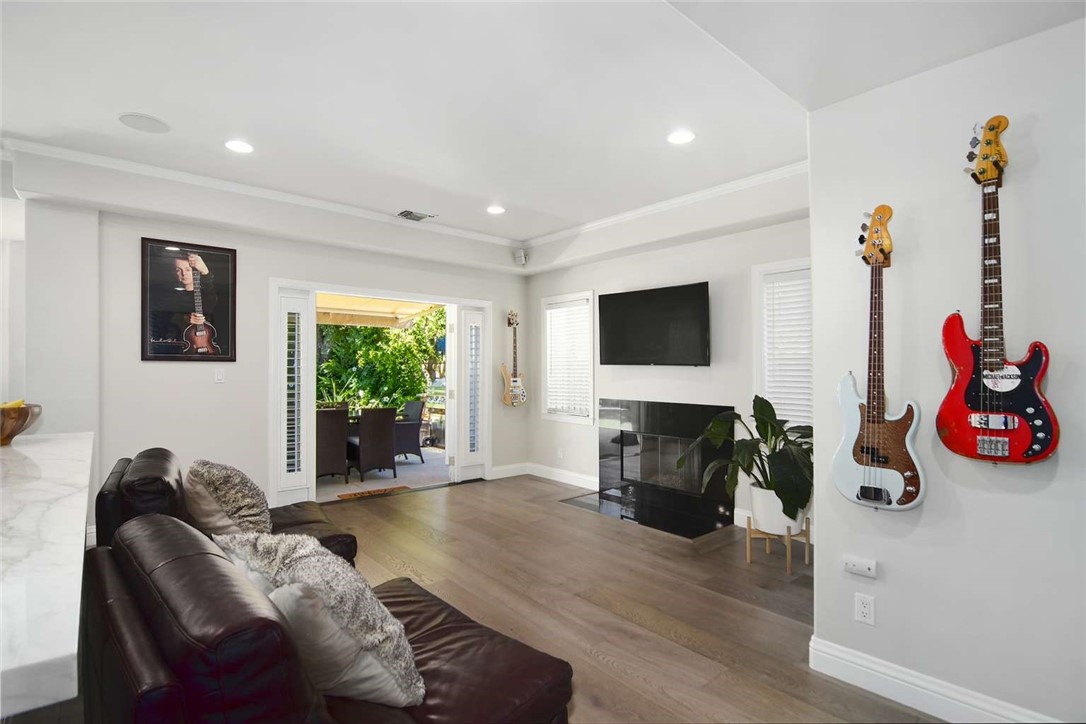 This stunning two-story gated home combines style, functionality and security, with stacked stone accents and meticulously manicured landscaping. Located in the Encino flats area where newly constructed homes are selling at $3.5mil and more, this home offers comfortable convenient luxury living, while enjoying continued appreciation. Minutes to the Westside, and blocks from Ventura Boulevard, offering endless dining, shopping, medical and business services. Inside this home, French oak floors grace the entire first level, with a spacious living room with gas fireplace, formal dining room with a coffered ceiling, built-in cabinetry, a dry bar with wine fridge, and crystal chandelier. Two sets of dual French doors make indoor-outdoor entertaining flow. Fully remodeled chef’s kitchen includes custom cabinetry, Carrara marble seamless countertops, Sub-Zero glass-front fridge, Wolf six-burner range with pot filler, double ovens, built-in microwave, walk-in pantry, and a breakfast nook, all open to the adjacent den with second fireplace and French doors to the outdoor BBQ with covered dining area. Upstairs are four spacious bedrooms, three full baths, and laundry. The luxurious primary suite boasts dual custom walk-in closets, a generous travertine full bath with large jetted tub, separate shower, and dual vanities. The beautifully landscaped backyard features two patios with retractable awnings, a lush grassy area, a built-in hot tub, a custom BBQ station, and charming string lighting—perfect for outdoor entertaining. Additional highlights include a finished garage with an epoxy floor and built-in cabinetry. This smart home is also equipped with Ring security cameras; a water-saving automated irrigation system; a tankless water heater for endless hot water, dual-zone HVAC with energy-efficient Nest thermostats; mobile-app controlled outdoor lighting, garage door and front door; and a premium Bose surround sound system.