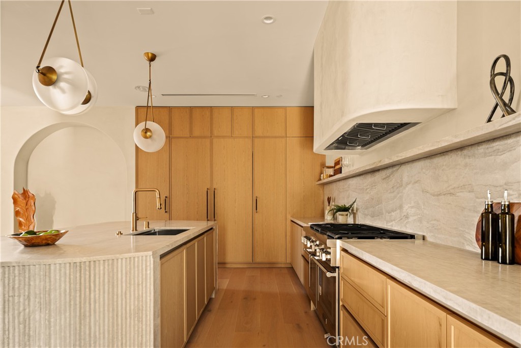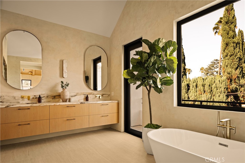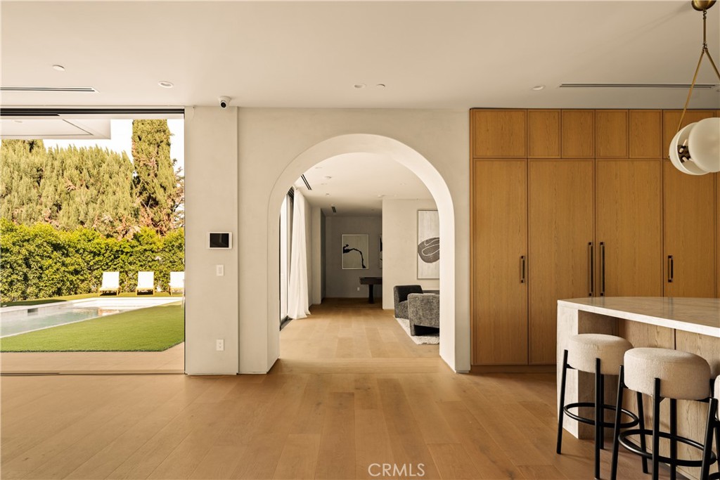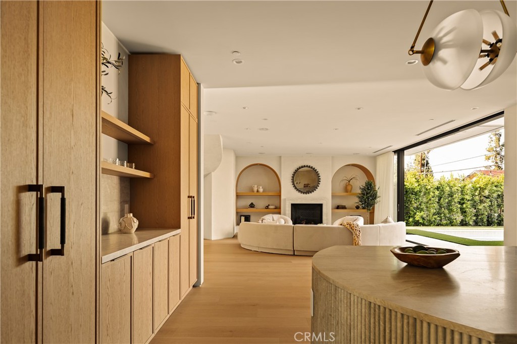 Introducing The Enfield, a newly built Scandinavian-inspired estate tucked within one of Encino’s most sought-after neighborhoods. This modern showpiece spans approximately 5,200 sq ft and features 5 bedrooms, 5.5 baths, plus a private 1-bedroom ADU with its own entrance. The interiors impress at every turn: soaring ceilings, a dramatic spiral staircase, and wide-plank French oak flooring set the stage. At the heart of the home lies a chef’s kitchen appointed with an oval Quartzite island, Quartzite countertops, Thermador appliances, and custom cabinetry that flows seamlessly into the backyard. The living room is anchored by a marble fireplace, while a private office provides an ideal workspace or additional bedroom. Upstairs, the primary suite offers dual walk-in closets, a stone fireplace, a spa-inspired bath, and a 300-square-foot balcony overlooking the grounds. Perfect for grand entertaining or intimate gatherings, the backyard is a true retreat with a smart-controlled pool and spa, built-in BBQ, and manicured landscaping. Additional amenities include solar panels, whole-home surround sound, EV charging stations, and a fully integrated security system. Now available for lease and also offered for sale, The Enfield is ideally suited for discerning families, entertainers, or influencers seeking modern luxury in a prime location between Hollywood and Beverly Hills. Ideally positioned near places of worship, the esteemed Crespi Carmelite School, and Encino’s finest family-oriented amenities, this residence offers both convenience and prestige. An expansive and elegant retreat, it presents a rare opportunity to experience the best of Encino living.