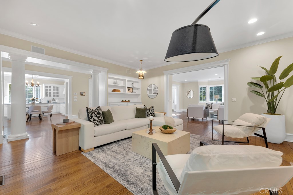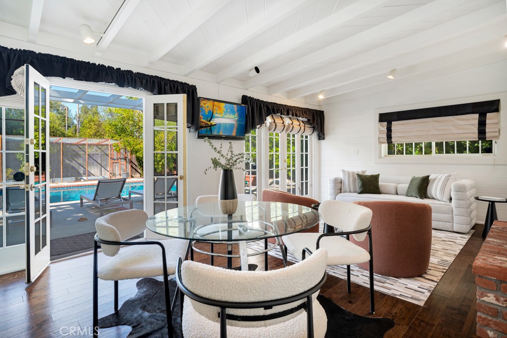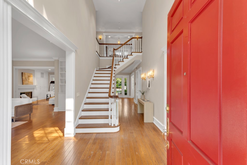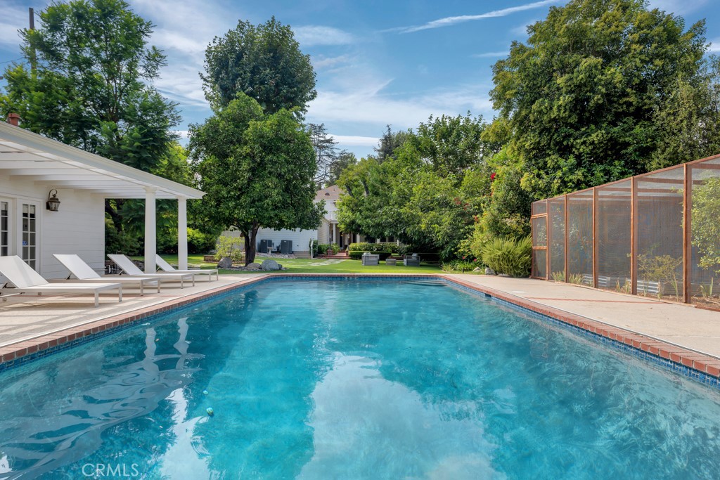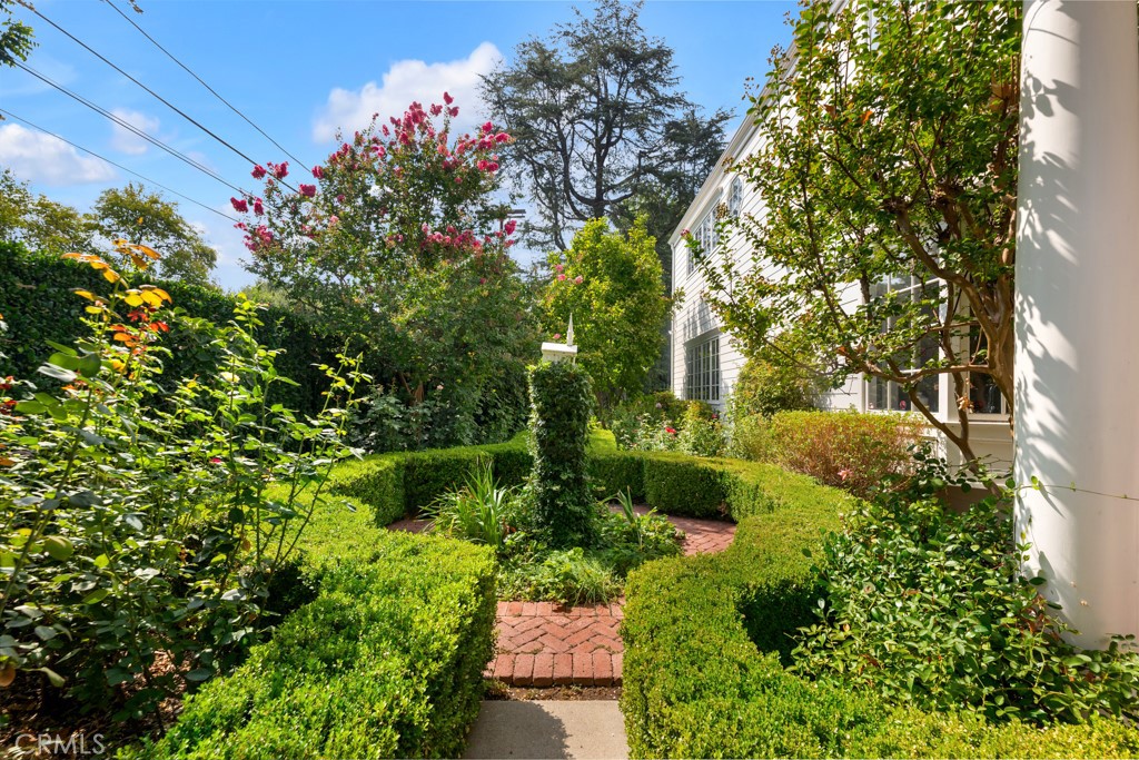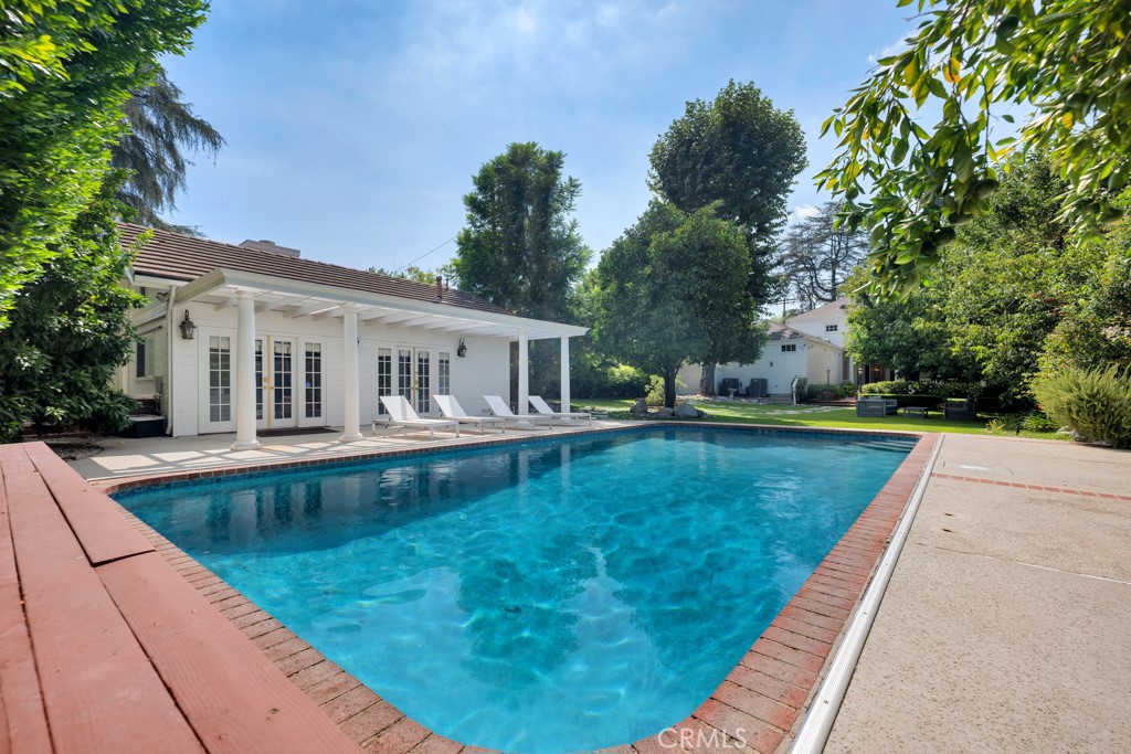 Tucked behind private gates in one of the most coveted South of the Boulevard neighborhoods, this stately Georgian estate sits on a rare, flat 18,546 sq. ft. lot surrounded by lush greenery and mature trees. Built in 1997 with timeless design and soaring 10-foot ceilings, this home offers both sophistication and warmth, blending classic elegance with everyday comfort. From the moment you enter the grand foyer, you’re welcomed into a home designed for entertaining and gathering. The formal living and dining rooms set the stage for memorable celebrations, while the spacious family room with its French doors leading to the gorgeous covered patio invite more casual moments. Overlooking a blooming rose garden, the kitchen features a center island, walk-through butler’s pantry, and abundant storage—making it the heart of the home. Upstairs, the primary suite is a private retreat, complete with French doors that open to an expansive balcony with sweeping views of the lush grounds. The spa-like bathroom offers a soaking tub, dual vanities, and a separate shower, while double walk-in closets provide ample space. A handsome library with built-ins and balcony access creates the perfect escape, and two additional en-suite bedrooms ensure comfort for all. The outdoors feel like a private sanctuary. A sparkling pool with automatic cover is ideal for long summer days, while the expansive grounds include an enclosed vegetable garden with raised beds and an orchard of fruit trees—apple, avocado, pomegranate, citrus, and walnut to name a few—bringing both beauty and bounty. A charming 400 sq. ft. GUEST HOUSE with its own kitchen, bath, and French doors offers the perfect space for visitors, home office or creative pursuits. Minutes from Ventura Blvd. with shops and entertainment, El Caballero and Braemar Country clubs and easy access to 101 freeway. With its rare combination of space, privacy, and timeless style, this estate is more than a home—it’s a lifestyle.