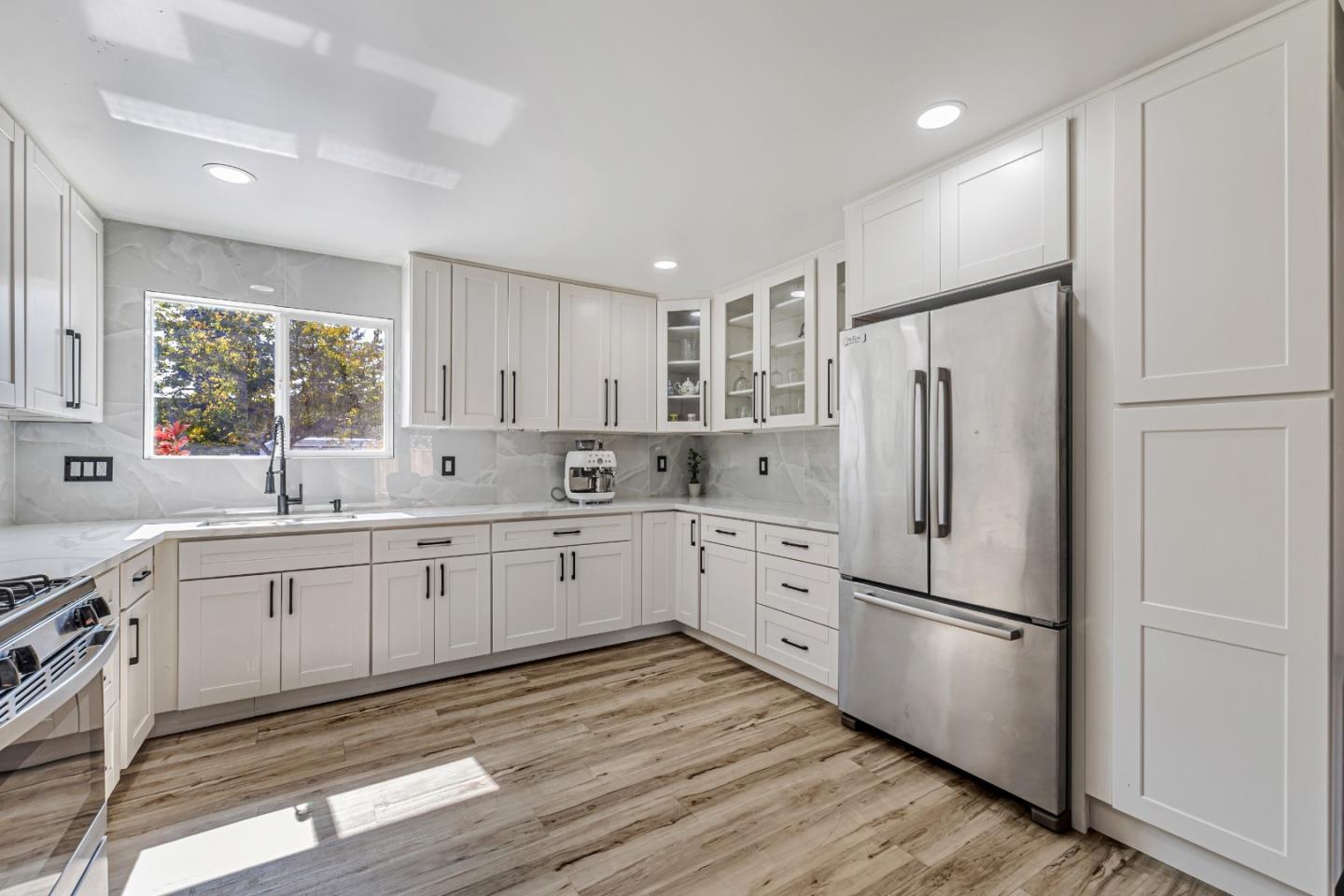 Welcome to 7580 McGroarty Terrace—a peaceful hideaway in the foothills, perfectly positioned near the McGroarty Art Center and moments away from McGroarty Park. This beautifully remodeled 3-bedroom, 2-bath home, updated in 2020, blends modern living with scenic surroundings. Inside, you'll find light-filled spaces and elegant porcelain flooring with a wood-style finish. The open-concept kitchen is designed for both ease and elegance, featuring quartz countertops, stainless steel appliances, a generous island, and a double sink with disposal—all crafted for everyday convenience and entertaining. Step through French doors onto a private deck where wrought iron railings frame panoramic views of the park and surrounding mountains. It's the perfect setting to relax, recharge, or entertain. Additional features include an attached garage with washer/dryer hookups, dual EV charging stations, a full security alarm system, and two storage sheds. With its upgraded interior, charming outdoor space, and stunning natural views, this home offers a unique combination of comfort, style, and tranquility.
