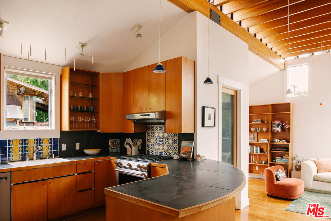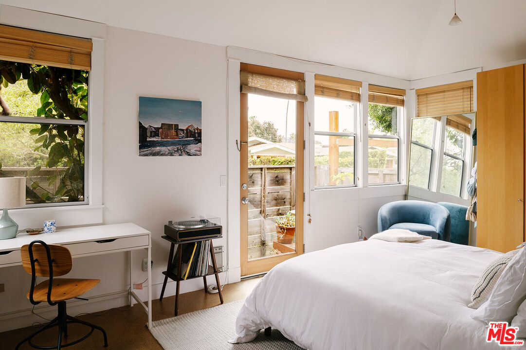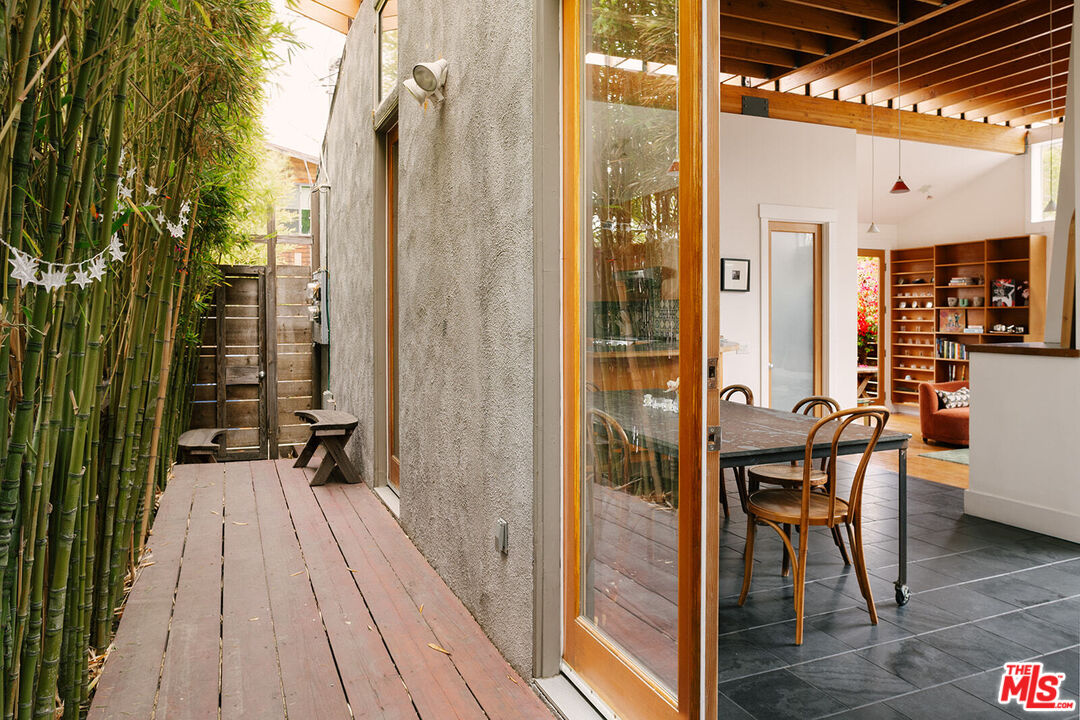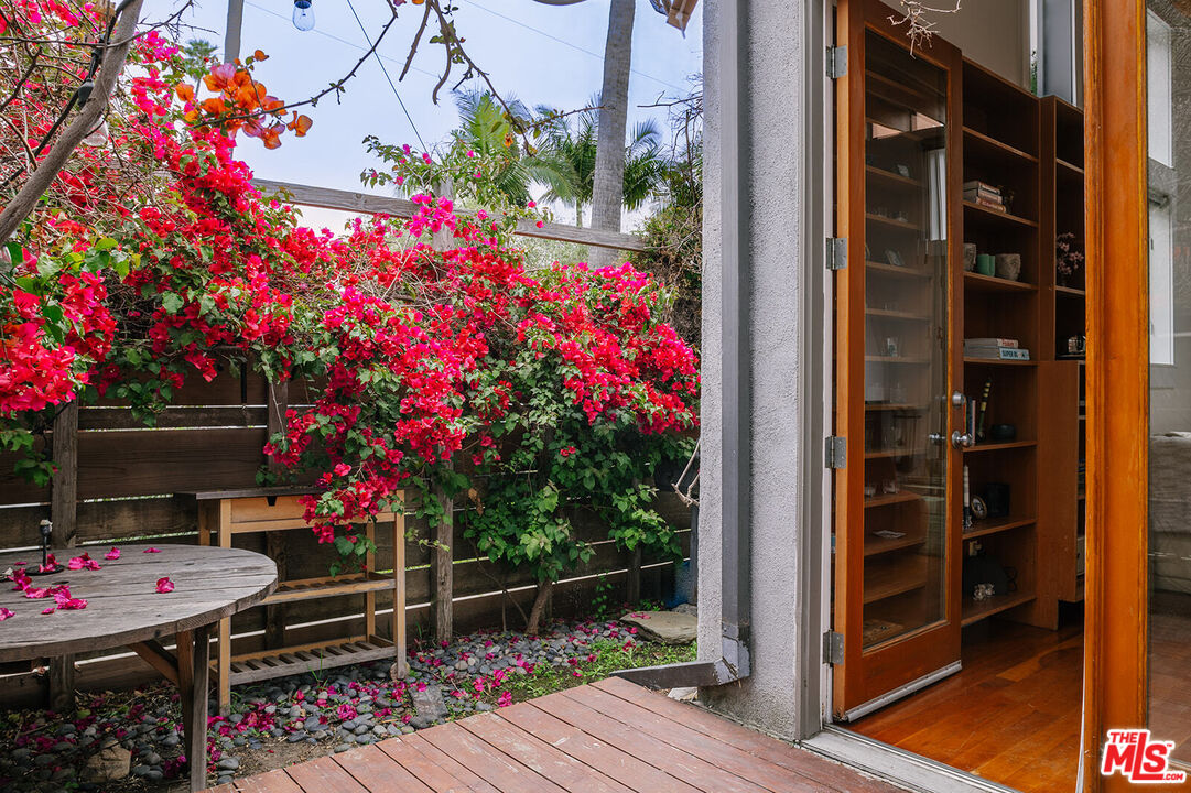 Tucked away on a quiet Venice corner lot, two distinct homes stand side by side, each with its own character, charm, and each completely private. The first is a 1,309 SF 2 BR + 2 BA home that perfectly captures the effortless cool of Venice, where architectural design and coastal charm converge. As soon as you step inside, the soaring vaulted ceilings with clerestory windows invite the sky in, and subtly infuse the space with natural light. The airy ambiance is matched by warm materials throughout: light oak as well as cork flooring, whitewashed walls, and slate tiled countertops. The open floor plan effortlessly connects the living room, cozy reading or TV nook, dining area, and kitchen anchored by a beautifully curved counter creating a seamless flow ideal for both quiet evenings and effortless entertaining. 8 foot glass doors lead you to outdoor decks and patio areas, blurring the lines between indoor and outdoor living. Each of the two spacious bedrooms is its own retreat: the ensuite offers access to a private outdoor area, while the second opens out to its own deck. Every space in the home feels both expansive and intimate, and its overall thoughtful design emphasizes the connection to both the outdoors and Venice's laid-back, artistic style. The second home, a 432-square-foot Traditional, exudes warmth as soon as you walk through the gate into a charming enclosed front yard. Inside, a cozy yet open living and dining area flows into the kitchen, and the single bedroom, basking in soft light, offers comfort and calm. Both homes are currently tenant occupied with market rents of $6,800 and $3,500 respectively making this not only a unique living opportunity, but a smart investment as well. Two homes, one lot, endless possibilities: live in one, rent the other; share with family; or enjoy as a peaceful, income-producing Venice mini-compound.
