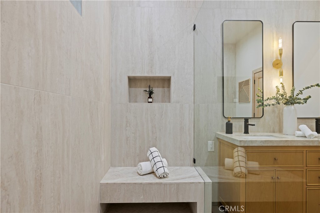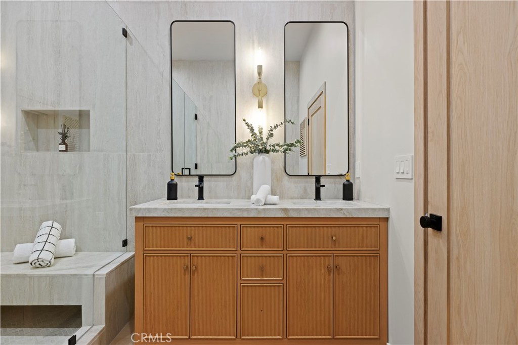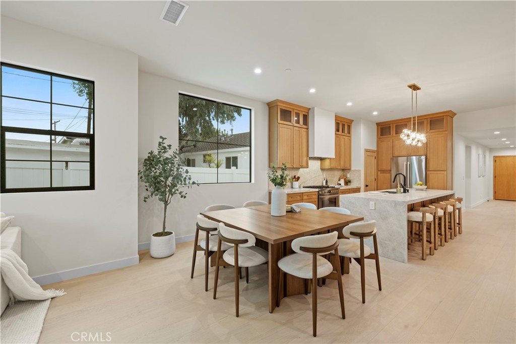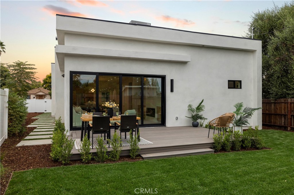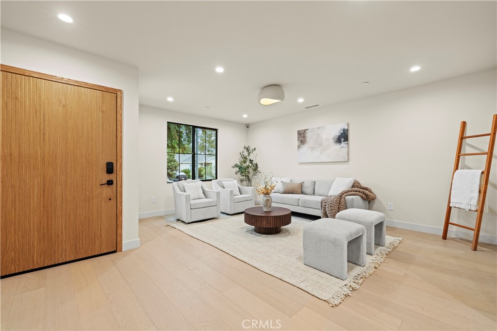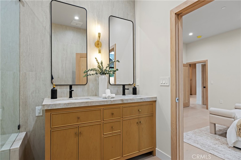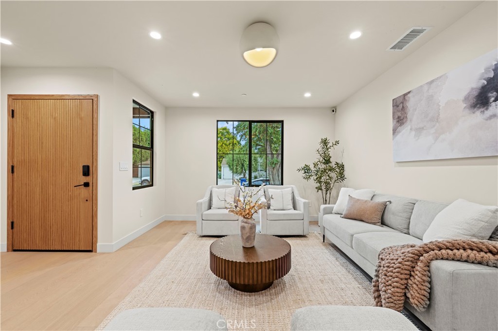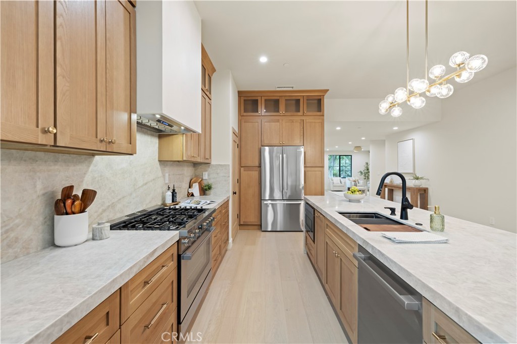 Welcome to this stunning custom-built home in Encino, perfectly situated on a generous lot! This organic modern 4-bedroom, 3.5-bath residence offers nearly 2,500 sq ft of beautifully designed living space with an open-concept indoor/outdoor layout—perfect for entertaining. From the moment you arrive, the wide frontage impresses with its expansive driveway and striking front entrance. Step inside and you’ll be greeted by a bright, airy floor plan that immediately sets the tone for sophisticated living. The formal living room at the front of the home is ideal for elegant gatherings, while the expansive great room offers the ultimate space for hosting luxurious indoor/outdoor events. The kitchen is a true showpiece, featuring floor-to-ceiling wood cabinetry, exquisite Taj Mahal quartzite countertops, and a full walk-in pantry. Adjacent to the kitchen, the sun-drenched dining area seamlessly connects to an oversized family room, where built-ins, custom shelving, and a cozy fireplace create the perfect evening retreat. Panoramic sliding doors open to a spacious deck and large backyard, creating effortless flow and extending your living space outdoors. The extra-large primary suite is a private sanctuary, complete with a walk-in closet and a luxurious spa-style bathroom featuring a double vanity and oversized shower. A secondary suite includes its own private bathroom, while two additional spacious bedrooms share a beautifully appointed bathroom at the front of the home. A separate laundry room and stylish powder room round out the interior amenities, offering total convenience and function. With thoughtful attention to detail and a well-planned layout, this home is designed to impress—featuring wood doors throughout, high ceilings, recessed and accent lighting inside and out, brand-new appliances, a finished garage, an oversized driveway, and lush landscaping. Plus, there’s plenty of space to add a sparkling pool - seller has a permit ready for you! This home truly has it all—style, space, and sophistication. Welcome home!