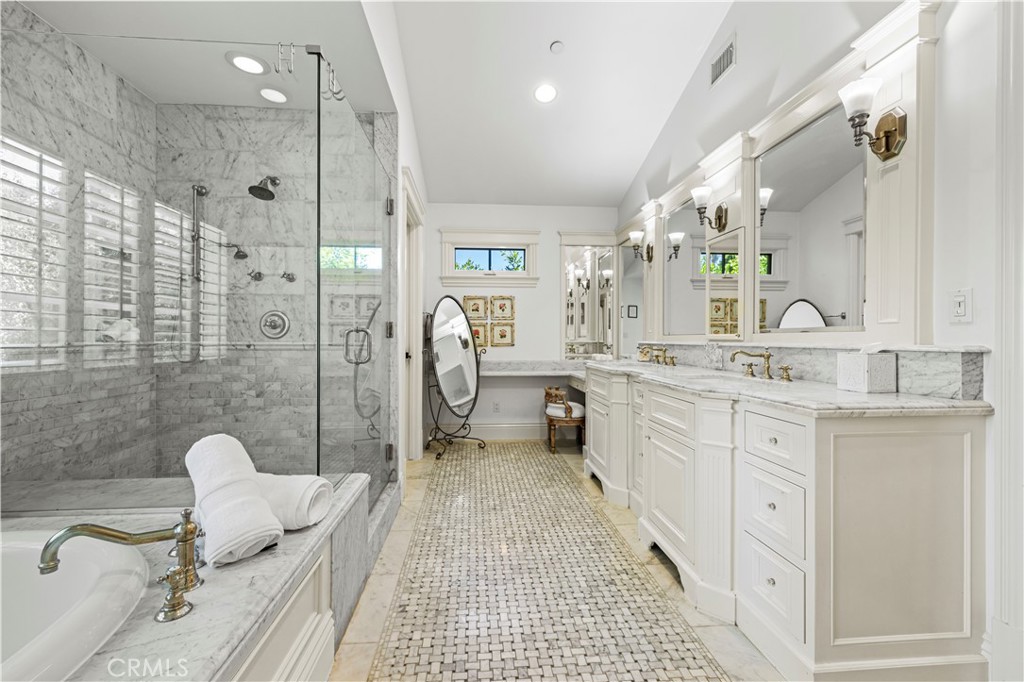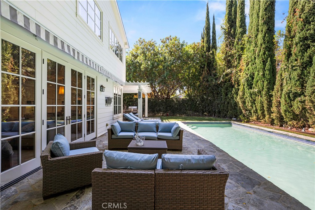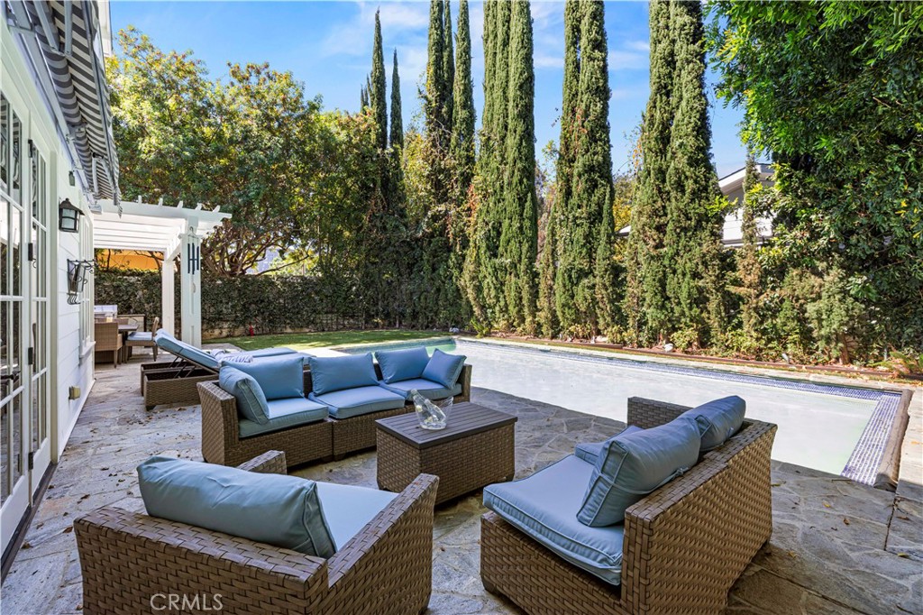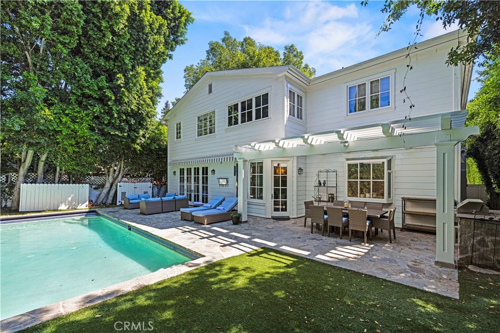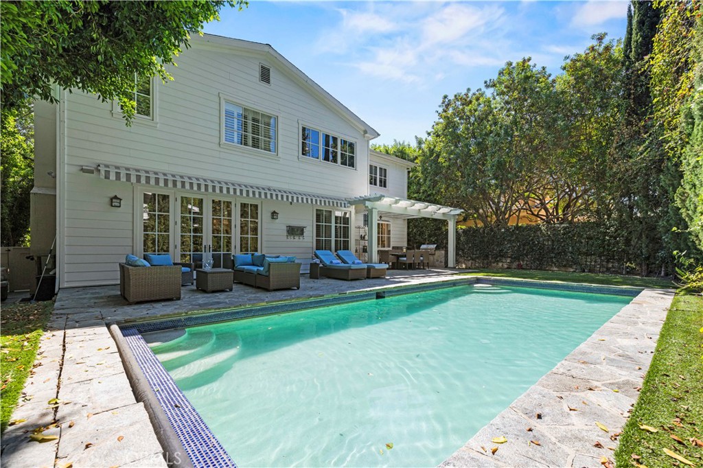 This Ken Unger–designed traditional residence blends timeless character with modern sophistication. Offering 5 bedrooms, 6 baths, and over 5,200 square feet of living space, the home showcases wide-plank wood floors, detailed moldings, and a dramatic central staircase. A grand formal living room with fireplace and an elegant dining room set the stage for entertaining, while the chef’s kitchen features a marble-topped island, custom cabinetry, butler’s pantry, and top-tier Viking and Sub-Zero appliances. The main level also includes a private office/library, convenient mudroom with laundry, and a guest suite with its own bath. Upstairs, four additional bedroom suites include a spacious primary retreat with a sitting area, home office, dressing space, luxurious walk-in closet, spa-inspired bath with oversized jetted tub, and a dual-head glass shower. Outdoors, the private yard invites year-round enjoyment with a built-in BBQ bar, covered patio, and custom saltwater pool, all framed by mature landscaping. Located on a peaceful, tree-lined street just steps from Ventura Boulevard and within the sought-after Hesby Oaks school district, this property offers both elegance and everyday comfort.