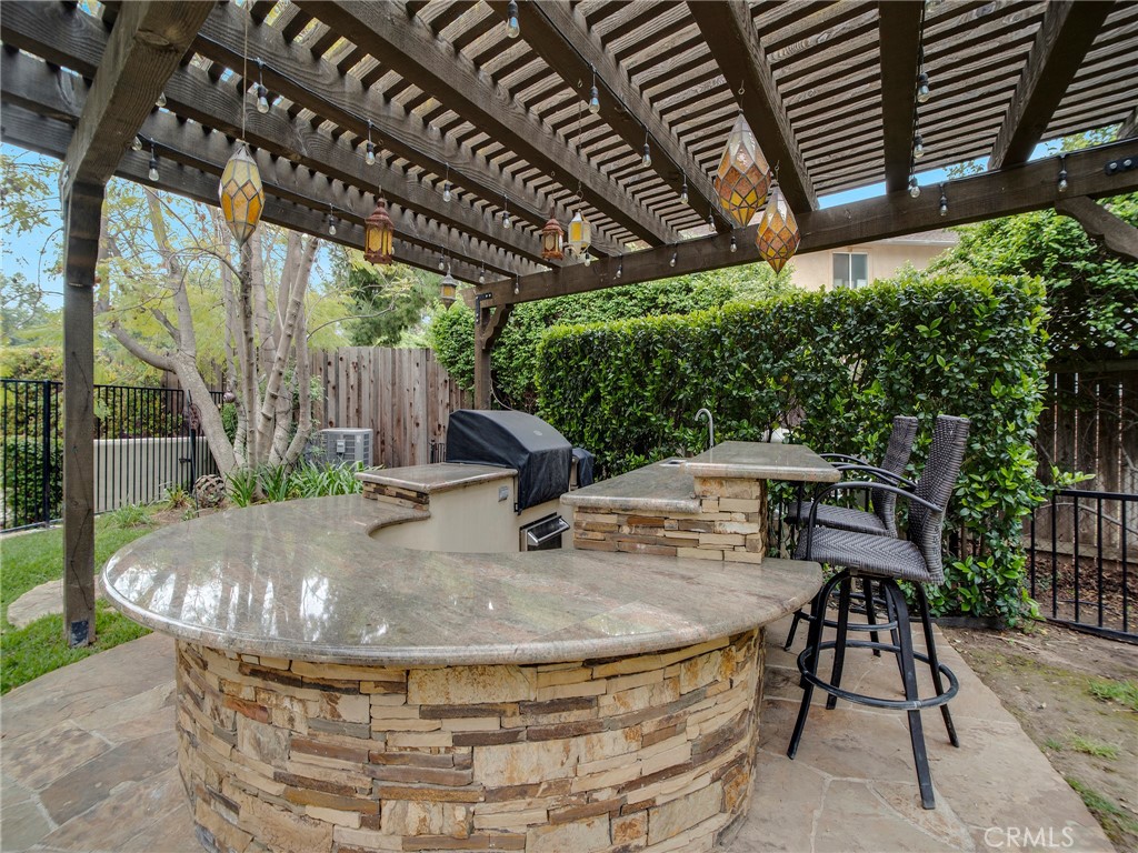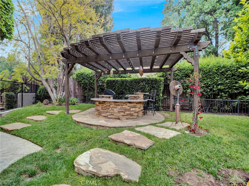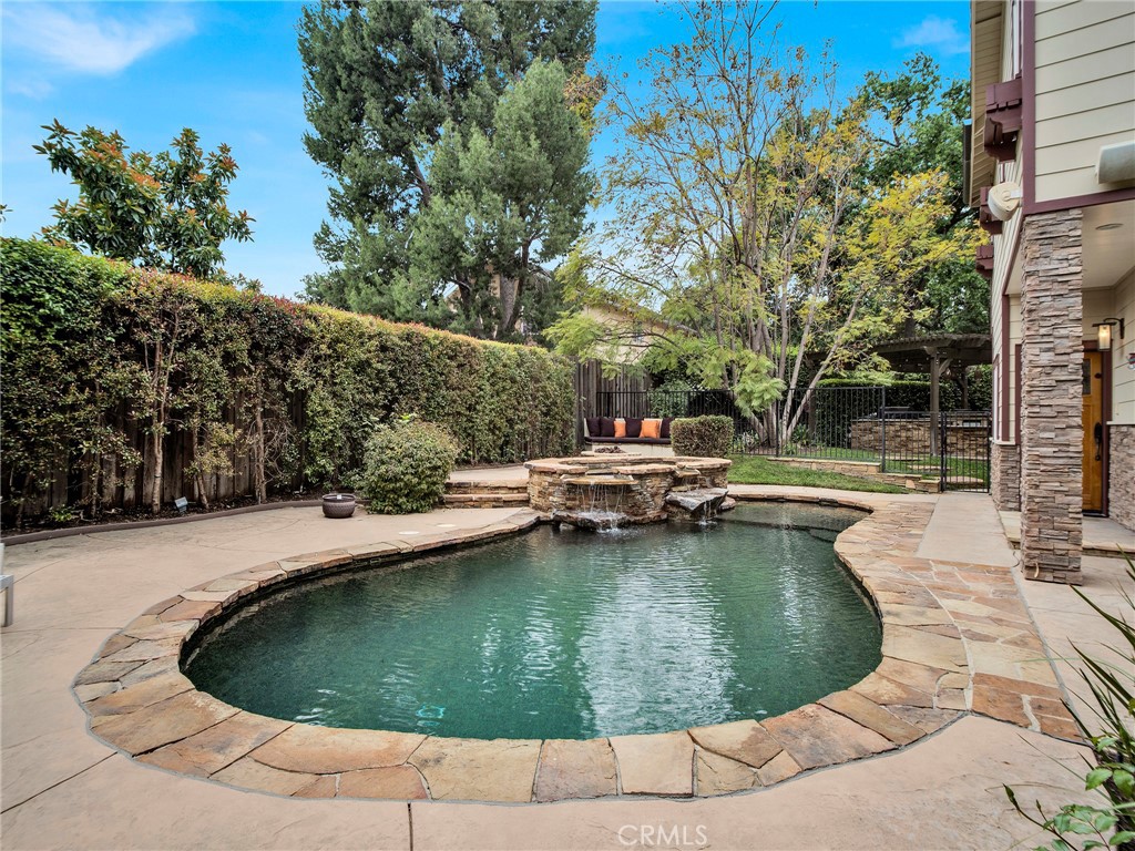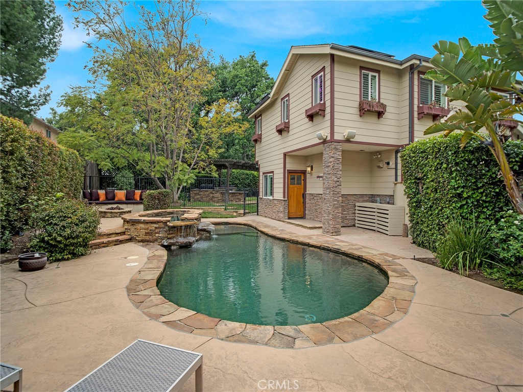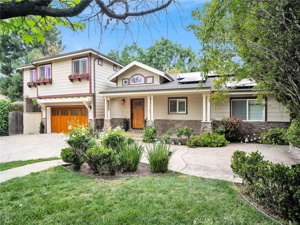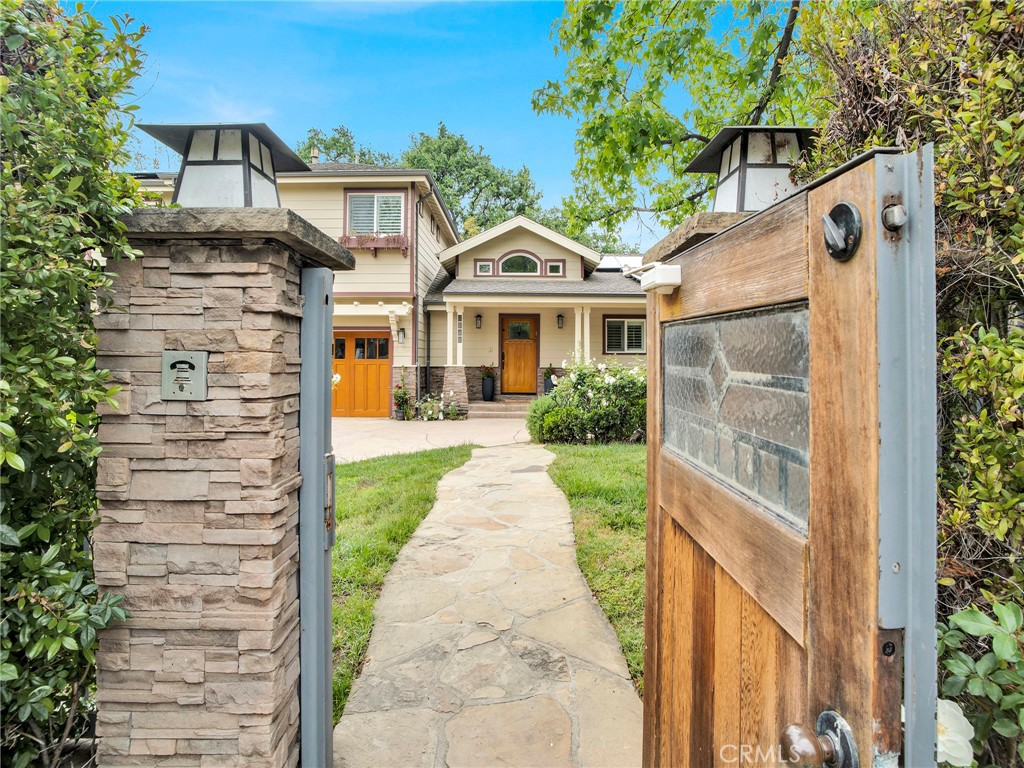 This gated craftsman style home is the epitome of California living in one of the best locations in Chatsworth. The property is immersed in lush greenery & features multiple outdoor spaces, abundant natural light & ample privacy. Stunning architectural design with top quality finishes. This 5-bedroom, 6-bathroom home, offers 5 en-suite bedrooms including large master on each floor. A well configured layout includes a seamless indoor-outdoor flow, spacious living area/great room with fireplace, chef's kitchen with Wolf appliances, Dining area & breakfast bar. There are 3 en-suite bedrooms downstairs & 2 en-suite bedrooms upstairs. Luxurious master suit offers spa like bath with soaking tub & shower, fireplace & walk-in closet. The ultra private backyard offers pebble tech pool, spa, firepit, outdoor kitchen with BBQ, cabana, grassy area, vegetable garden & multiple lounging area. Large work shed in backyard. Additional features: Central heat & air, copper plumbing, custom wood garage door, plantation shutters, privacy shades in all upstairs bedrooms, fresh paint, recessed lighting, tankless water heater, custom closet organizers, fully paid solar, security cameras, security alarm, amazing entertainers backyard & much more. Soak up the serenity in this peaceful retreat & enjoy all the walking trails Chatsworth has to offer.